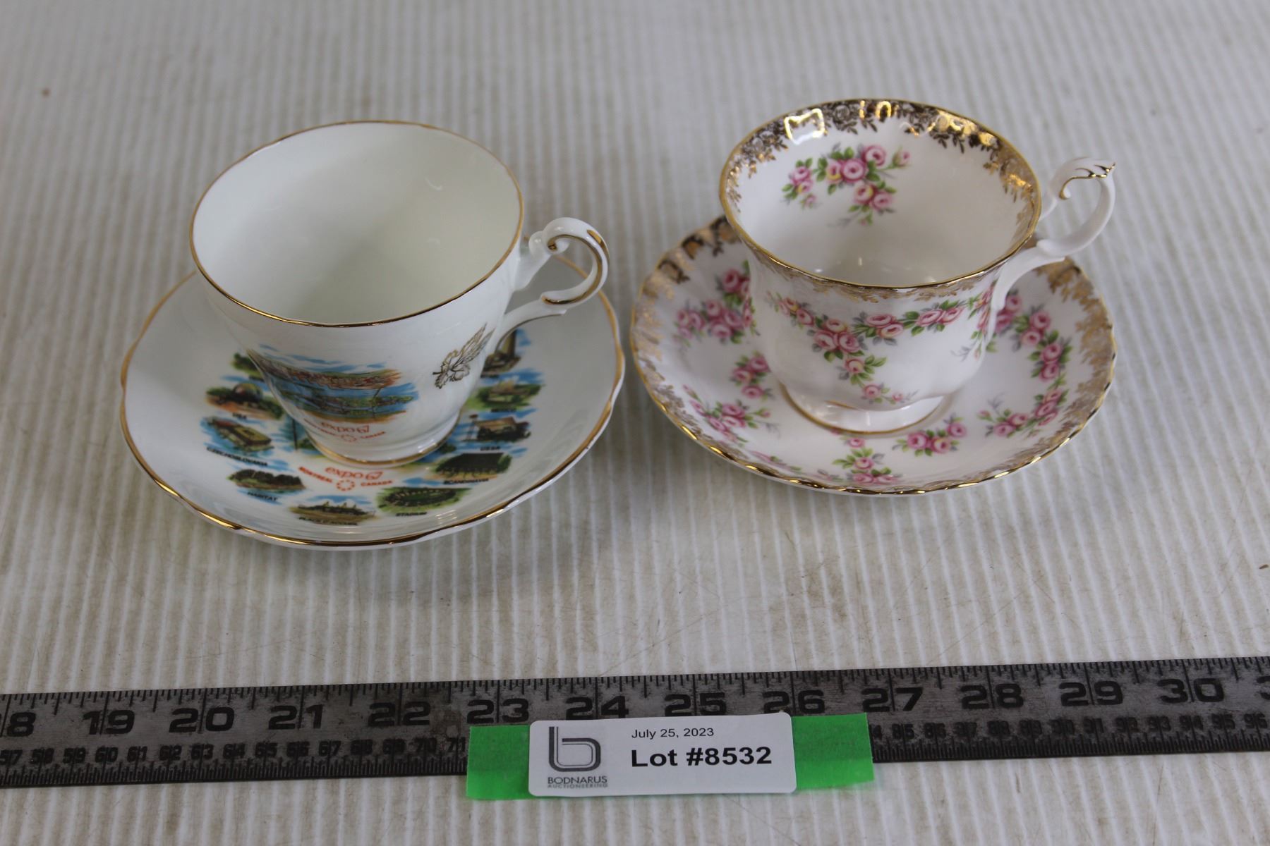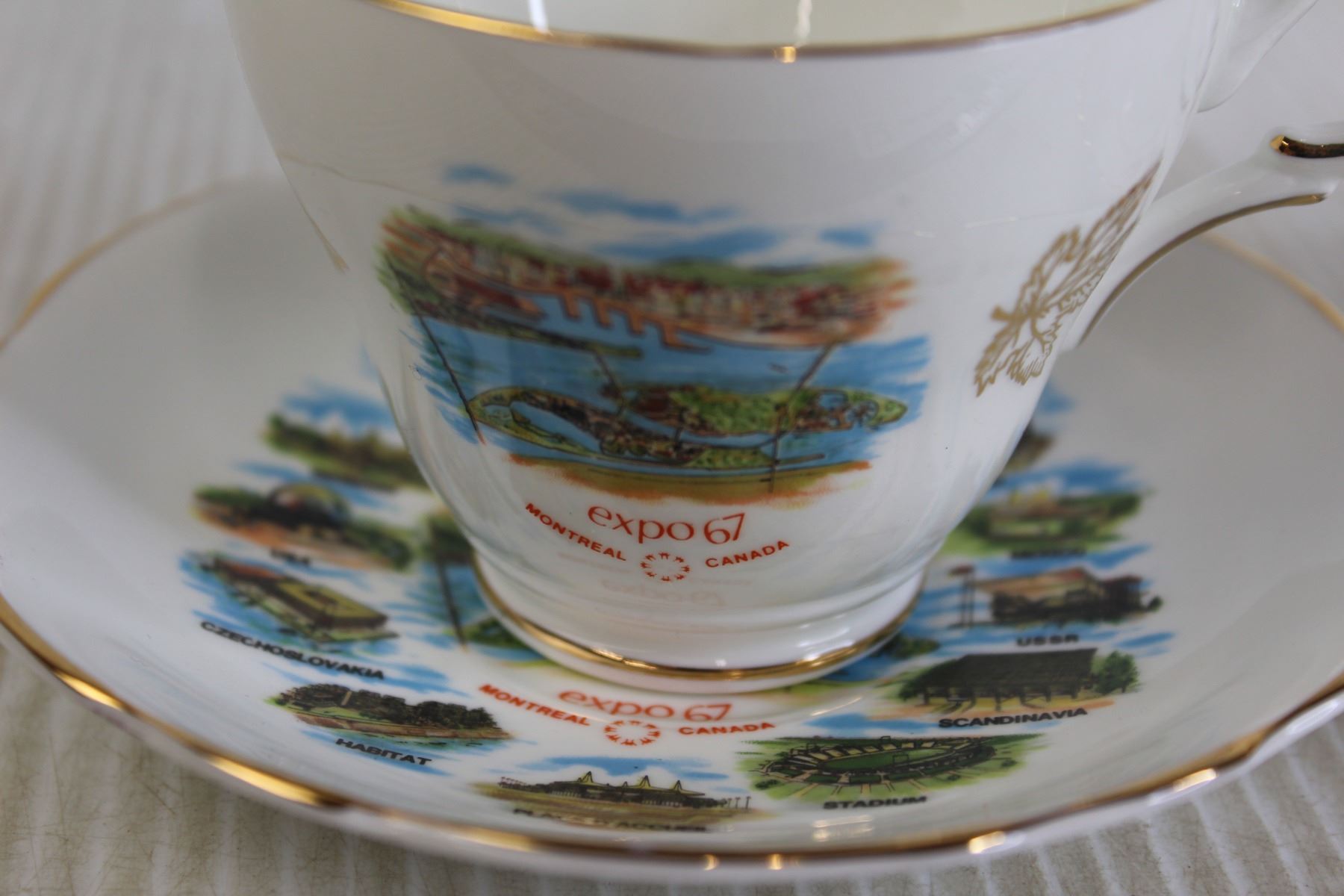 Royal Darwood Expo67 Montreal Canada Teacup and Saucer, Royal Albert Dainty Rose Teacup and Saucer