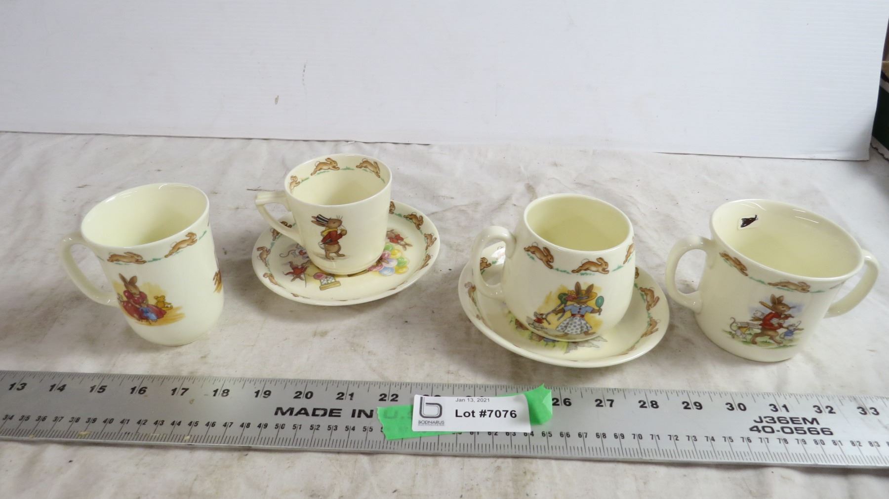 Royal Doulton Bunnykins cups + saucers (double handled cup)