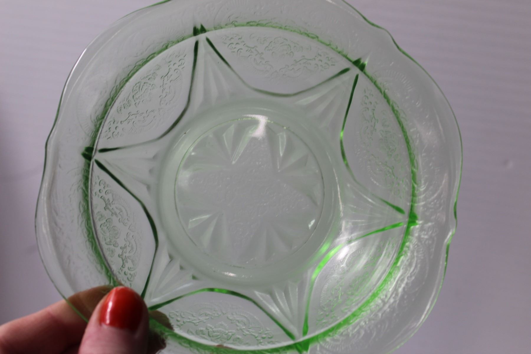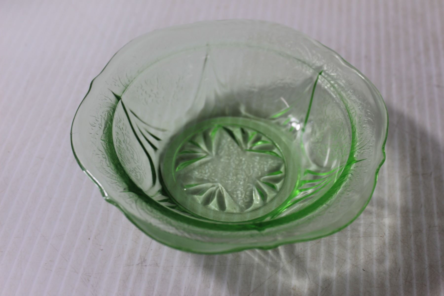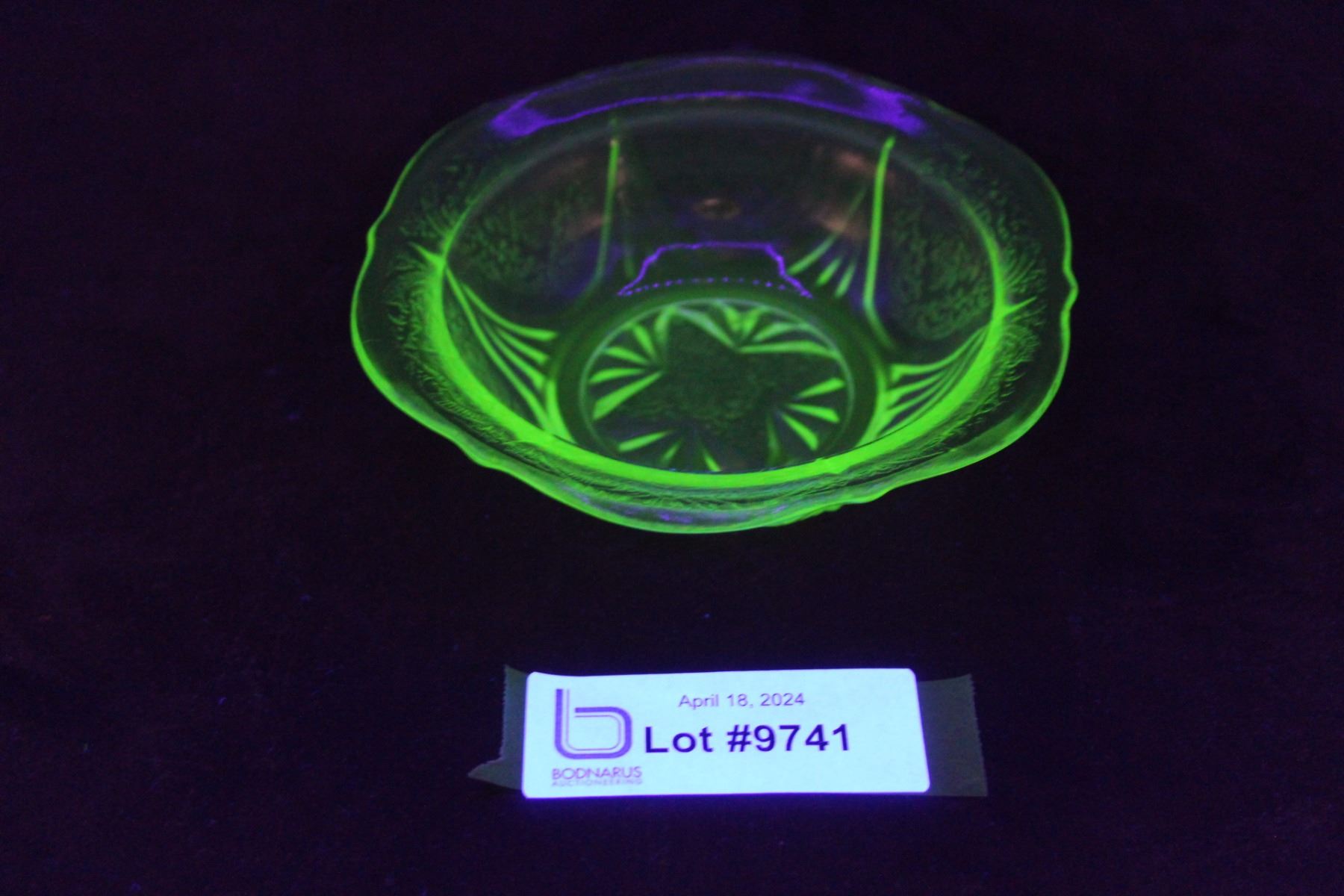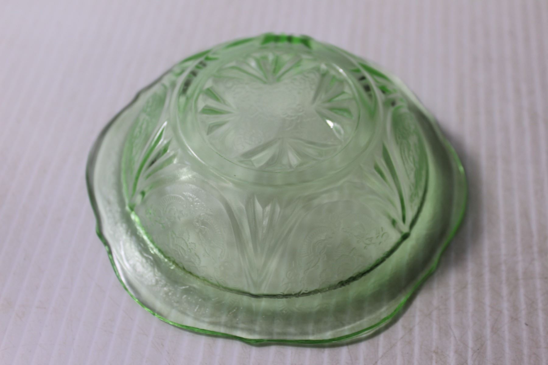 Royal Lace Green Depression Uranium Glass Berry Bowl
