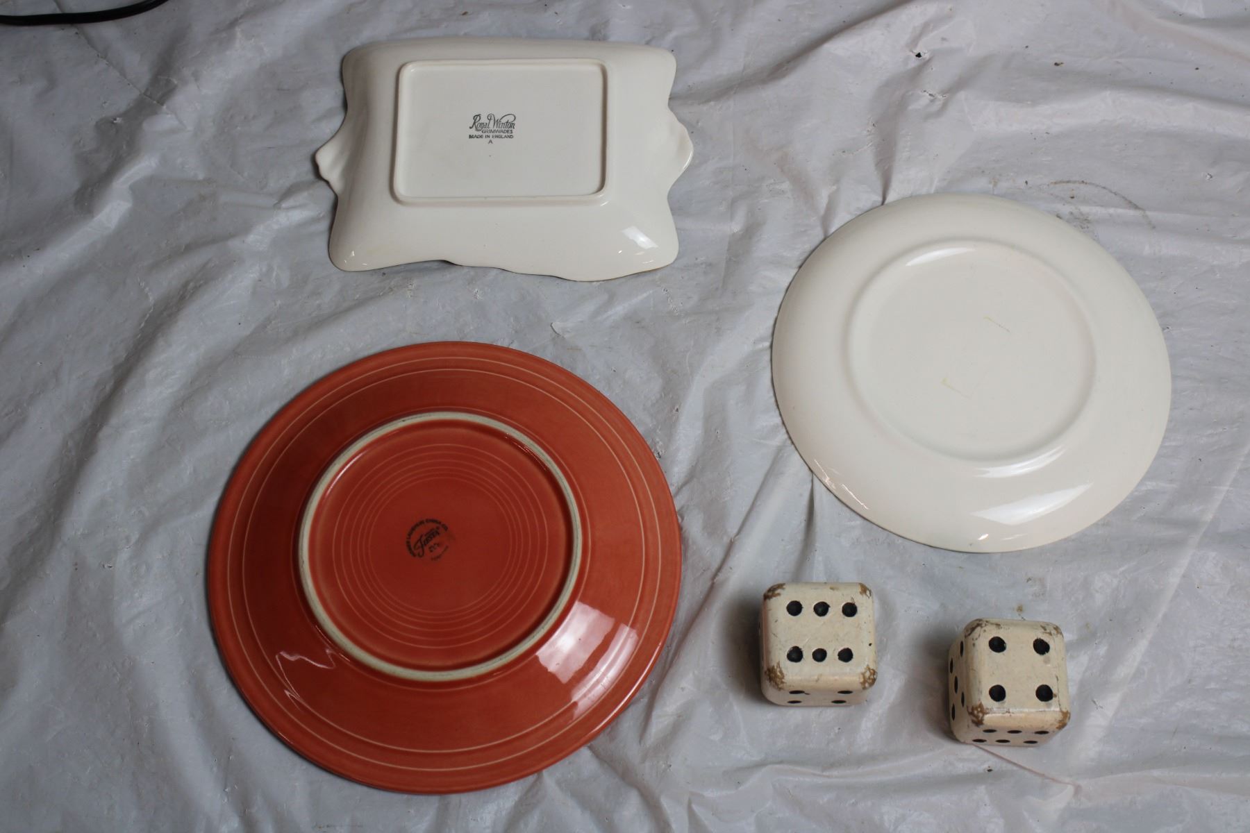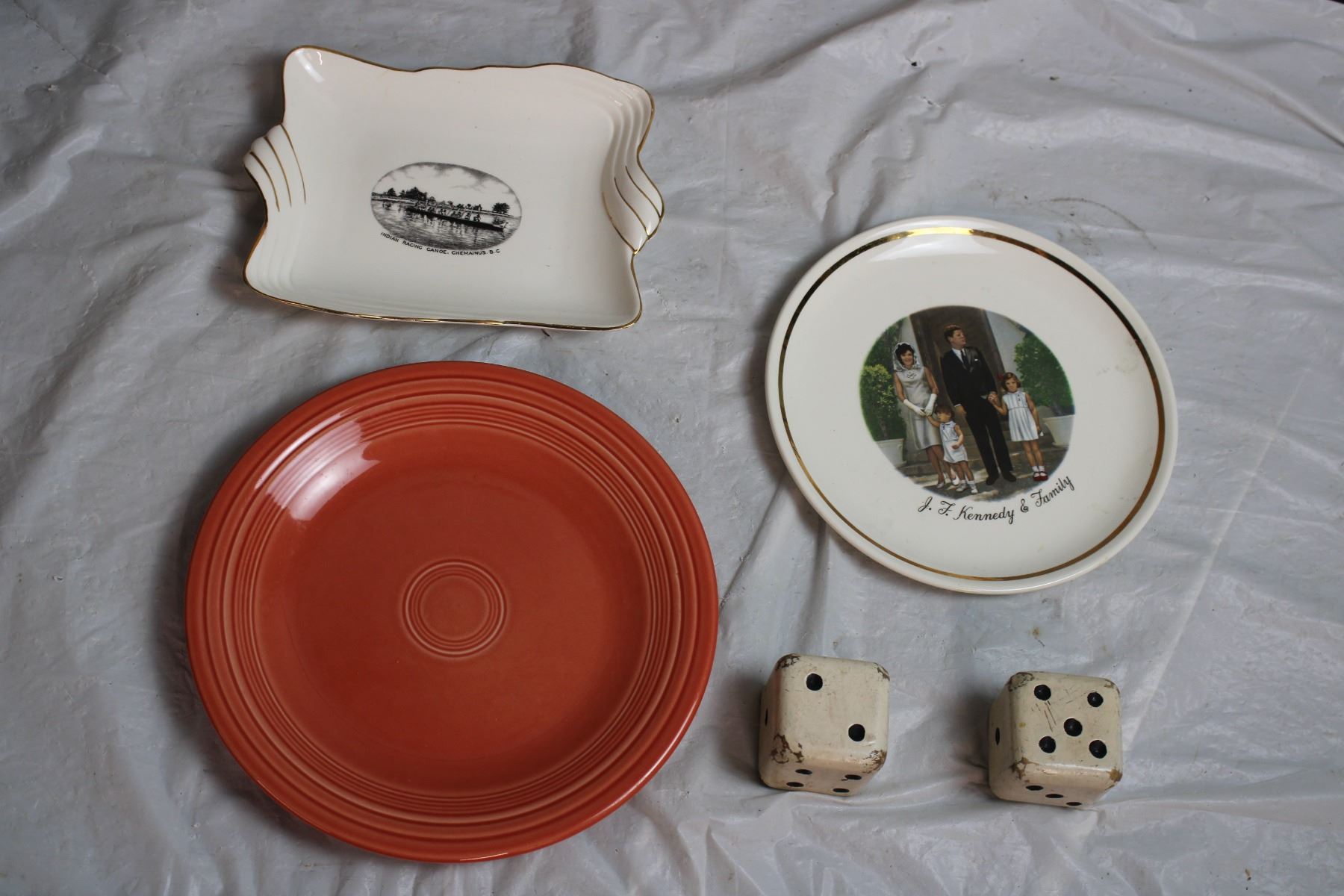 Royal Winton Canoe racing plate, JFK Plate, Fiesta Plate + Wooden Dice
