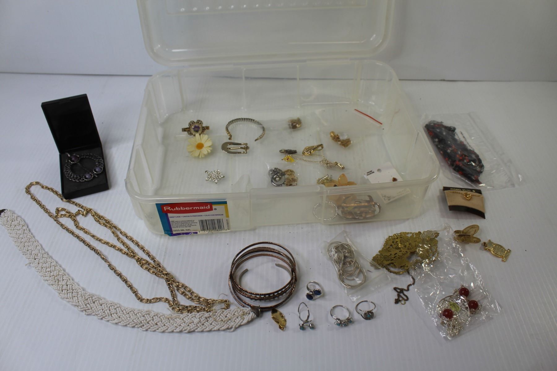 Rubbermaid Container w/Assortment of Costume Jewelry - Necklaces - Pins - Bangles - Rings