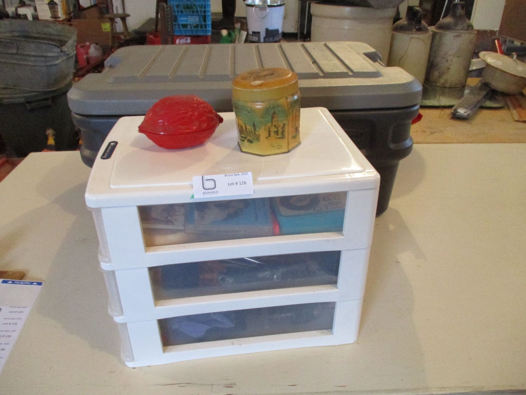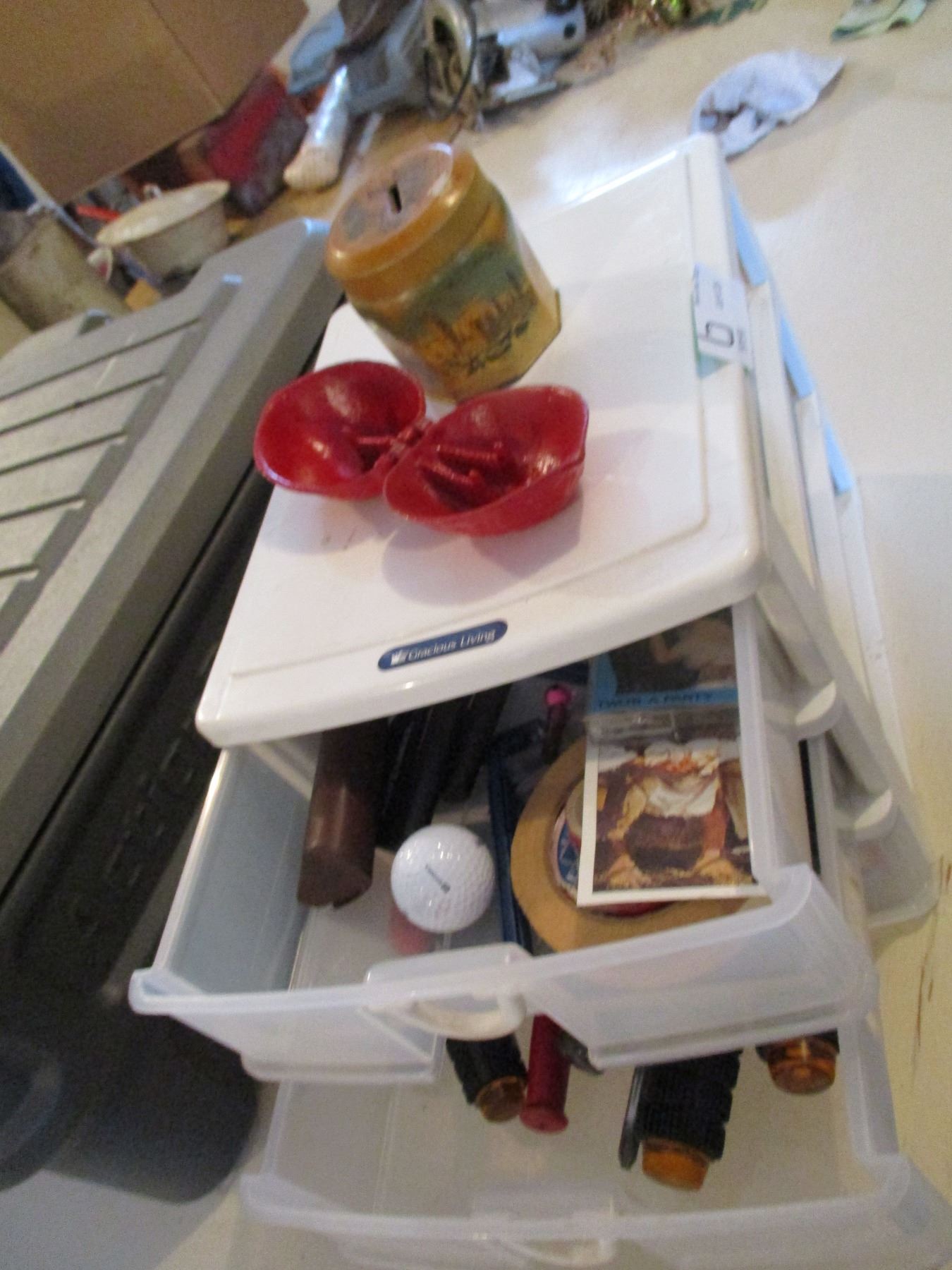 Rubbermaid Plastic Drawer Set and Cast Iron Walnut Cracker with etc.
