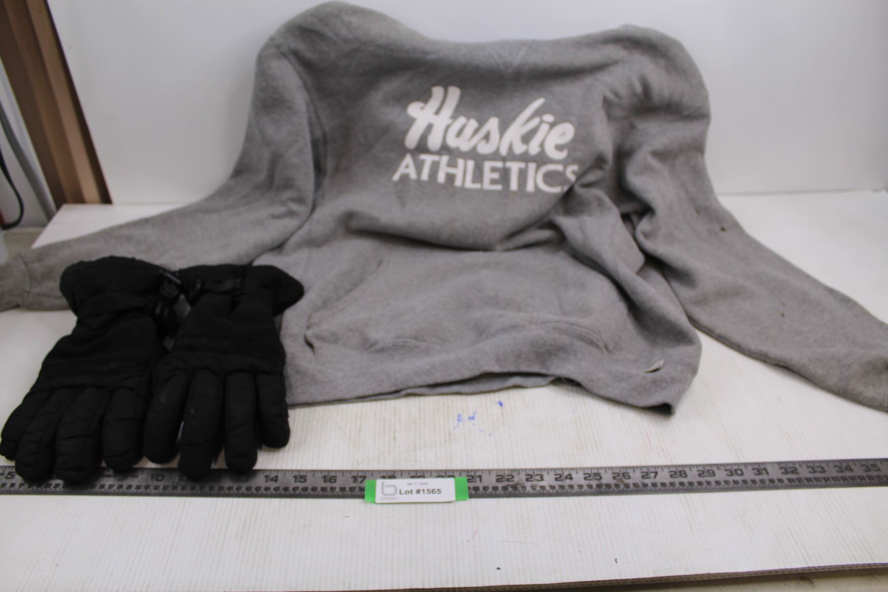 Russell Athletic Hoodie "Huskie Athletics" Size Large, Pair Windriver Gloves