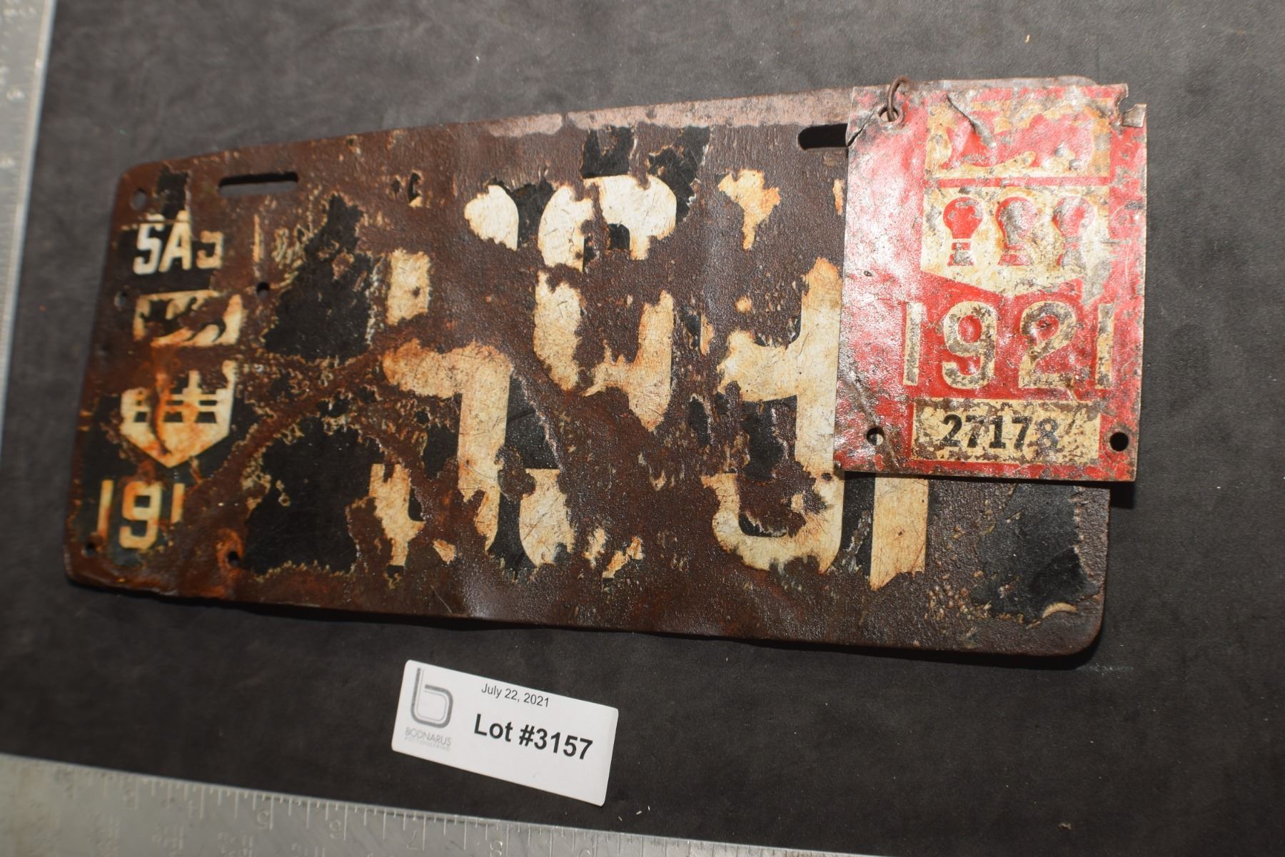 SASKATCHEWAN LICENSE PLATE..............1919 C/W 1921 TAG