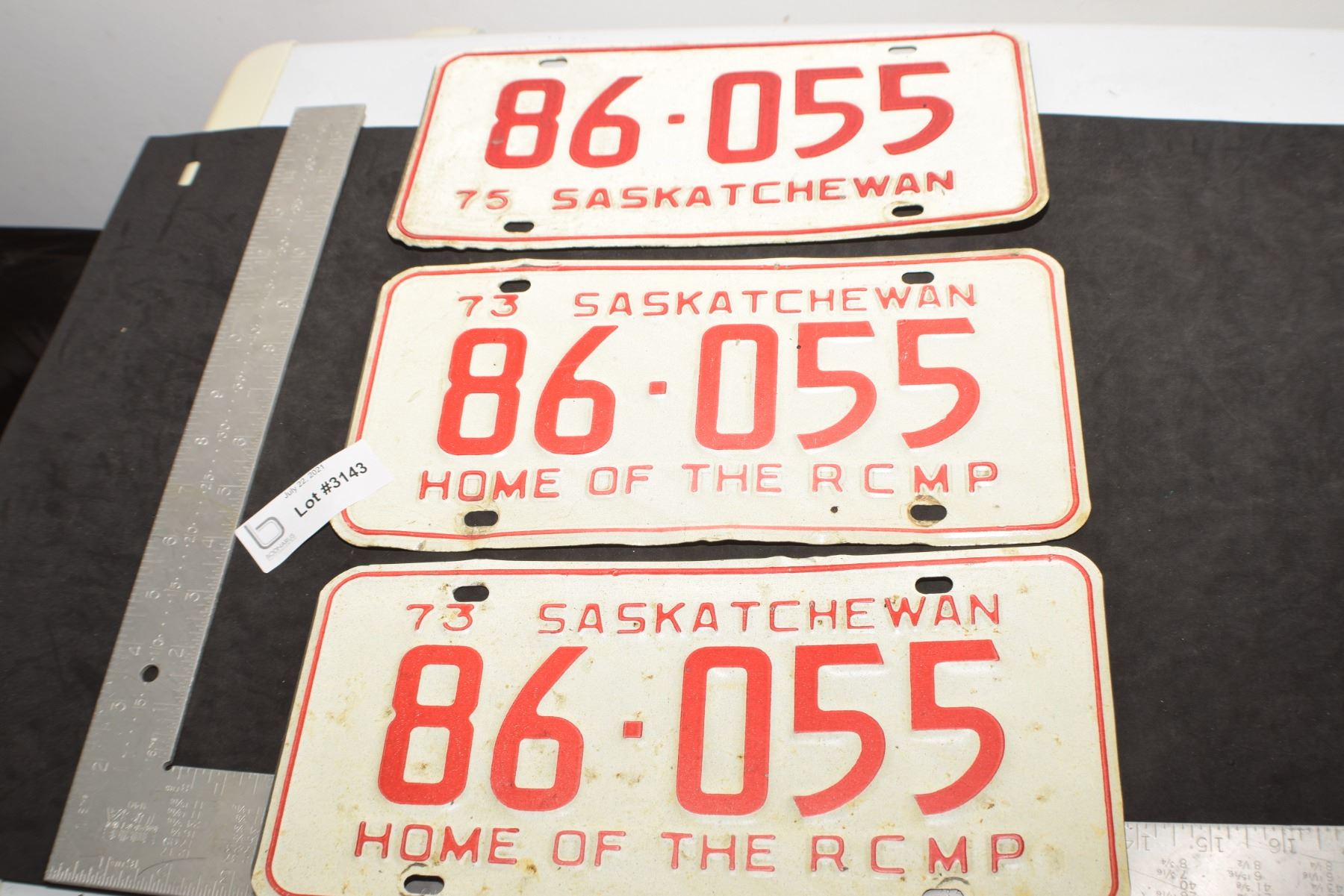 SASKATCHEWAN LICENSE PLATES SET..............1973/75 SAME SERIAL NUMBER