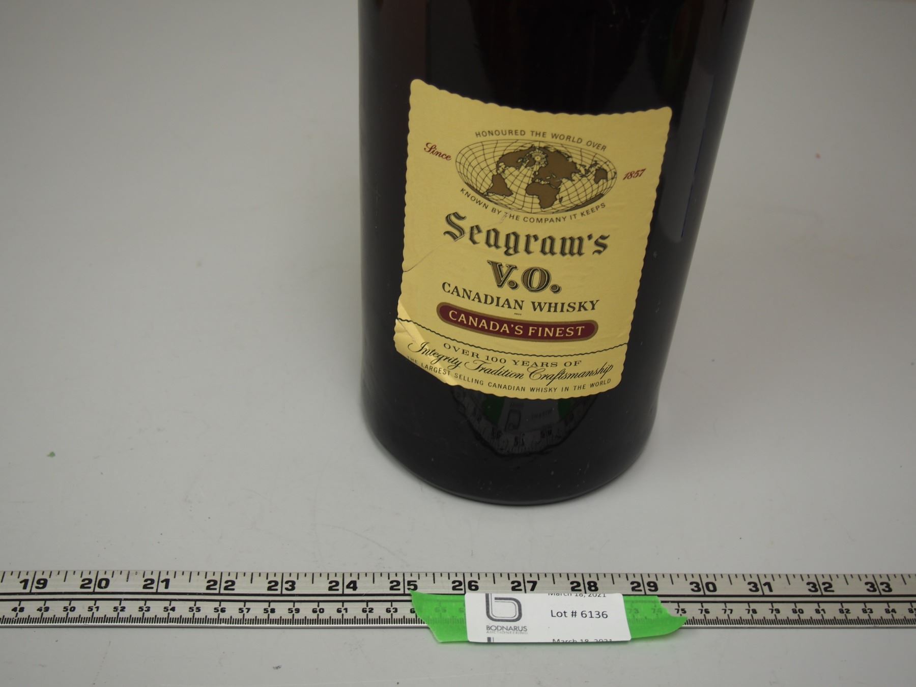 SEAGRAMS V.O CANADIAN WHISKEY 133 1/3 OZ GLASS BOTTLE 1968