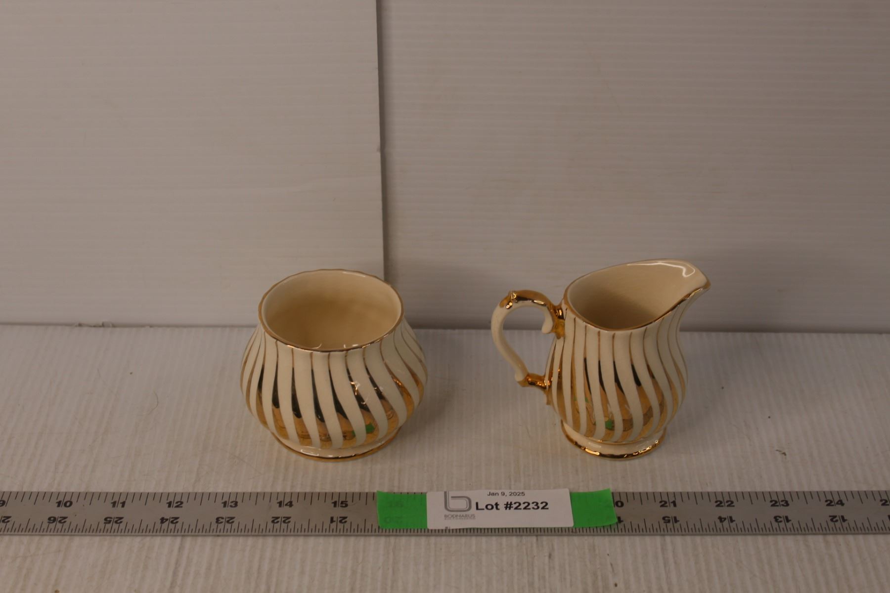 Sadler CeramicWhite and Gold Swirl Creamer & Sugar Set
