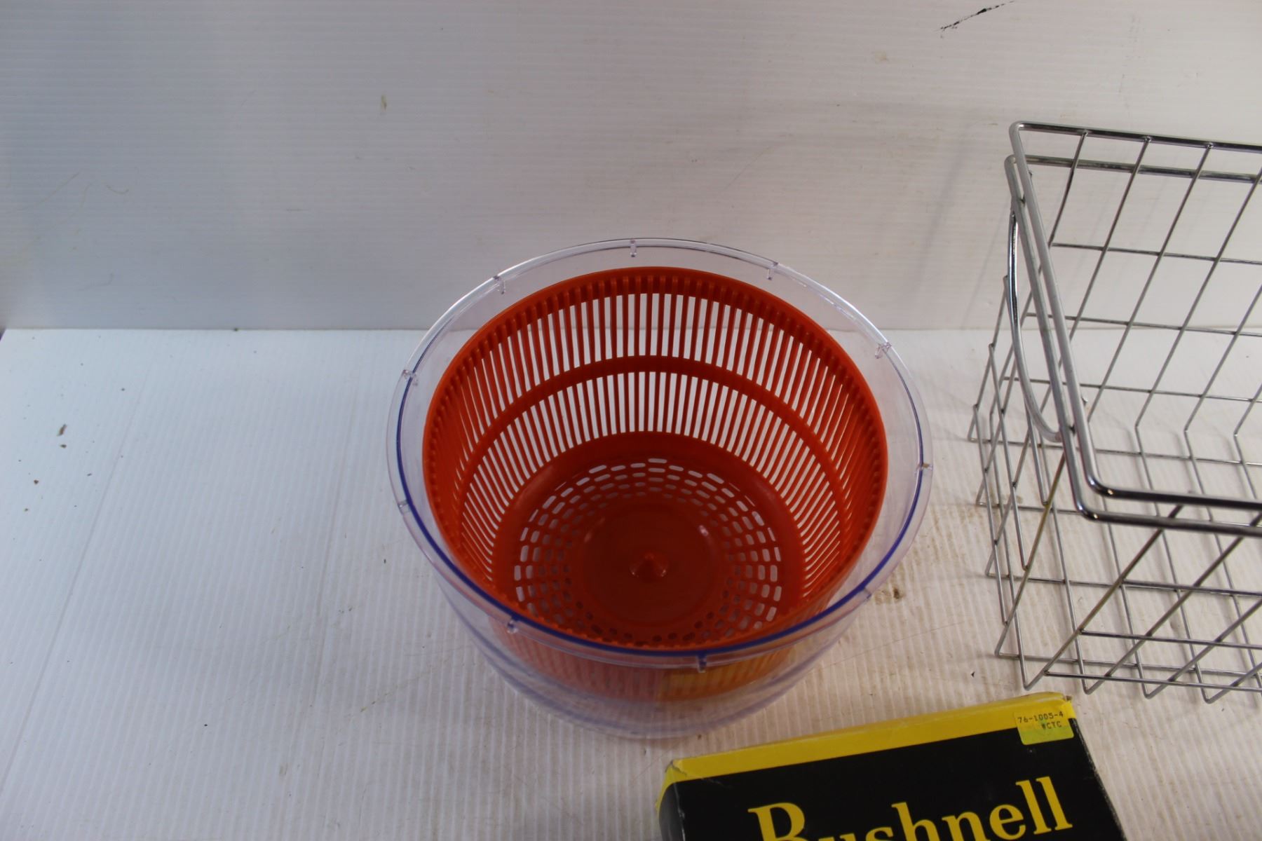 Salad Mixing Bowl, Bushnell Binoculars Case, Wired Basked and Enamel Dish with Lid