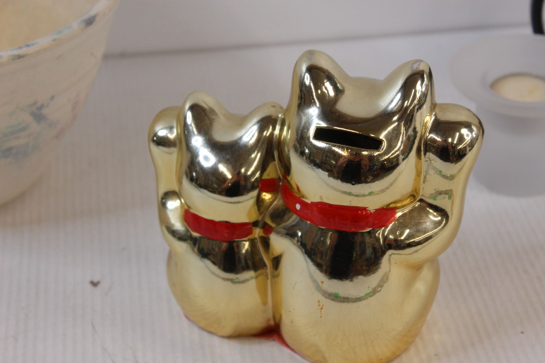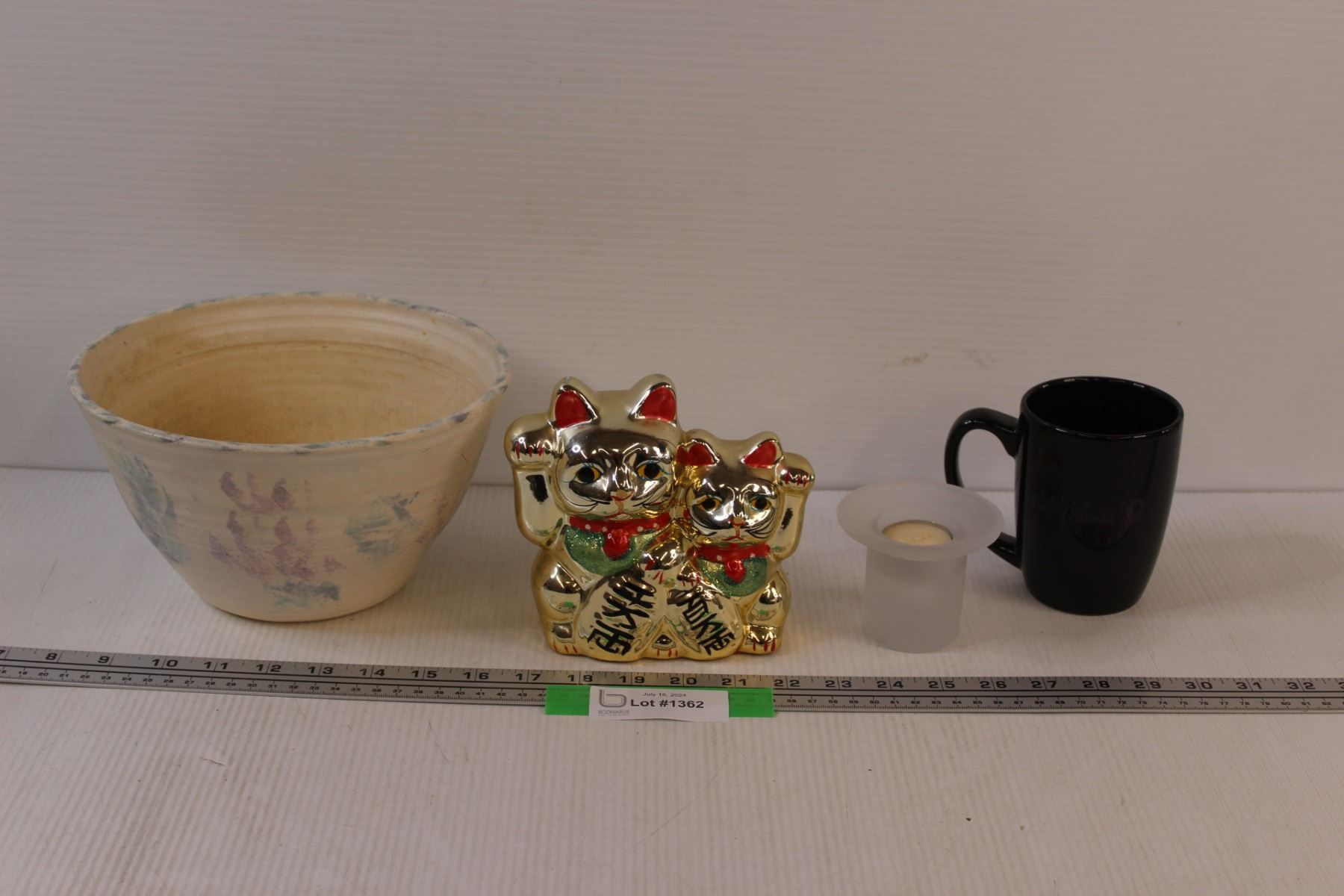 Salad Pottery Bowl, Happy Cat Money Bank, Candle w/Holder, Mug