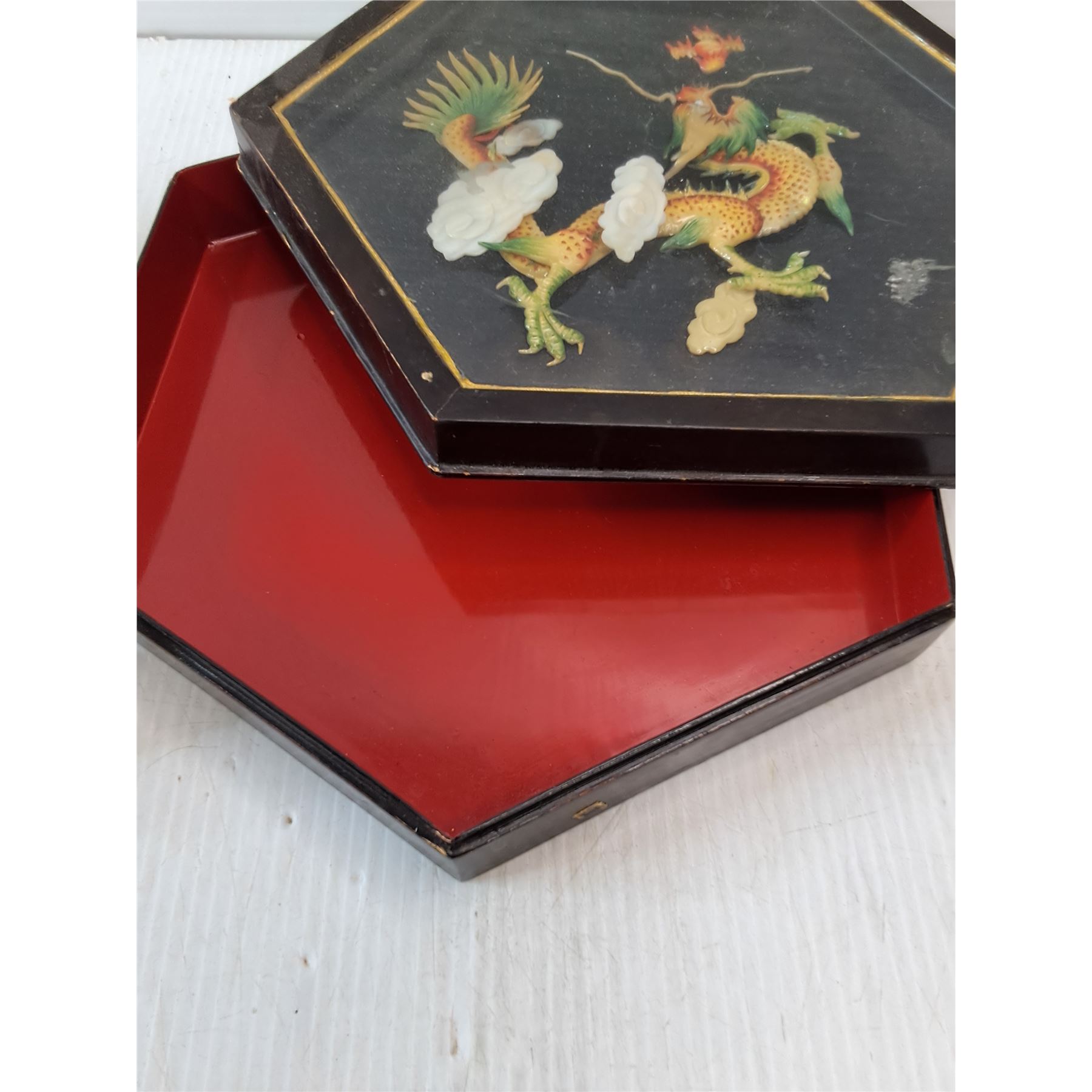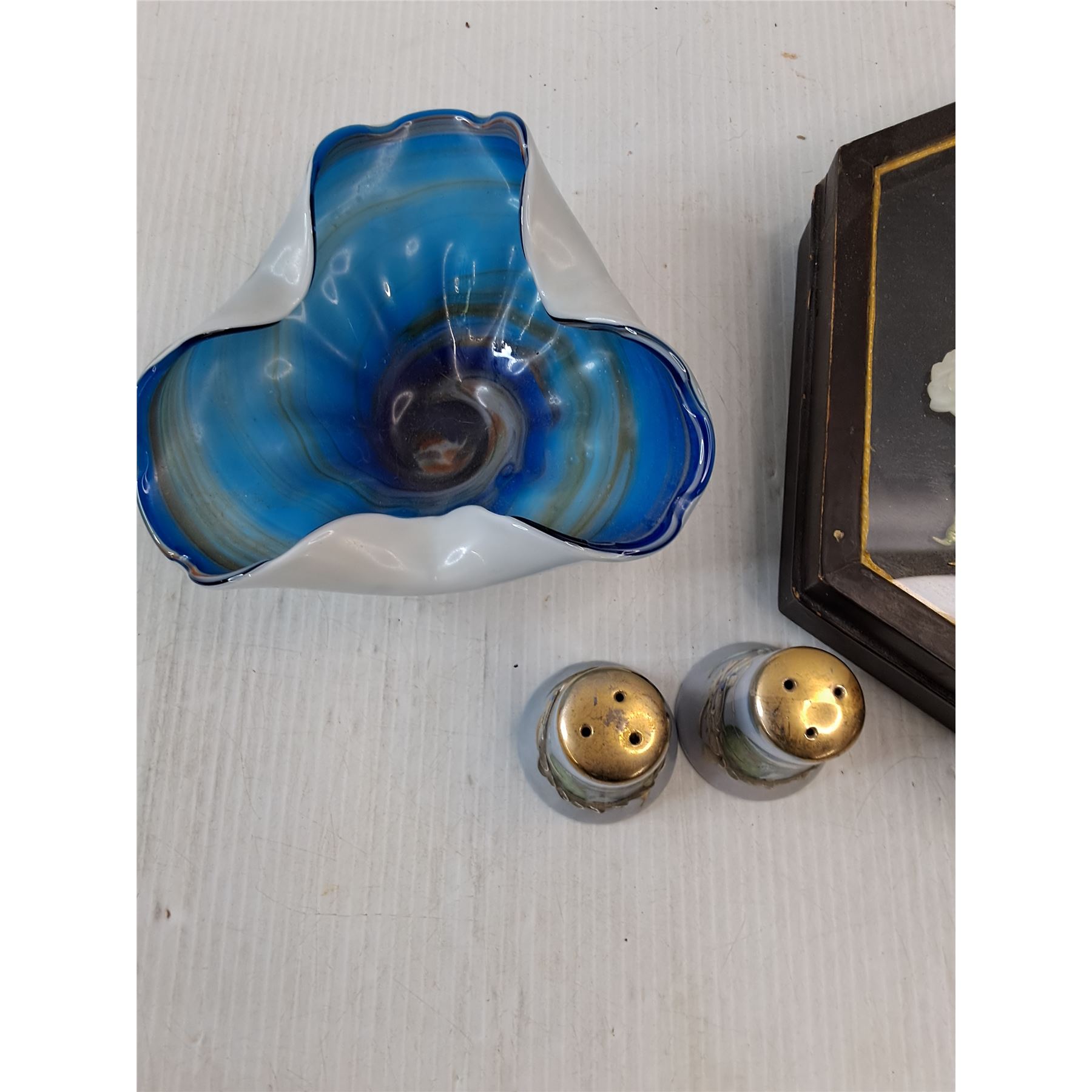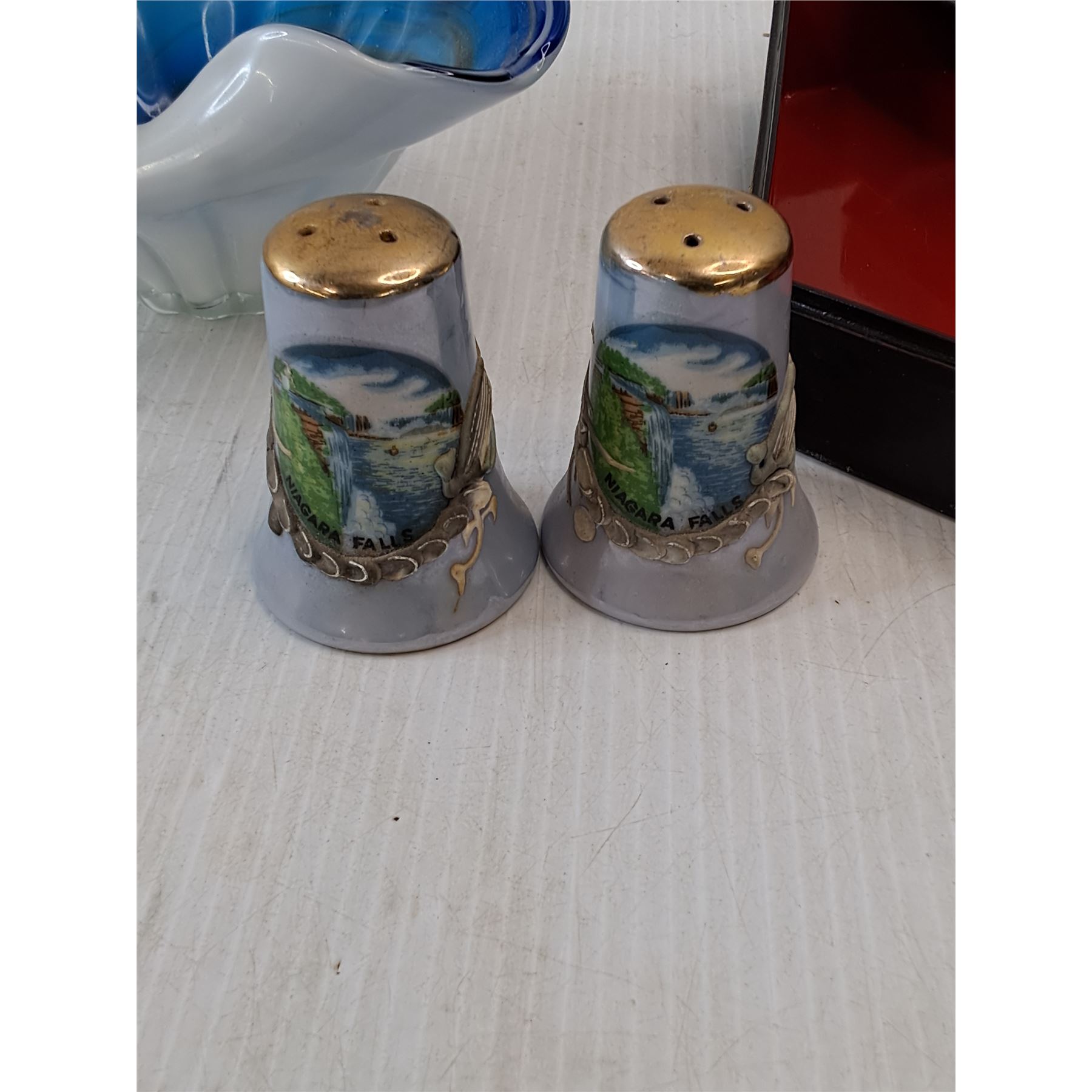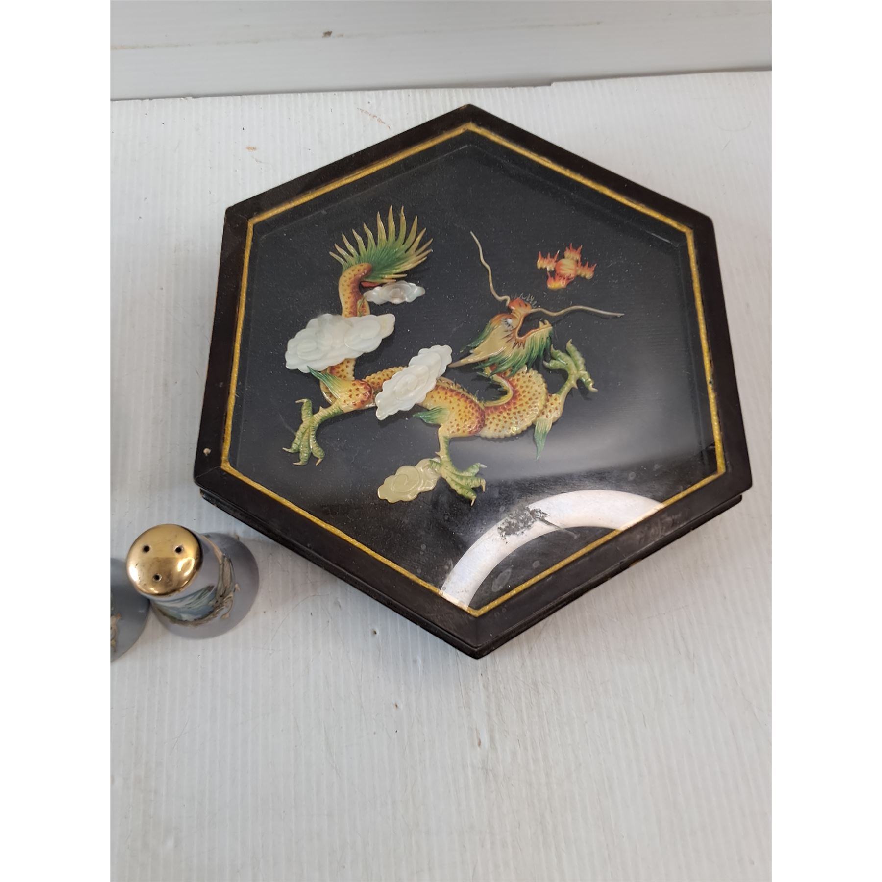 Salt & Pepper Shakers, Chinese Dragon Box & Blue Dish