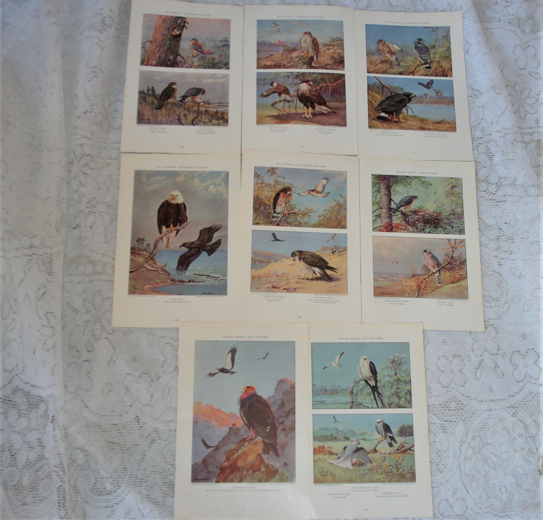 Salvaged magazine prints 1933 Allan Brooks Canadian bird artist double sided national geographic