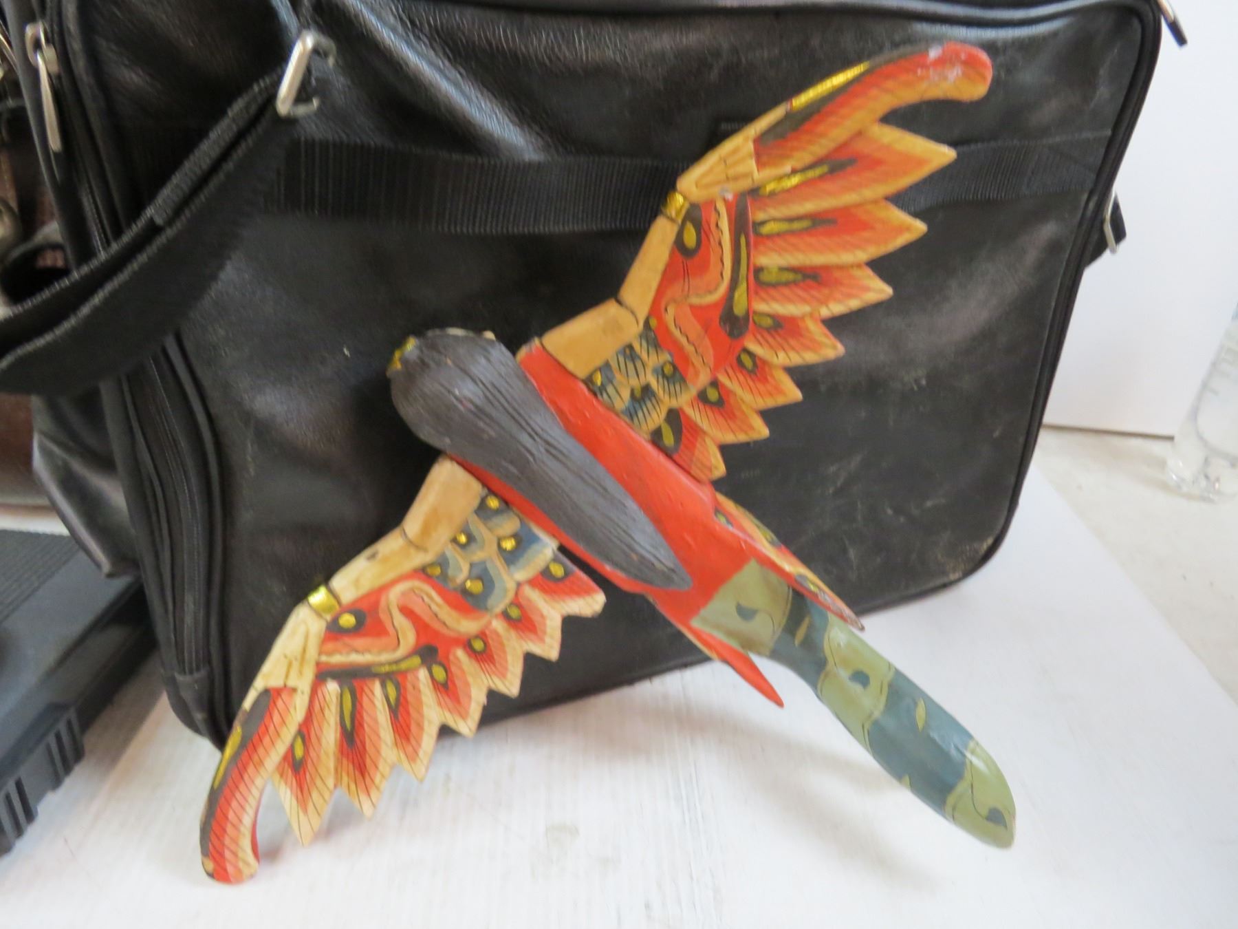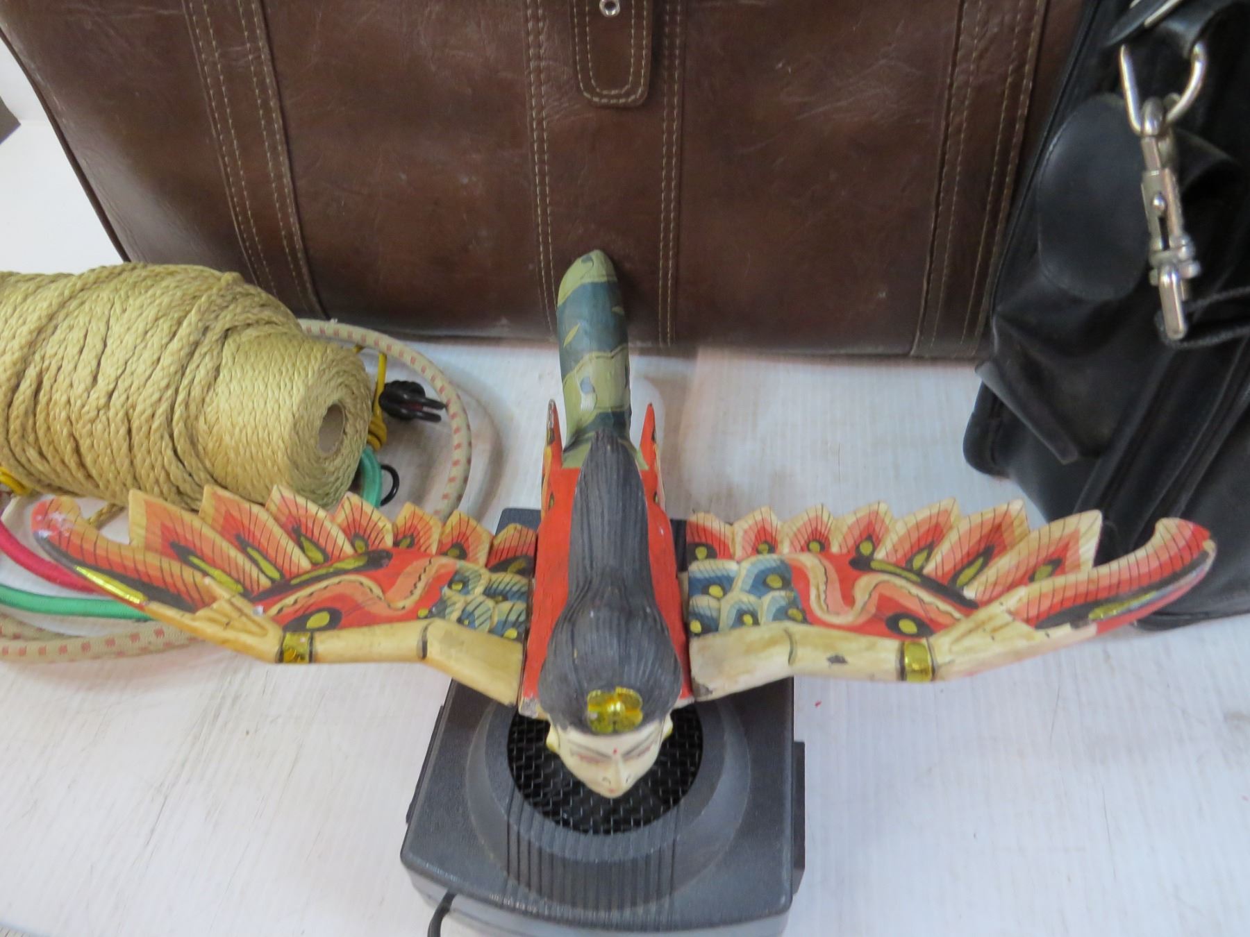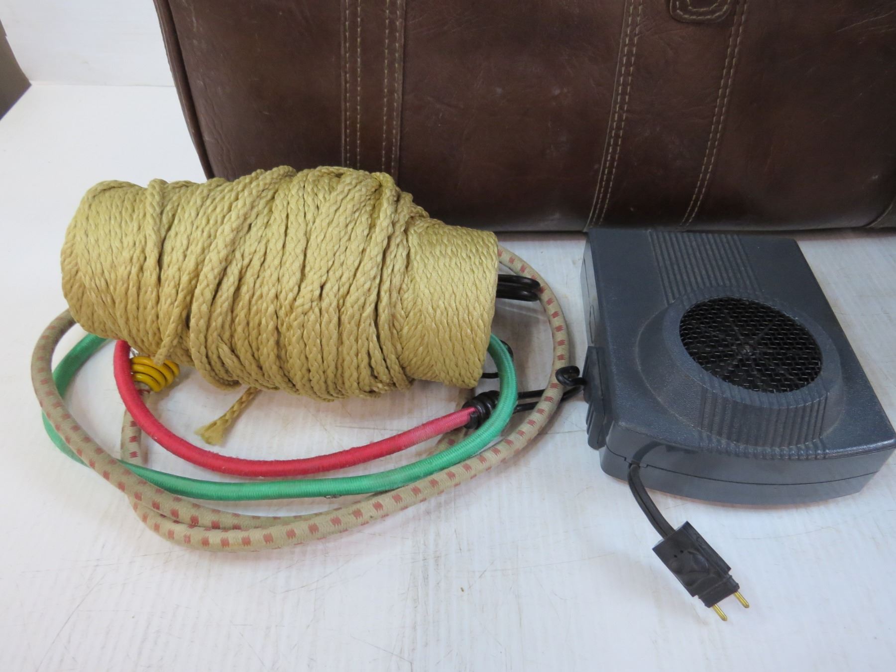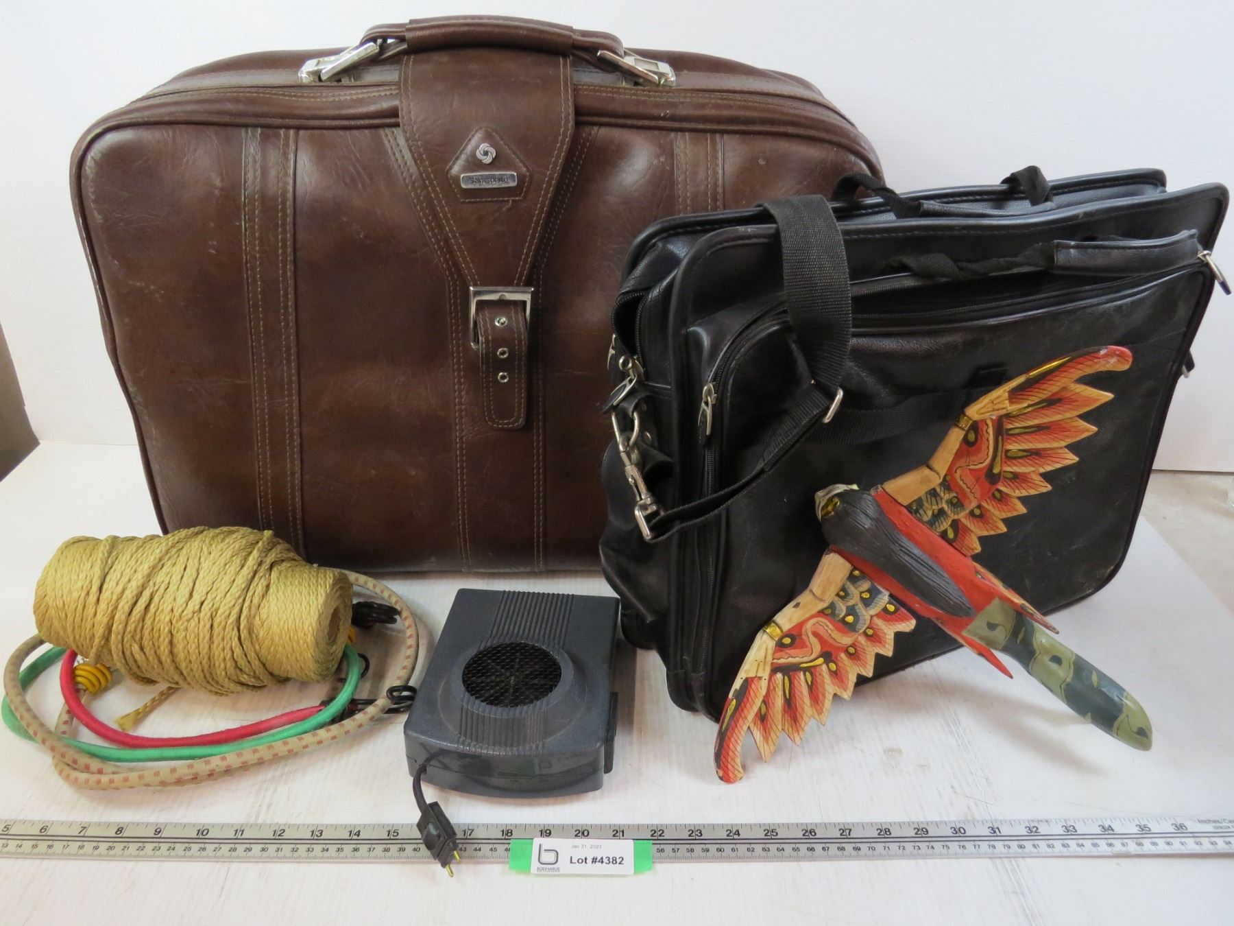 *Samsonite Suitcase - Art Case? - Rope - Tarp Straps - Carved Art Sculpture - Fan