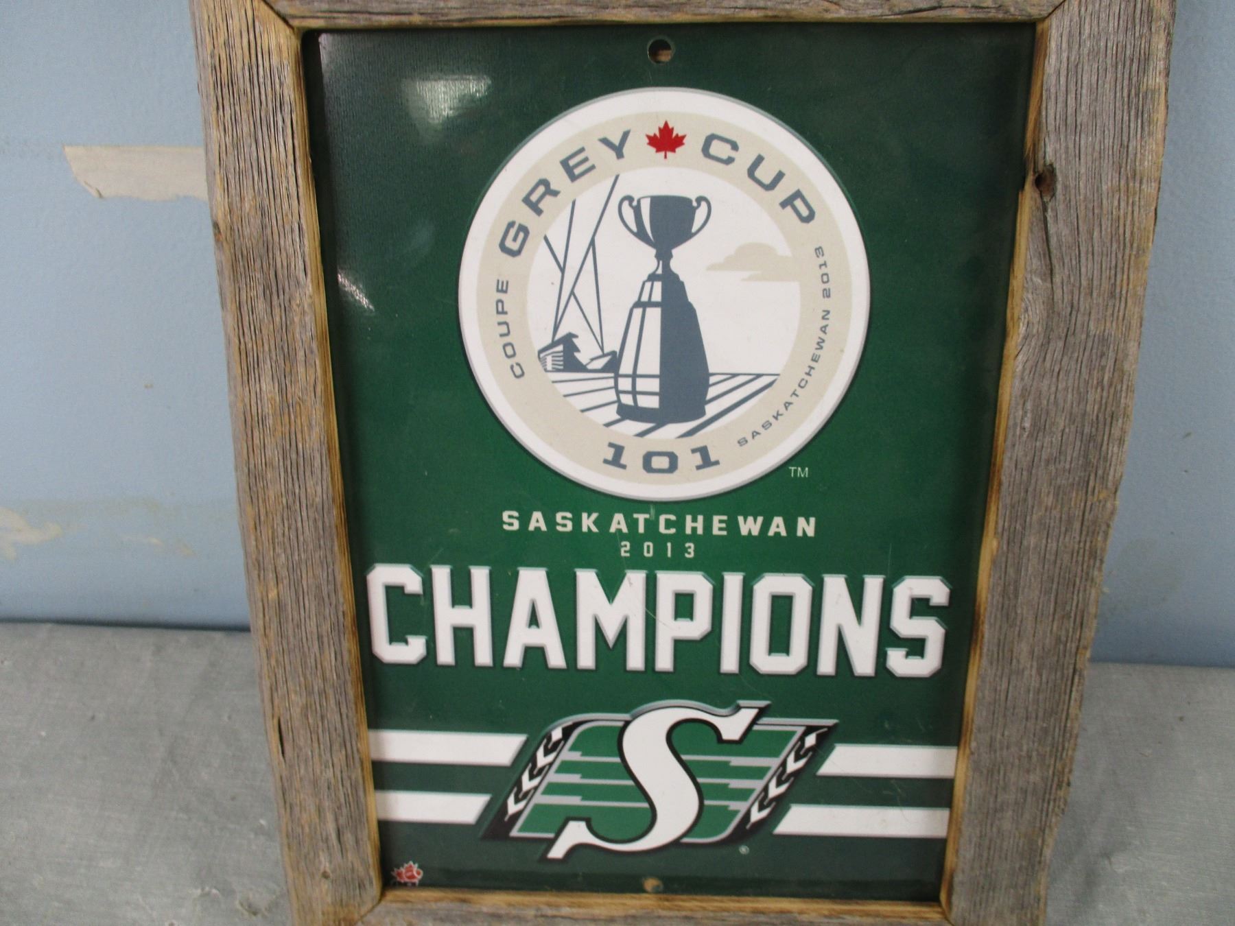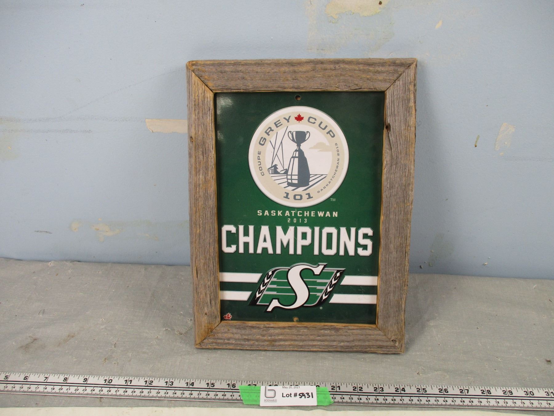 Sask Roughriders 2013 Picture Framed in Barn Wood (10 3/4" x 14 1/4")