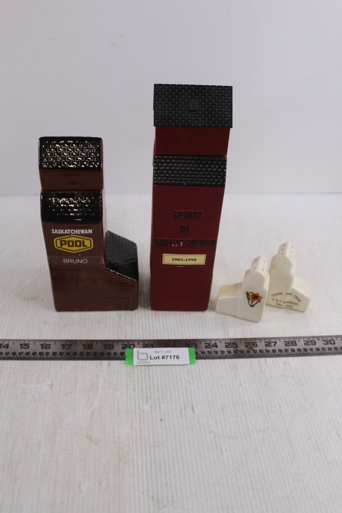 Saskatchewan Grain Elevator Whiskey Bottles - Empty, Grain Elevator Salt & Pepper Shakers