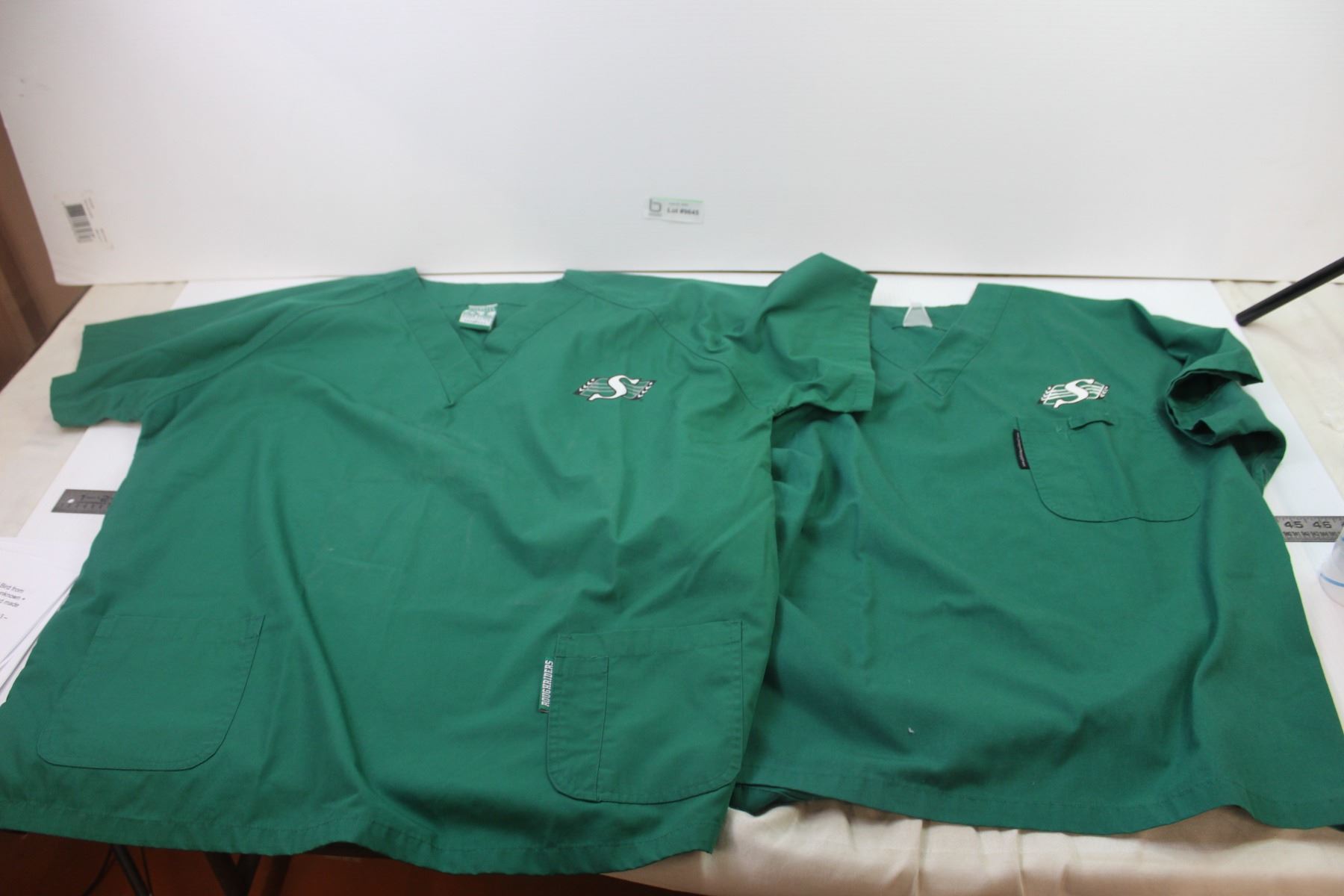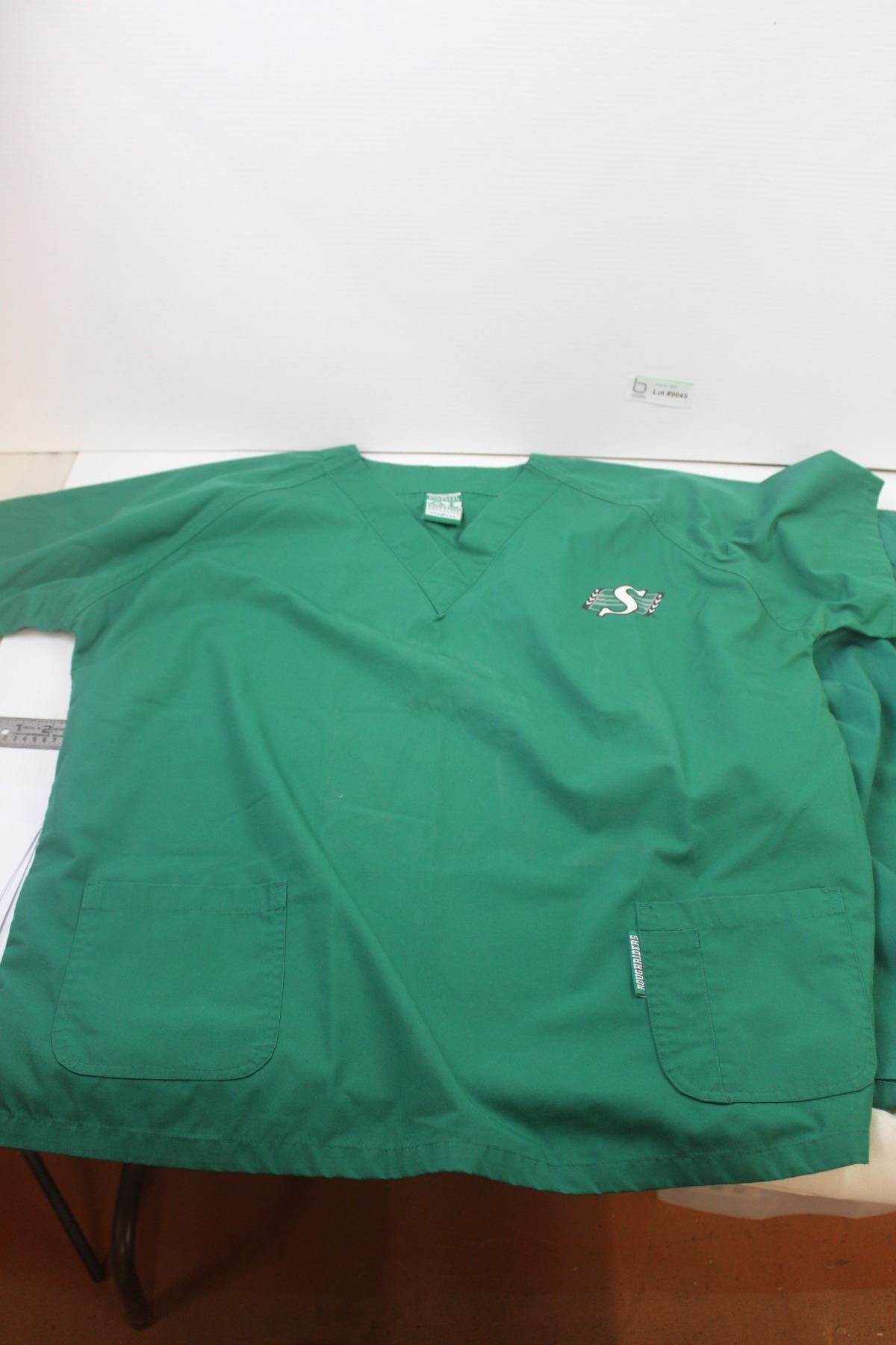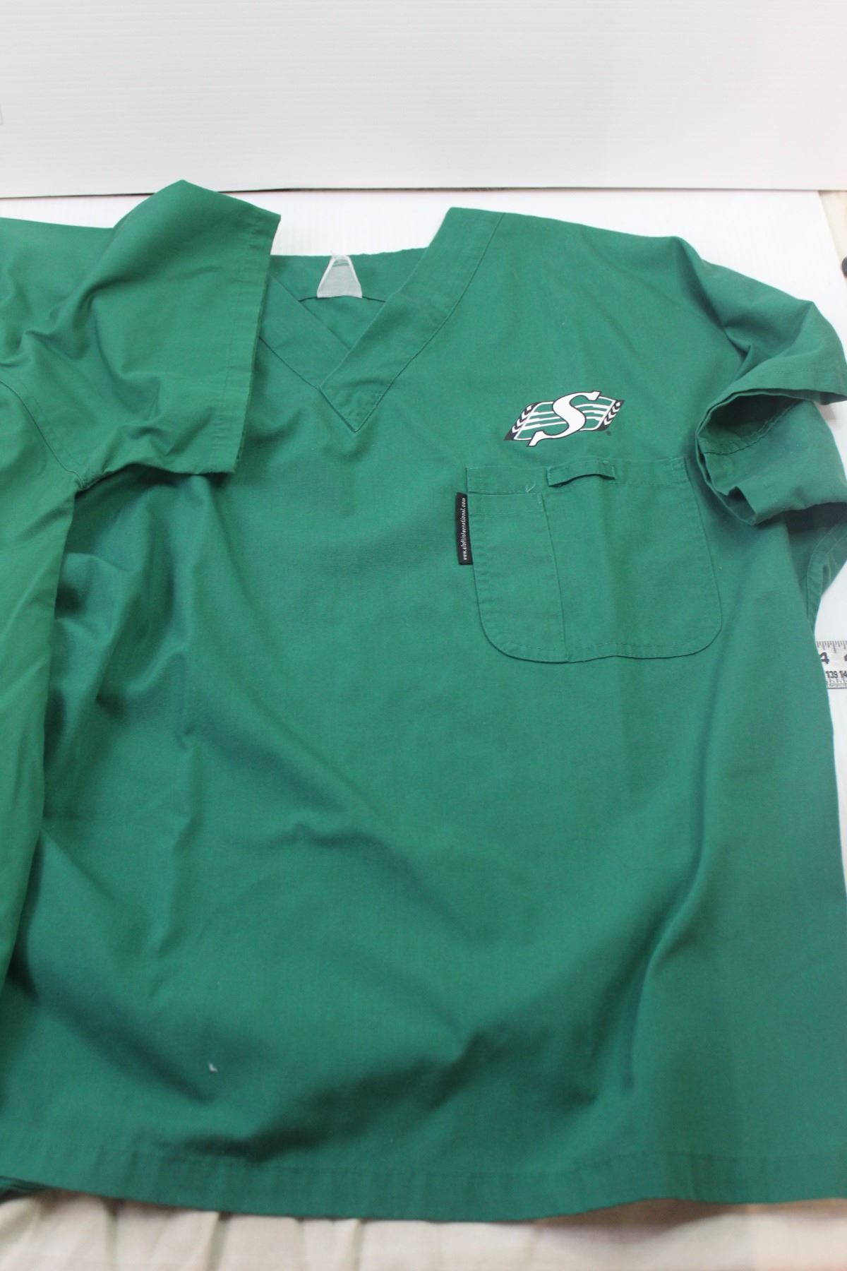 Saskatchewan Roughriders Medical Scrubs - 2 Tops - Rider Store Exclusive XL + Aloft International (No Size - Appears Medium)