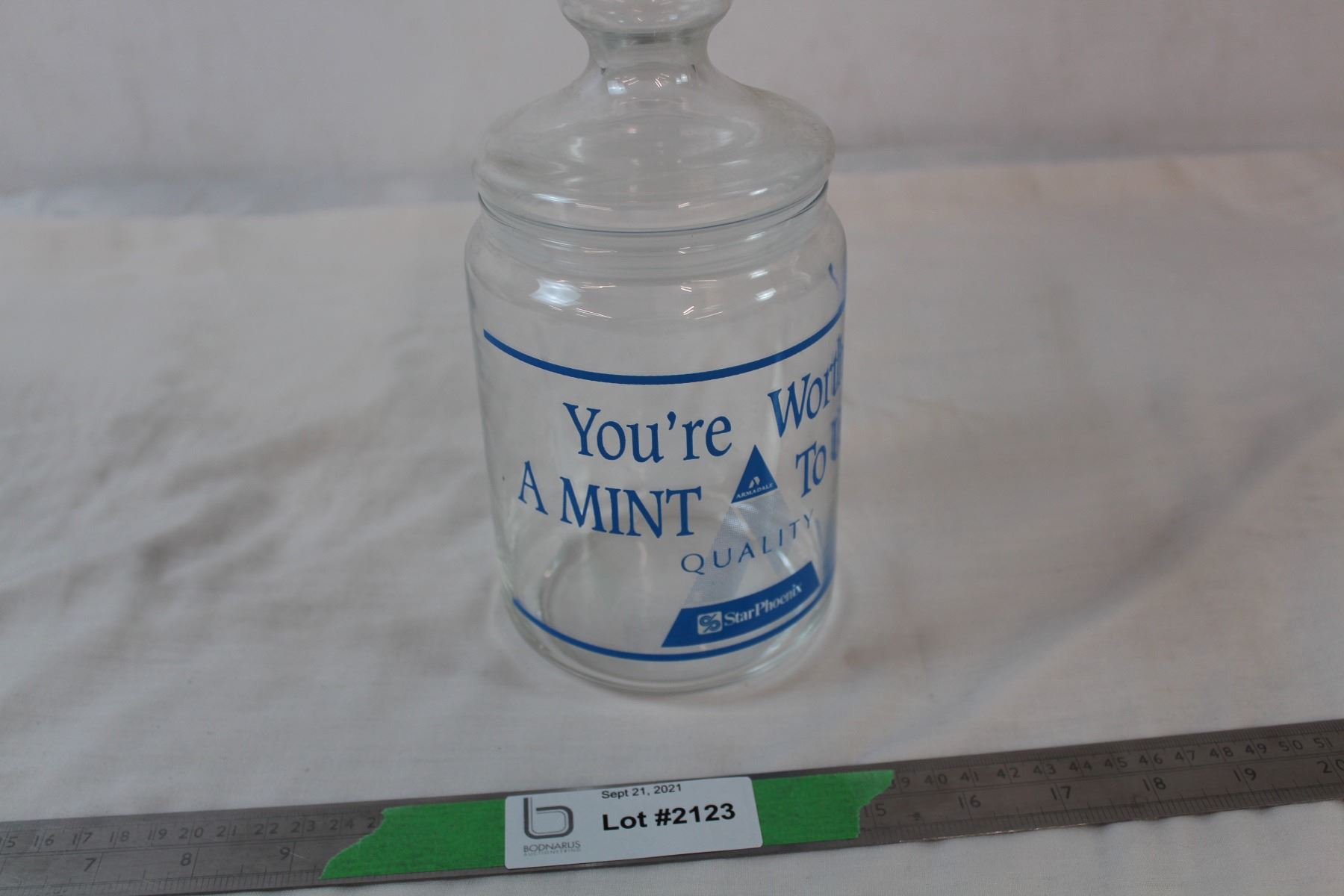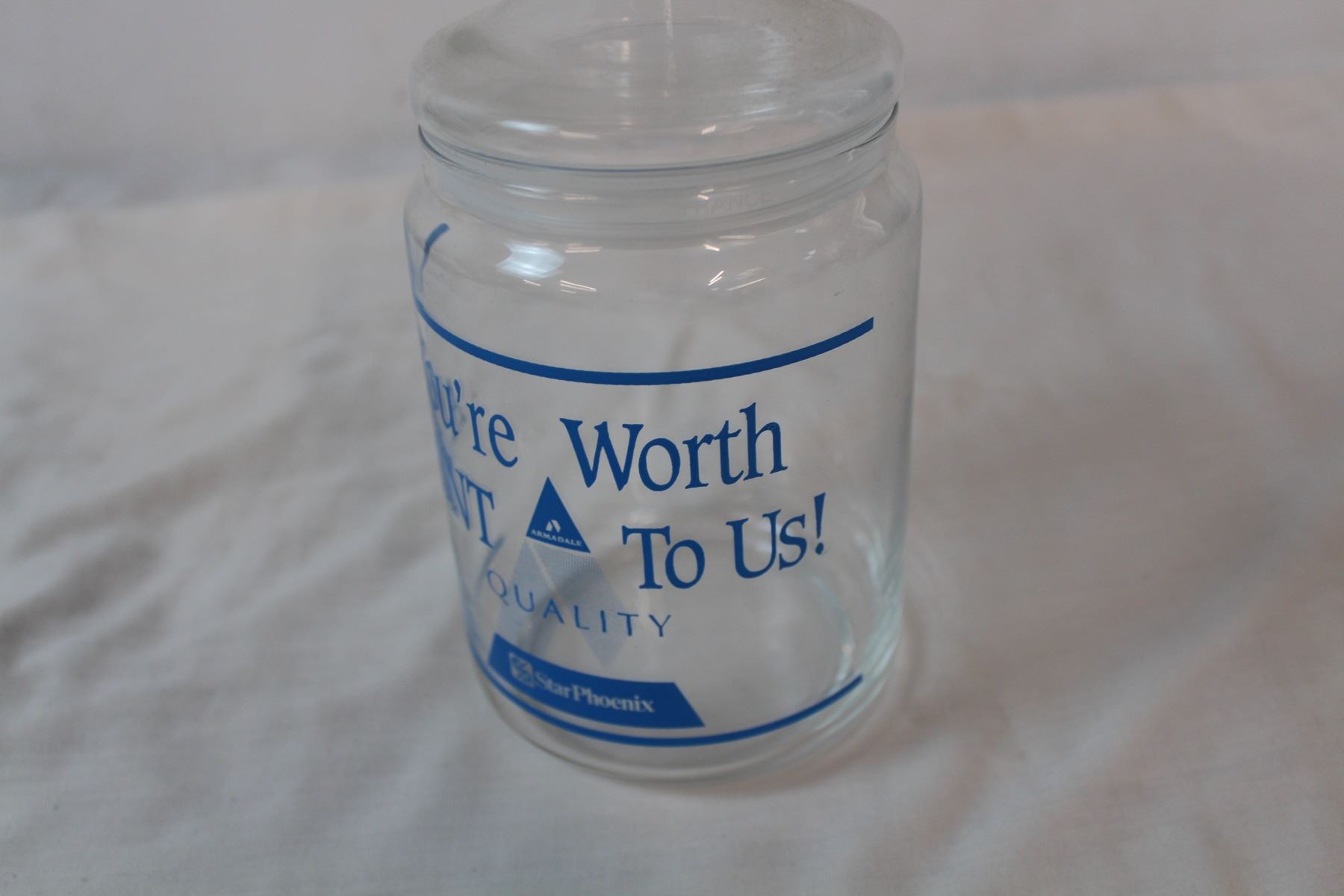Saskatoon Star Phoenix "youre worth a mint" sealed candy jar