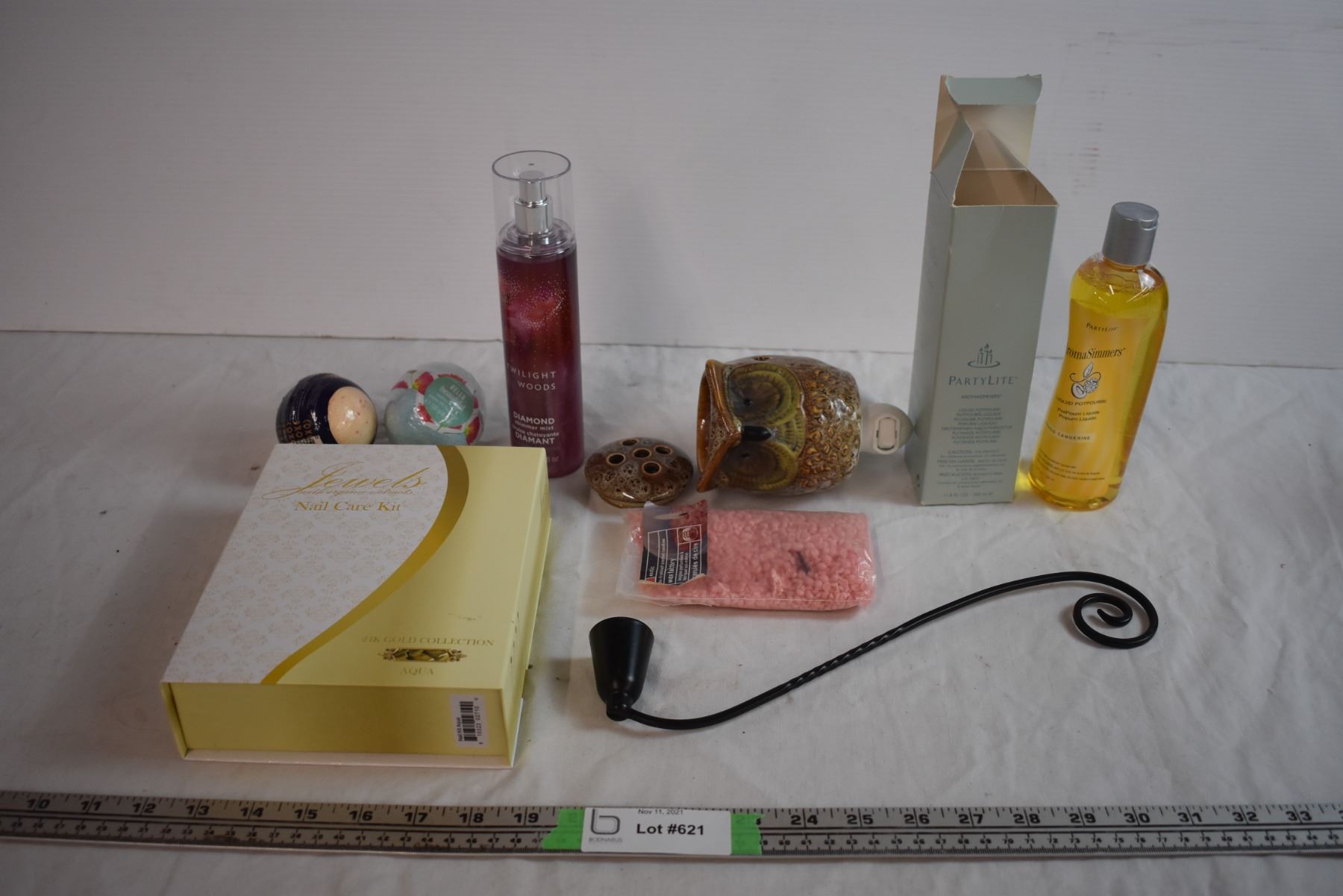 Scentsy wall plug melter with Wax, Bath Bombs, Nail Care Kit, and Body Spray candle snuffer