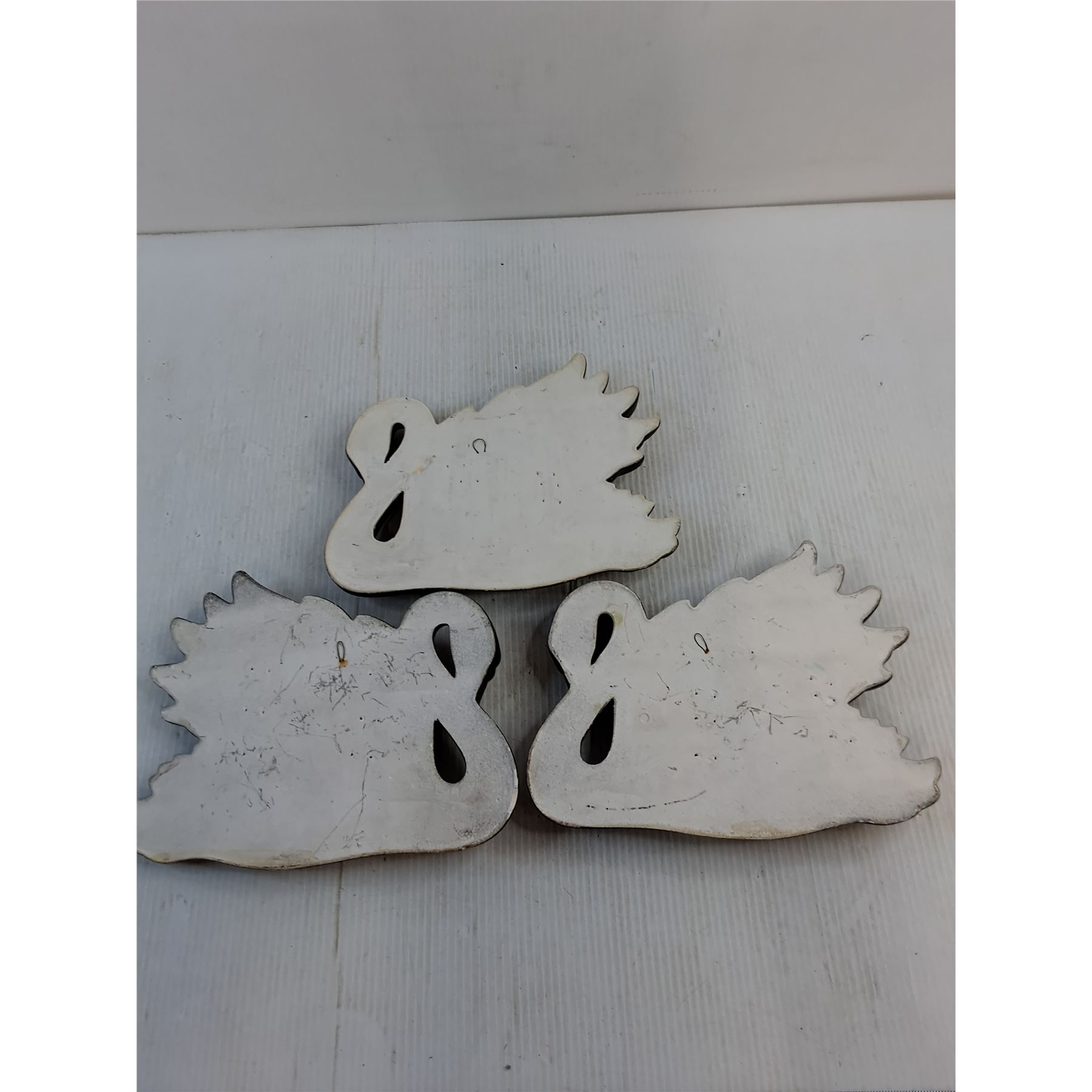 Set of 3 Vintage 'Black Swan' Chalkware Decor