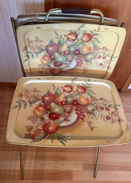 Set of 4 Vintage TV Trays and Stand - Trays each measure 27" H x 21.5" W x 16" Deep