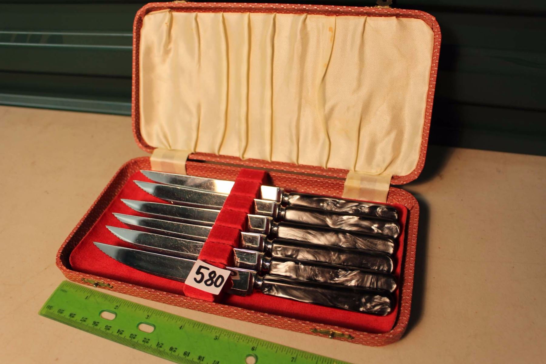 Set of 6 Sheffield Serrated Knives In Hinged Case
