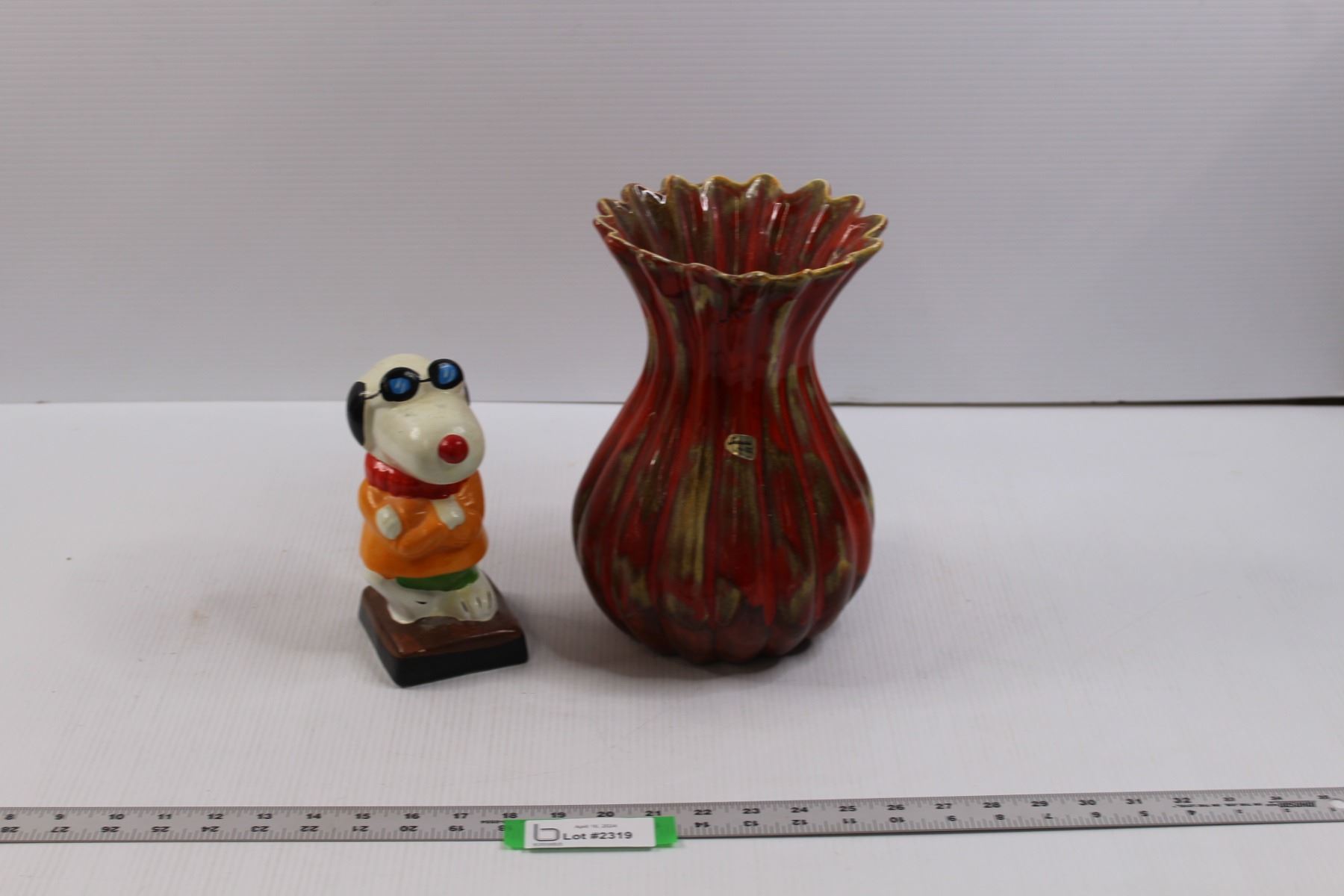 Sheewai Art Pottery Vase w/Sand & Snoopy Coin Bank