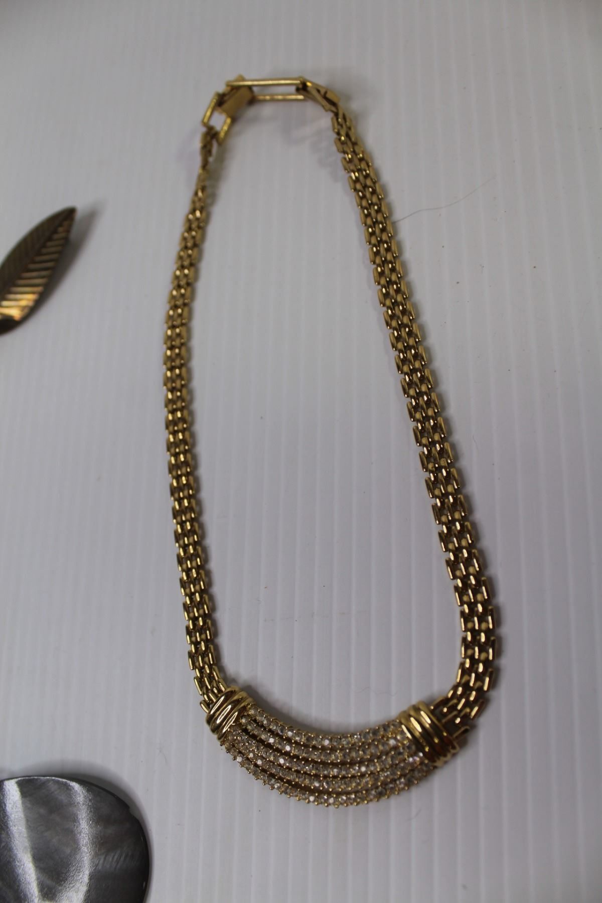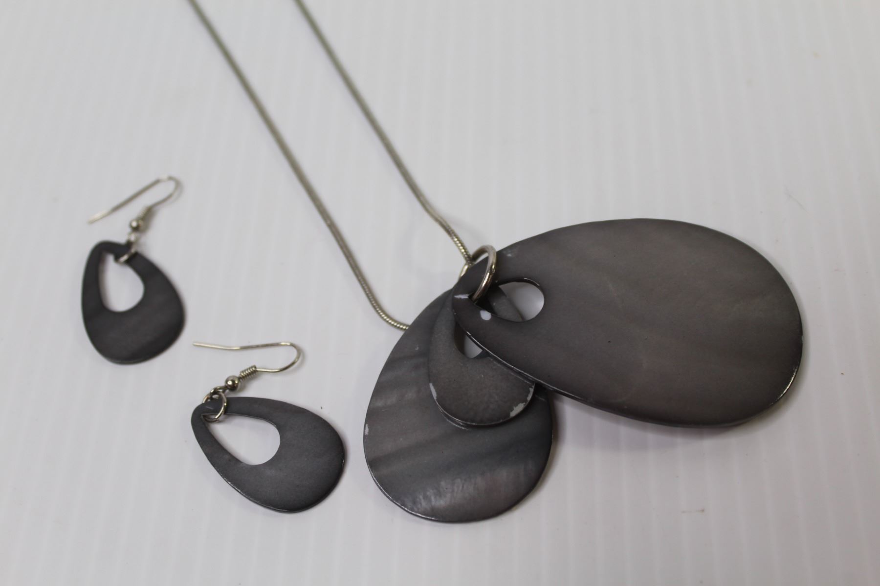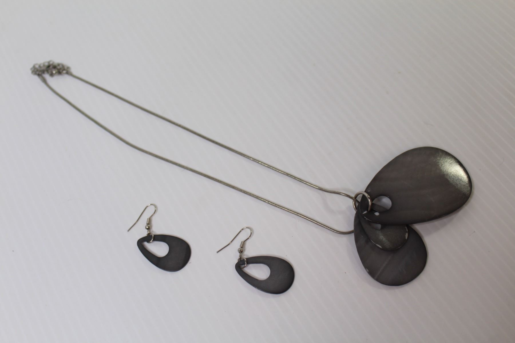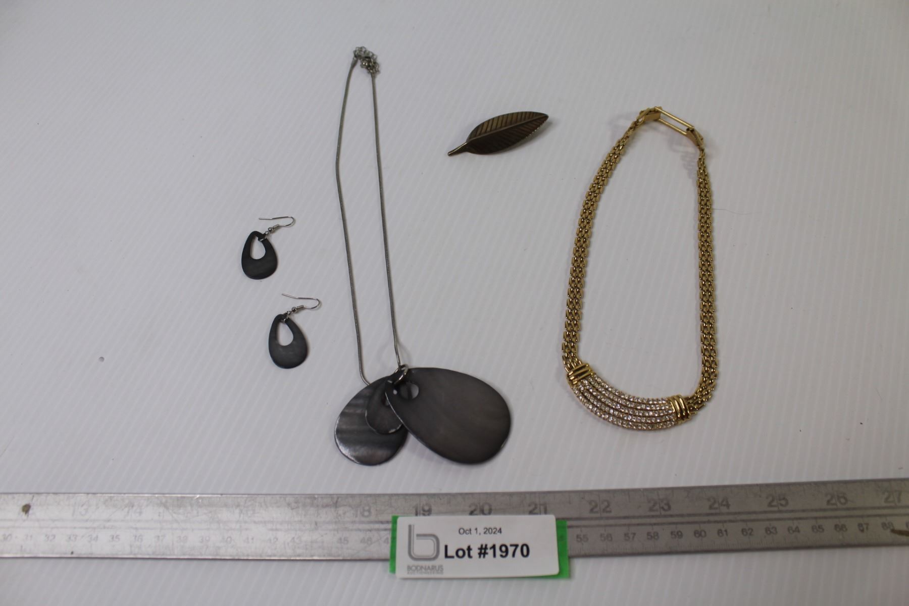Shell Pendant Necklace w/Matching Pierced Earrings - Choker Chain Necklace - Leaf Brooch