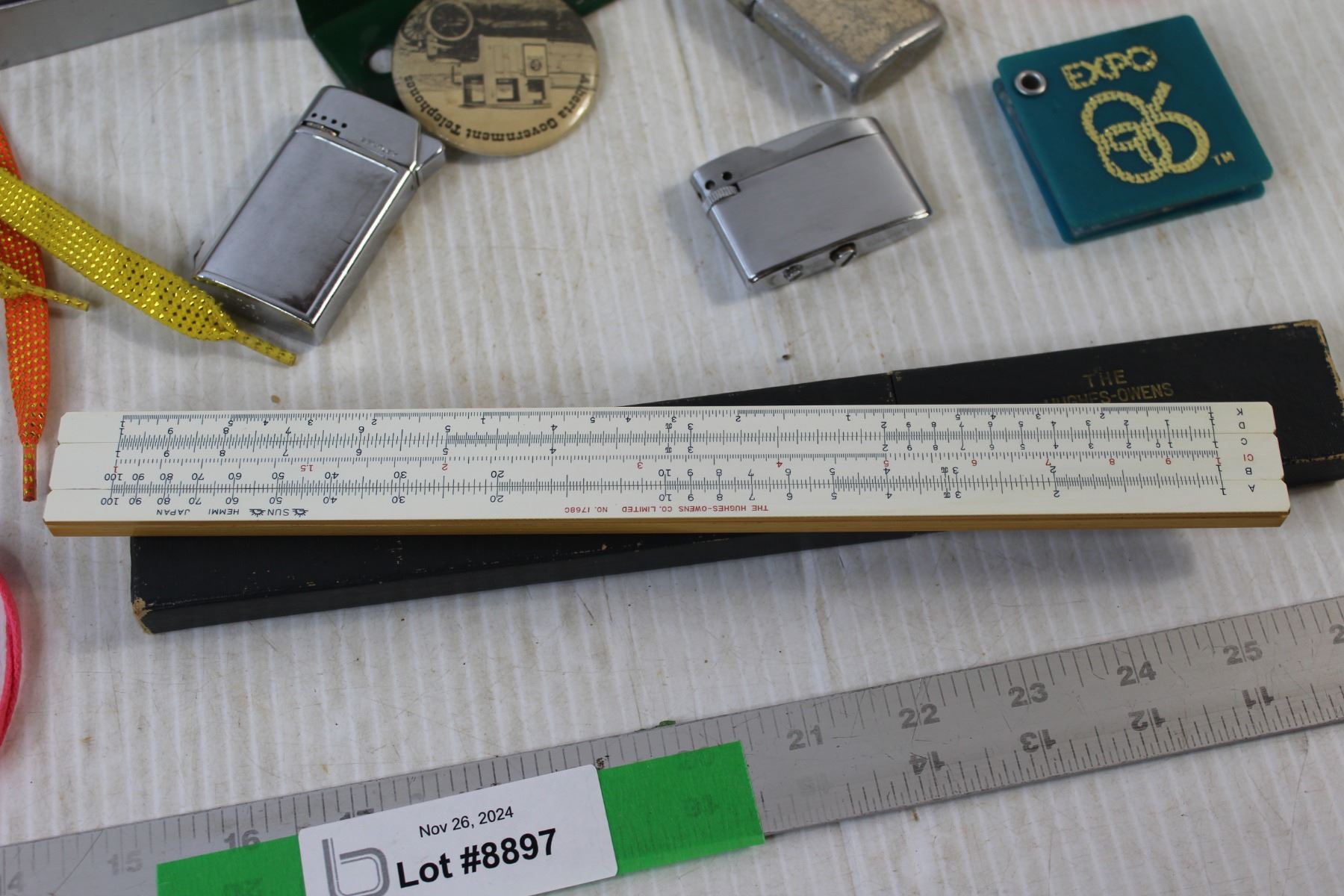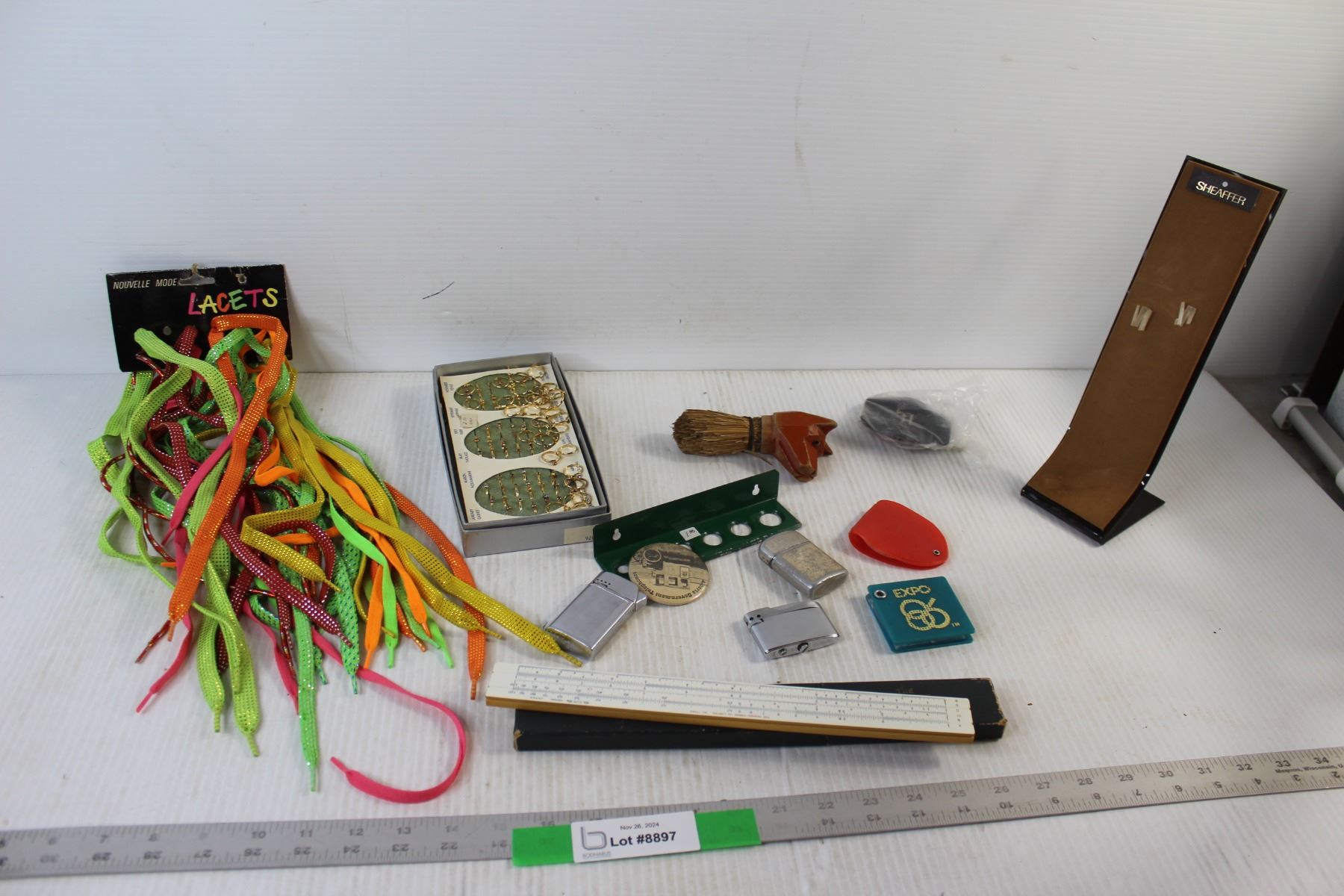 Shoelaces, Costume Jewelry, (3) Lighters, Misc.