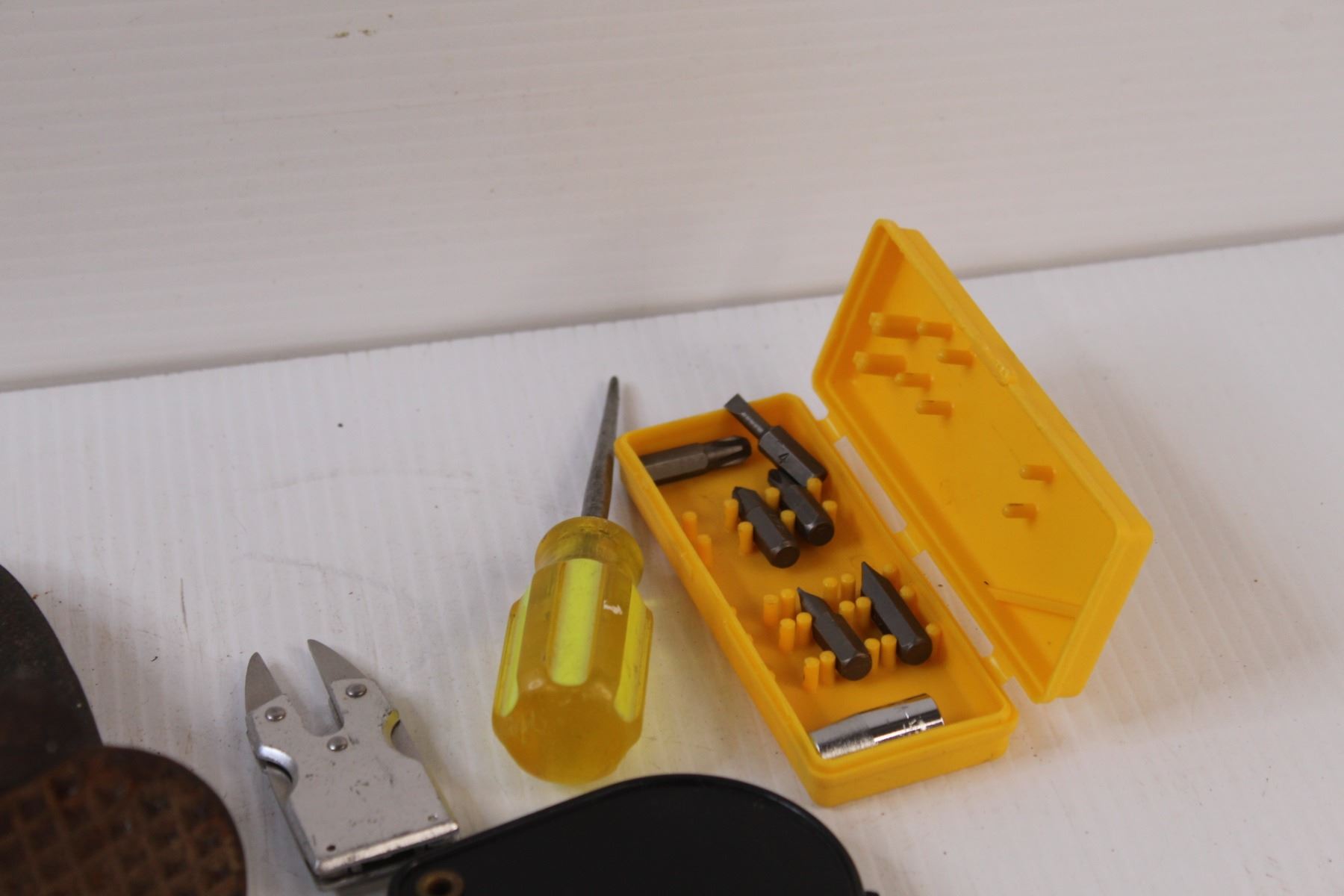 Shop Tools Lot: Vintage Tractor Clutch Pedal, Booster Cable Clamps, Mini Screwdrivers, Lightbulbs, Misc.