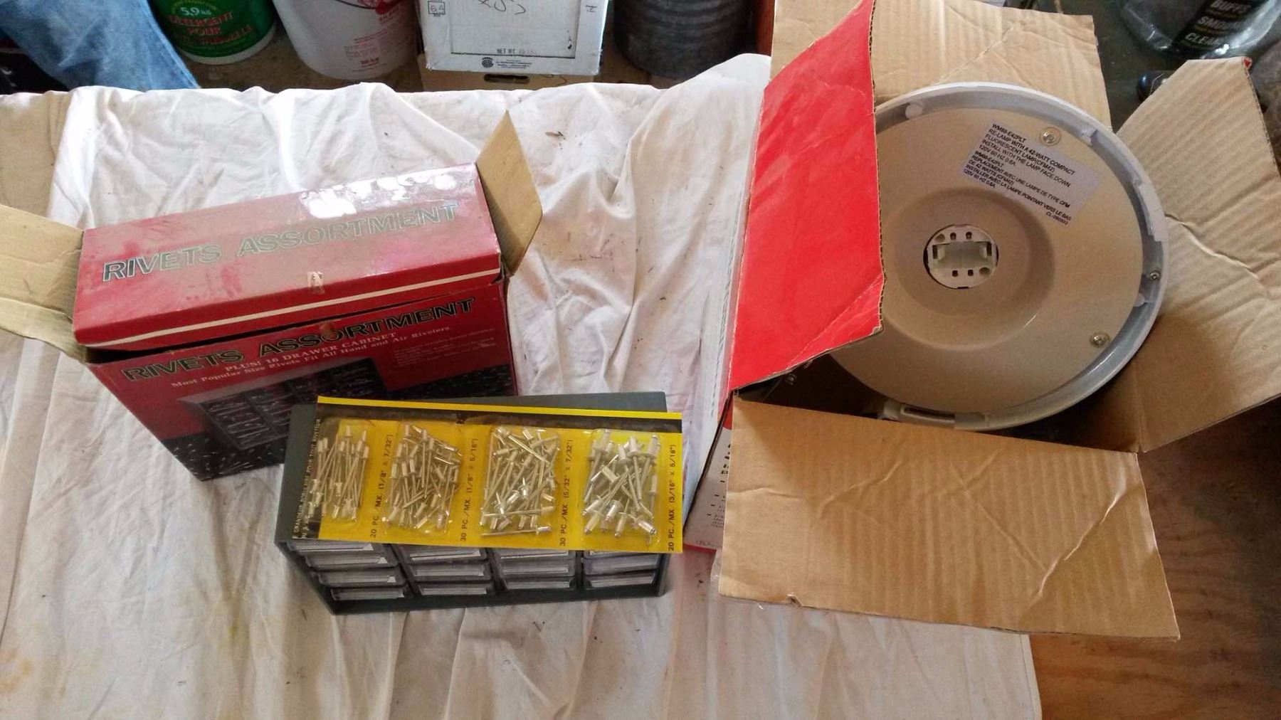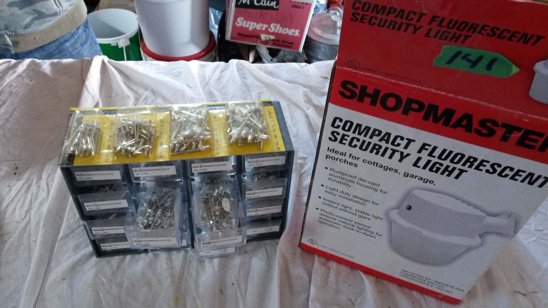 Shopmaster Compact Fluorescent Security Light, 16 Drawer Cabinet, & Rivets