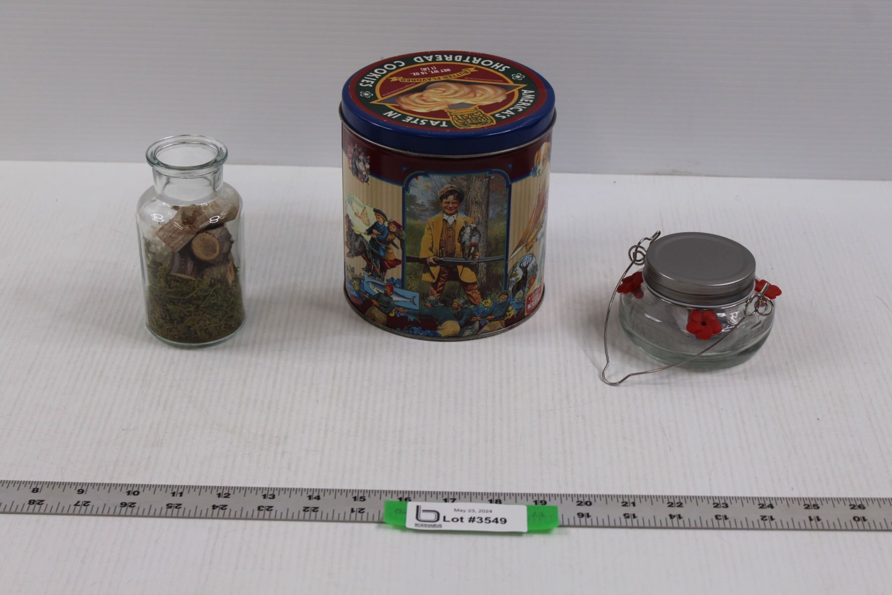 Shortbread Cookie Tin, Hummingbird Feeder & Home Decor. Jar