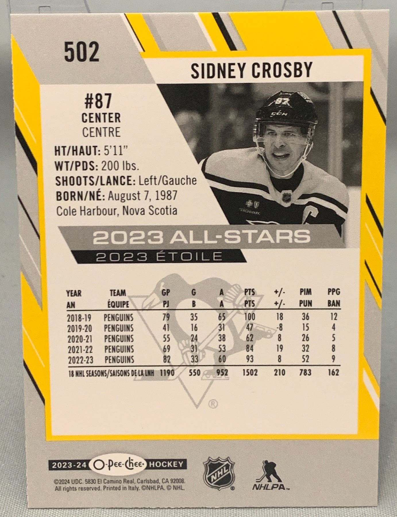 Sidney Crosby OPC Yellow 2023 All-Stars Hockey Card