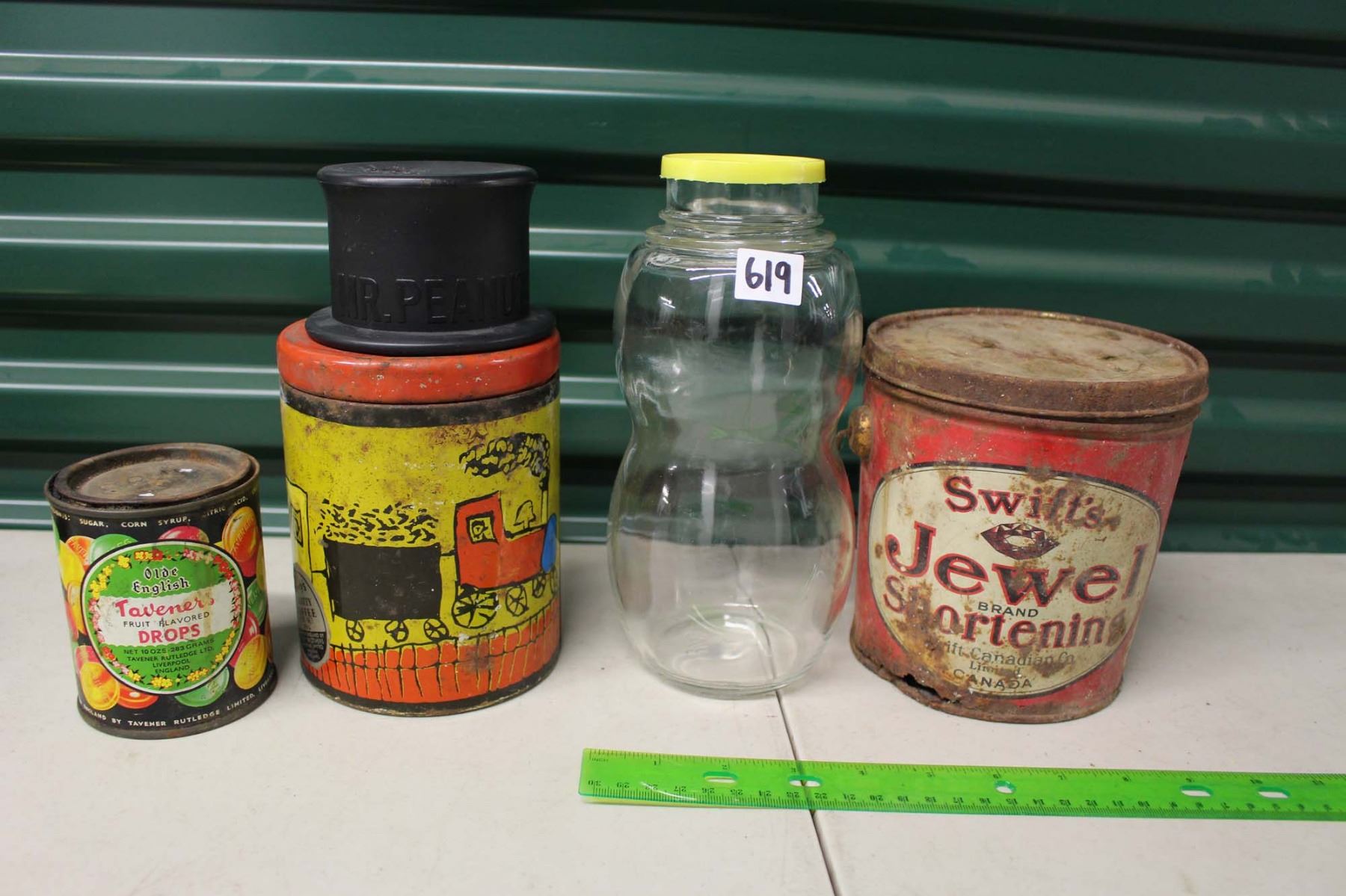 Sifts Jewel Shortening Tin Pail, Taverner's Candy Tin, Canister& Planters Peanut Jar