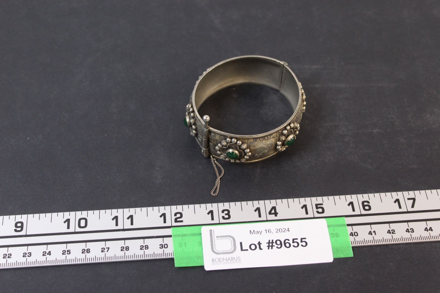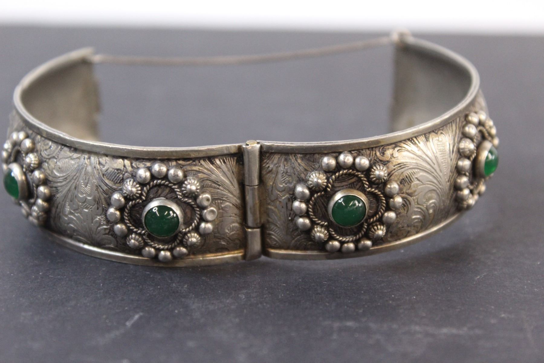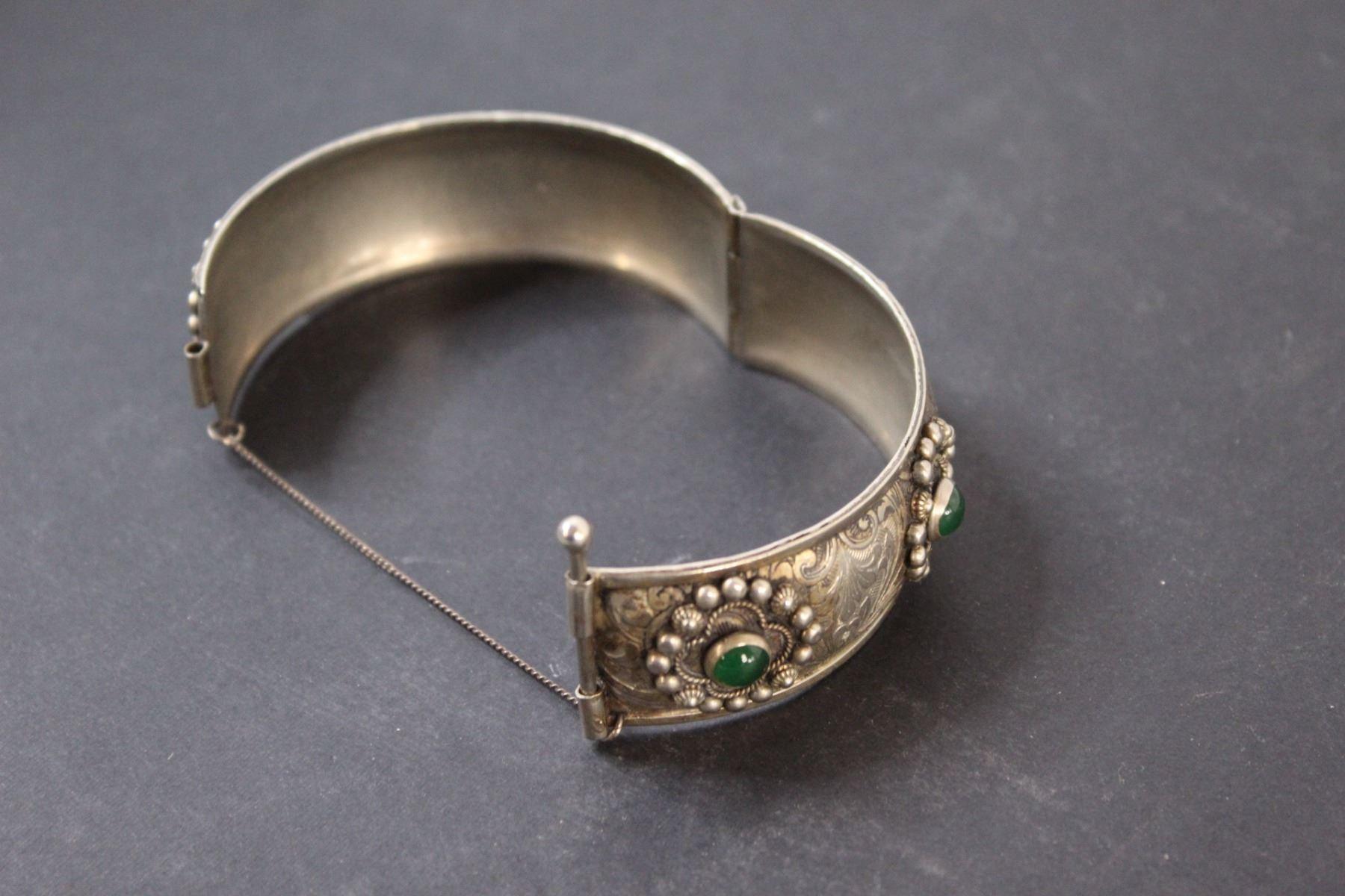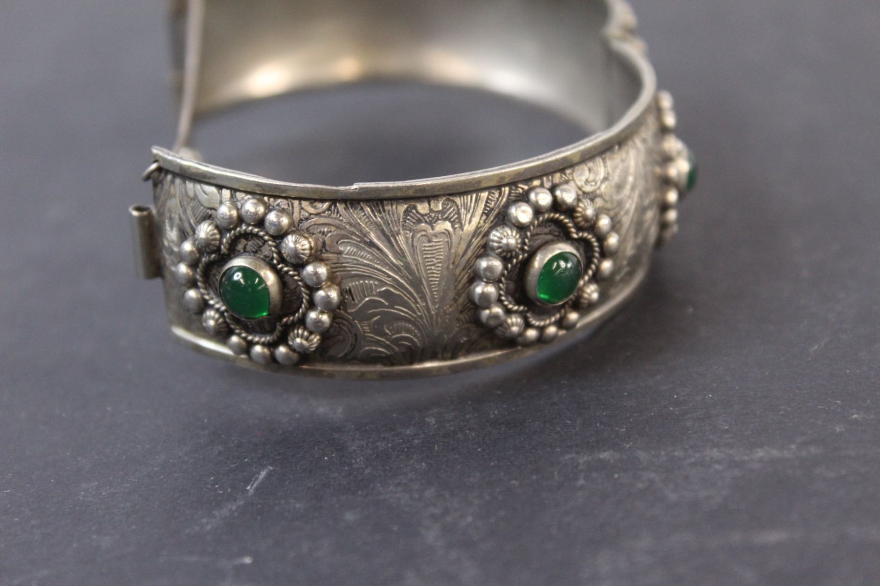 Silver Bangle w/Green Gems - Made in Italy