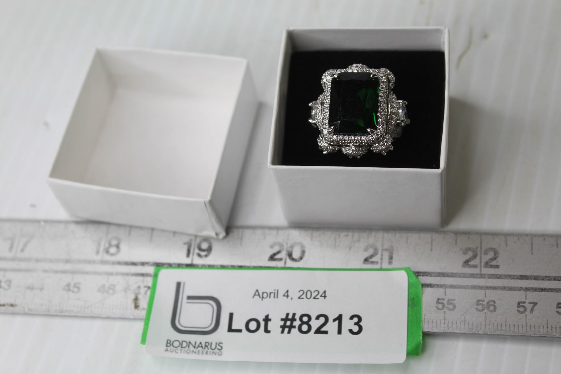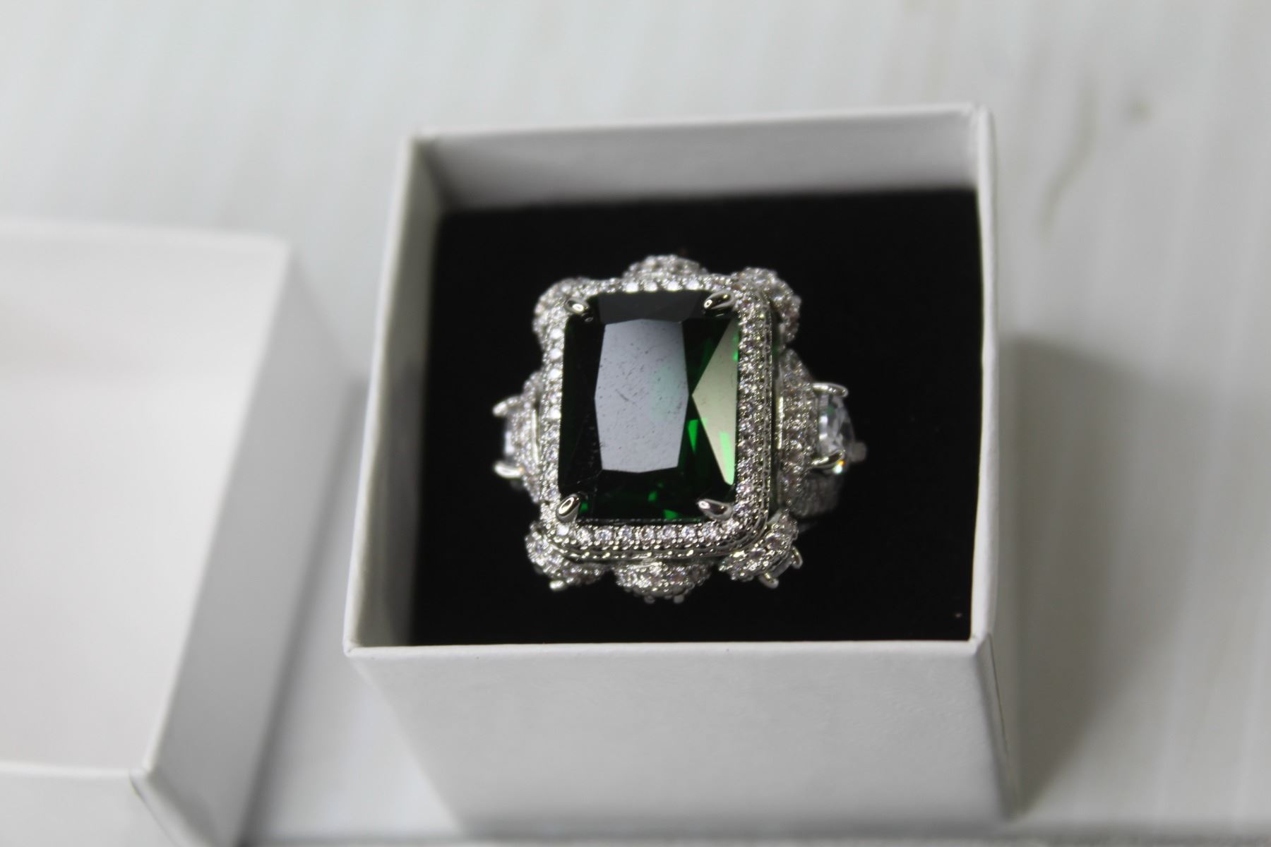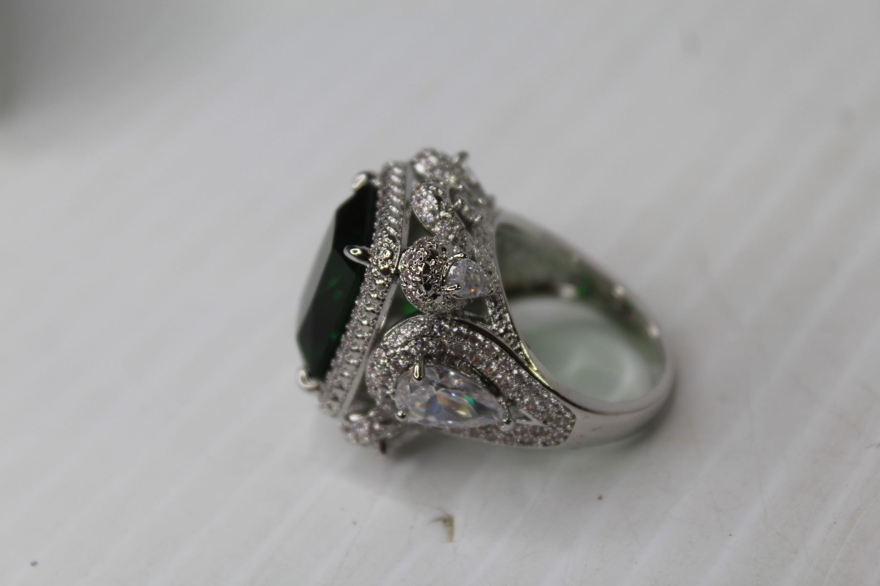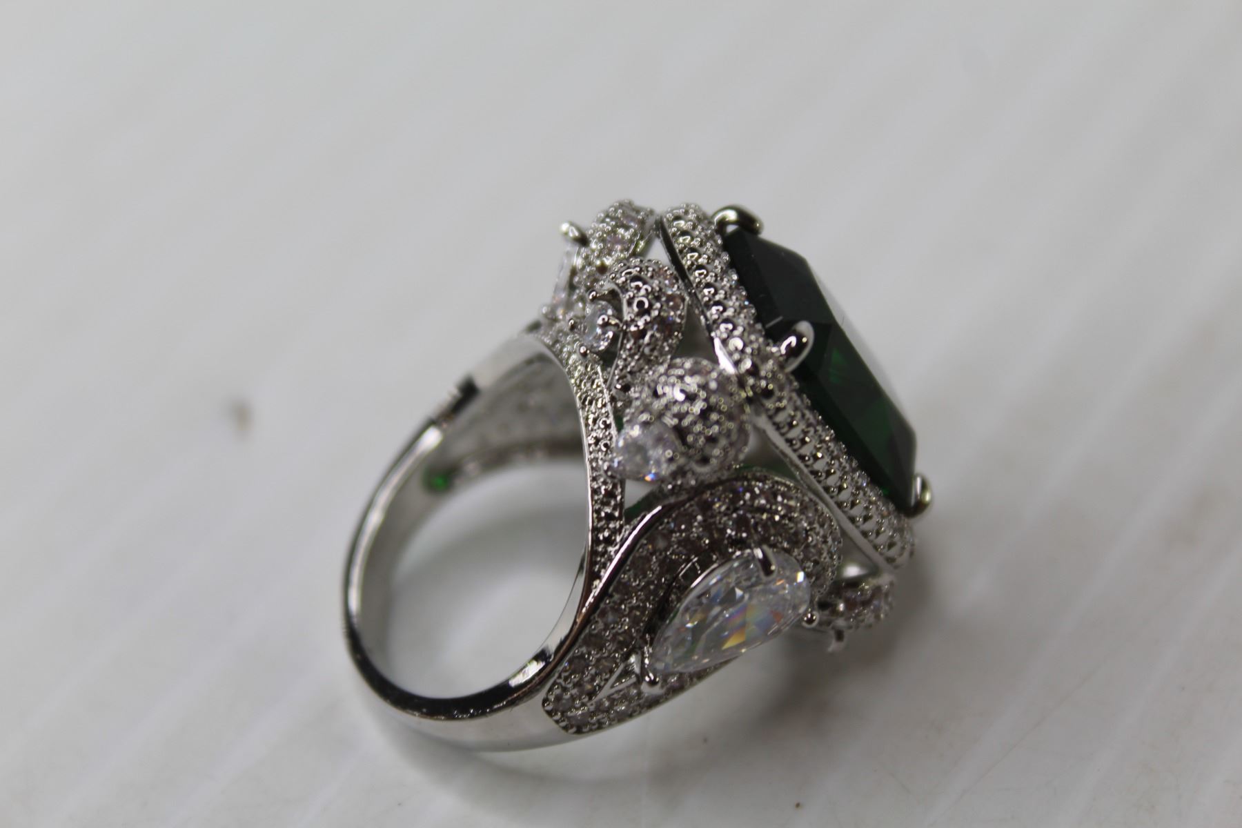 Silver Green Coloured Stone Fashion Ring - Size 7