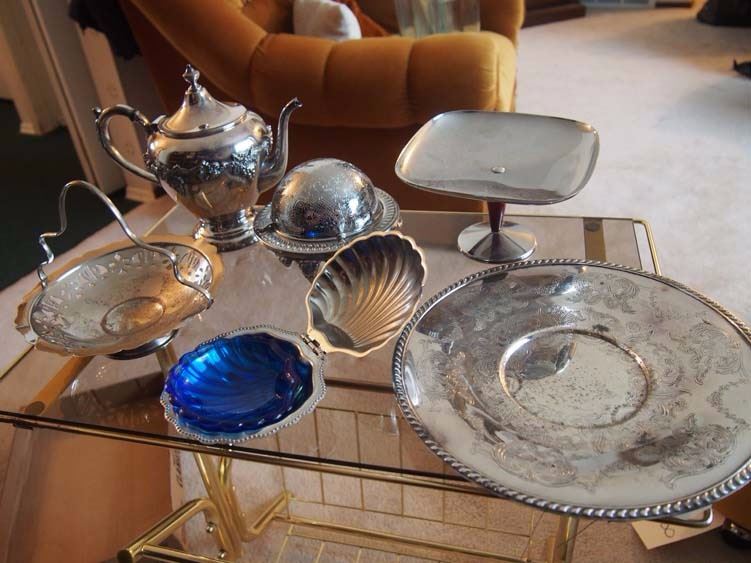 Silver Plated Items (6) Dishes, Kettle, Ashtray, Etc.