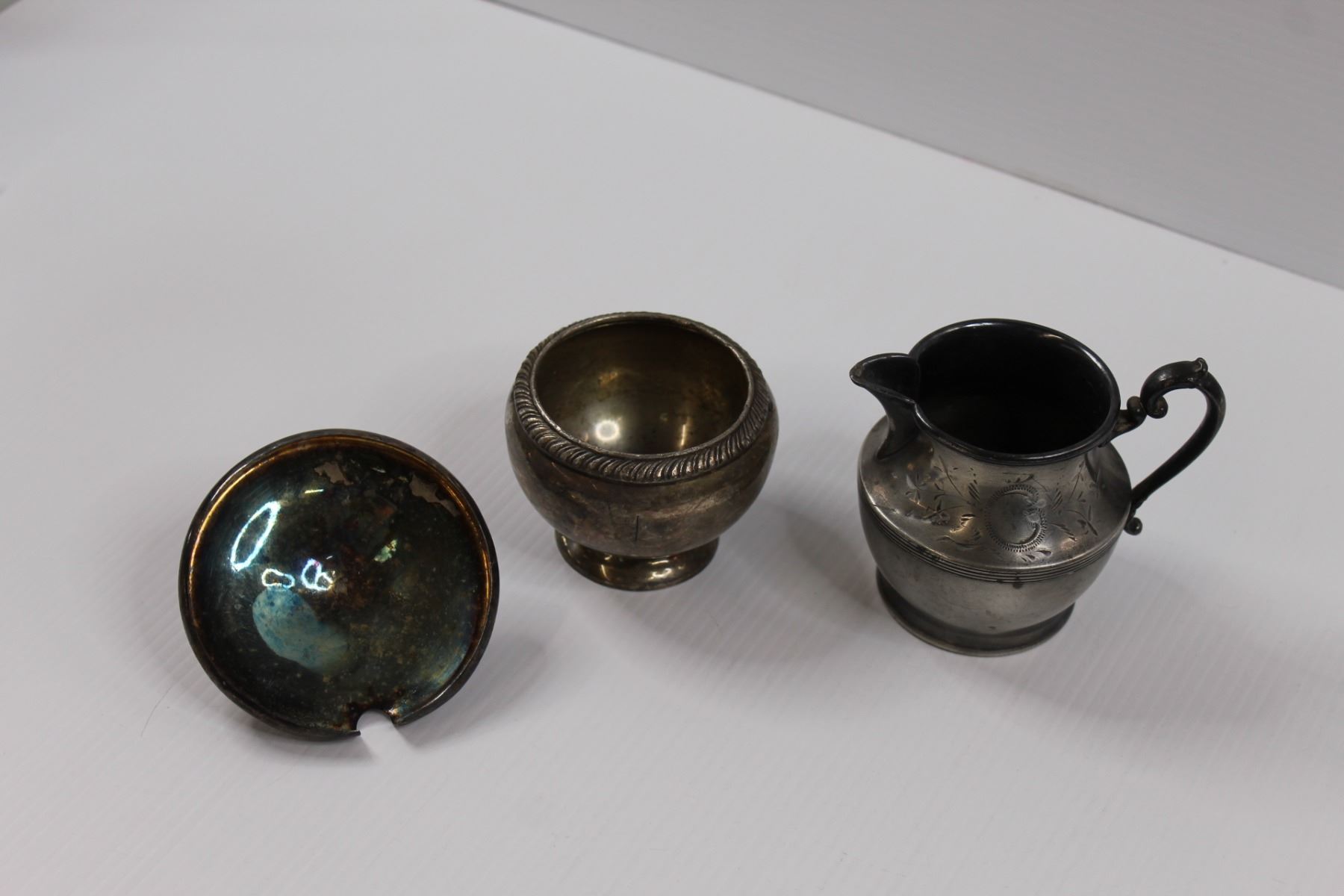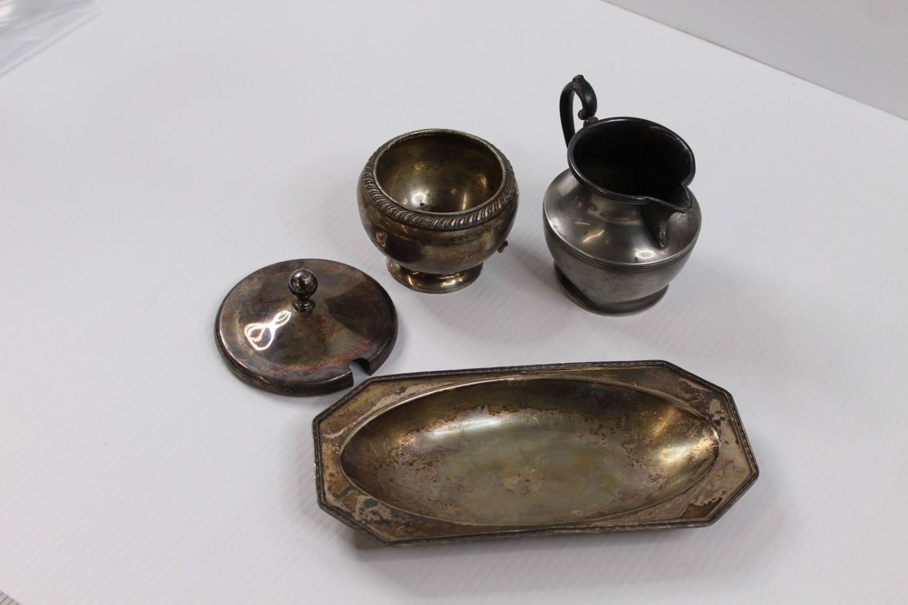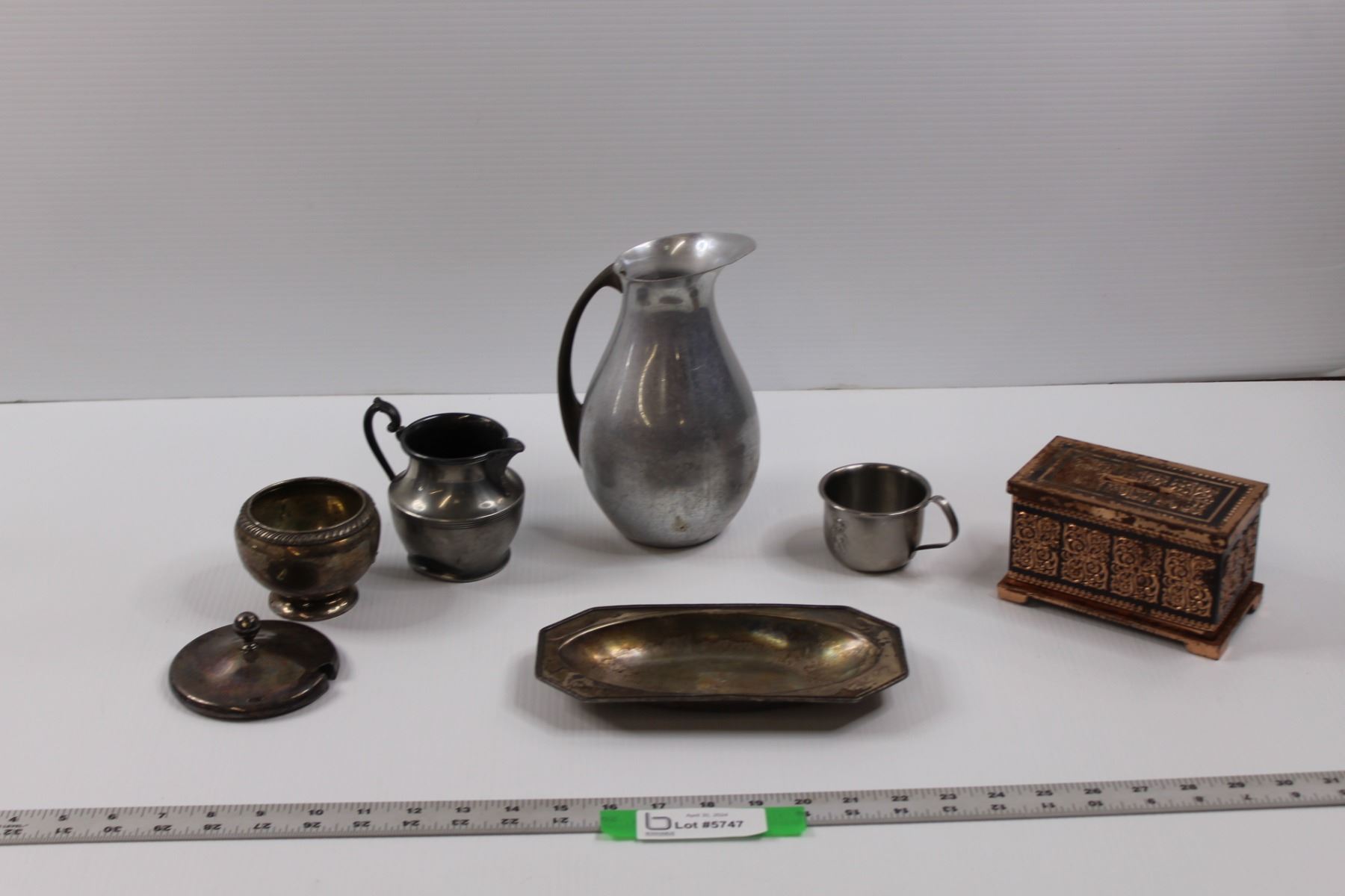 Silver Plated Pitcher, Goblet, Tray and Lid, Aluminium Pitcher - Made in Italy, Stainless Steel Cup & English Tin Coin Bank (Some Rust)
