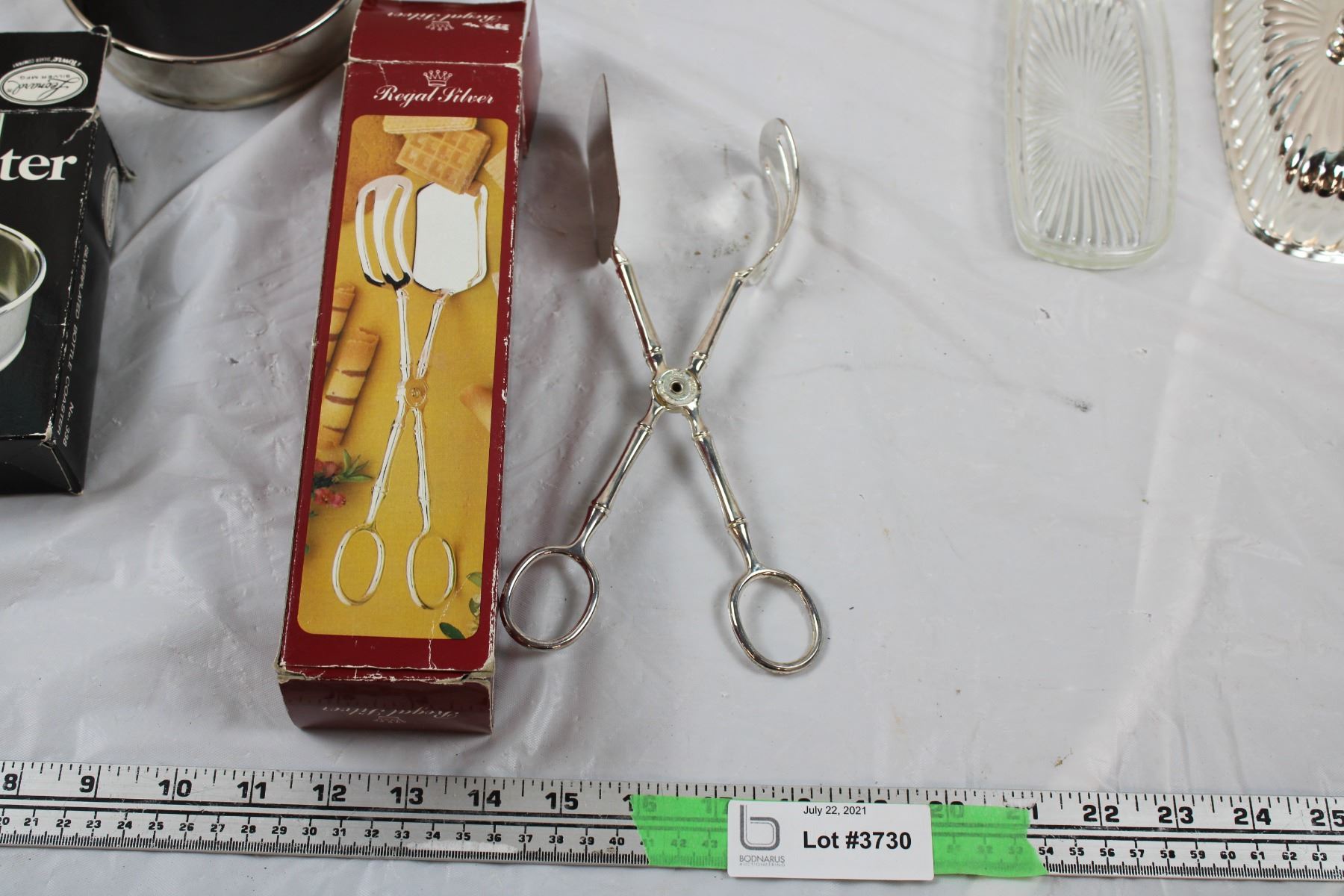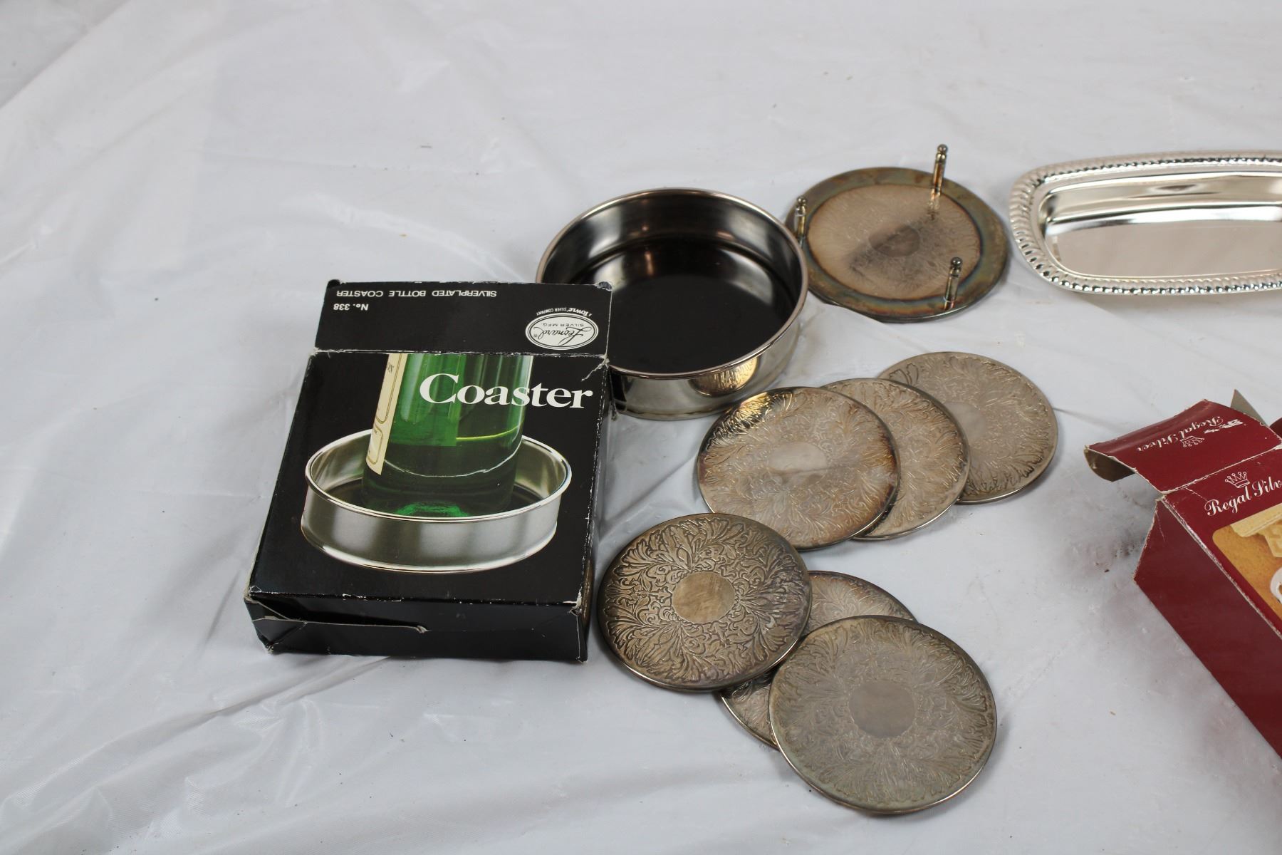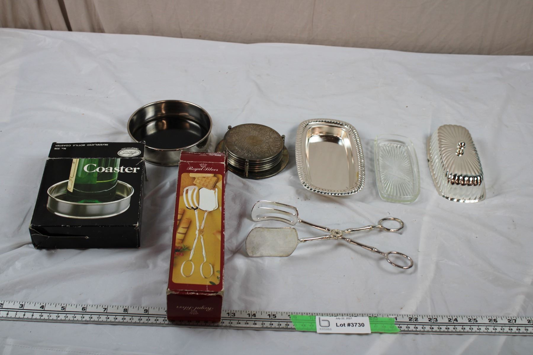 Silver Plated Wine Coaster, set of 6 coasters, silver plated Tongs + Butter dish