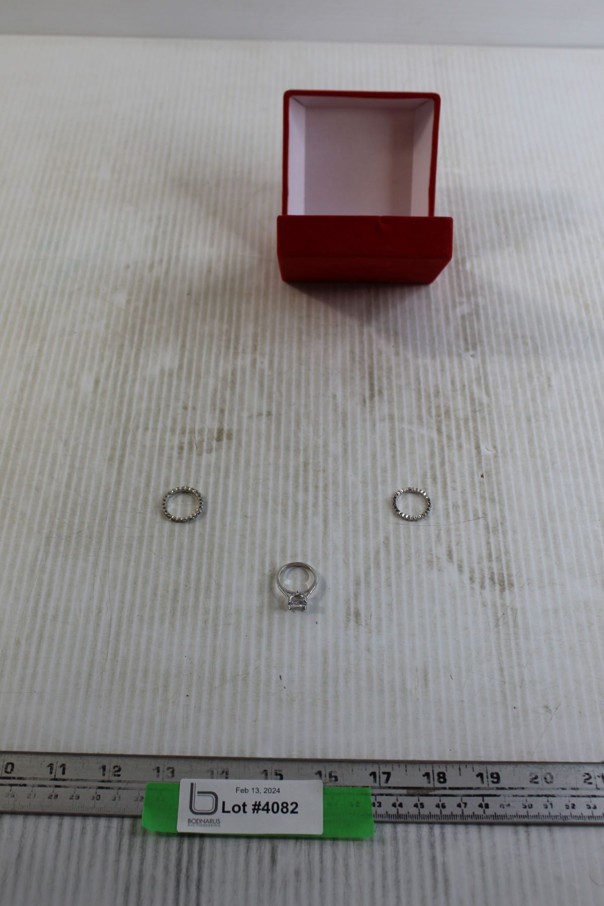 Silver Women's Round White Zircon Ring Set - (3) Rings, Size 8