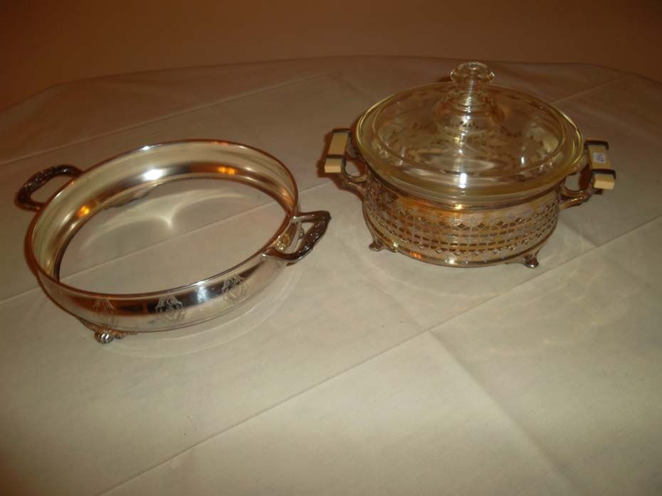 Silver vegetable serving dishes; 1 with bakelite or ivory handles