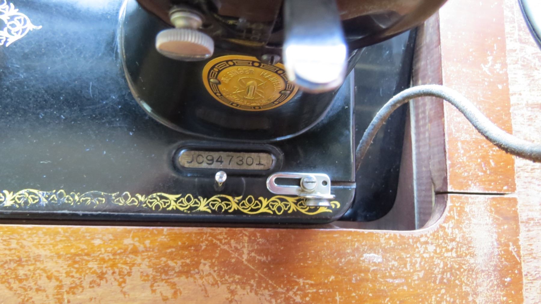 Singer Treadle sewing machine with electric light (water damaged to bottom of table) on casters