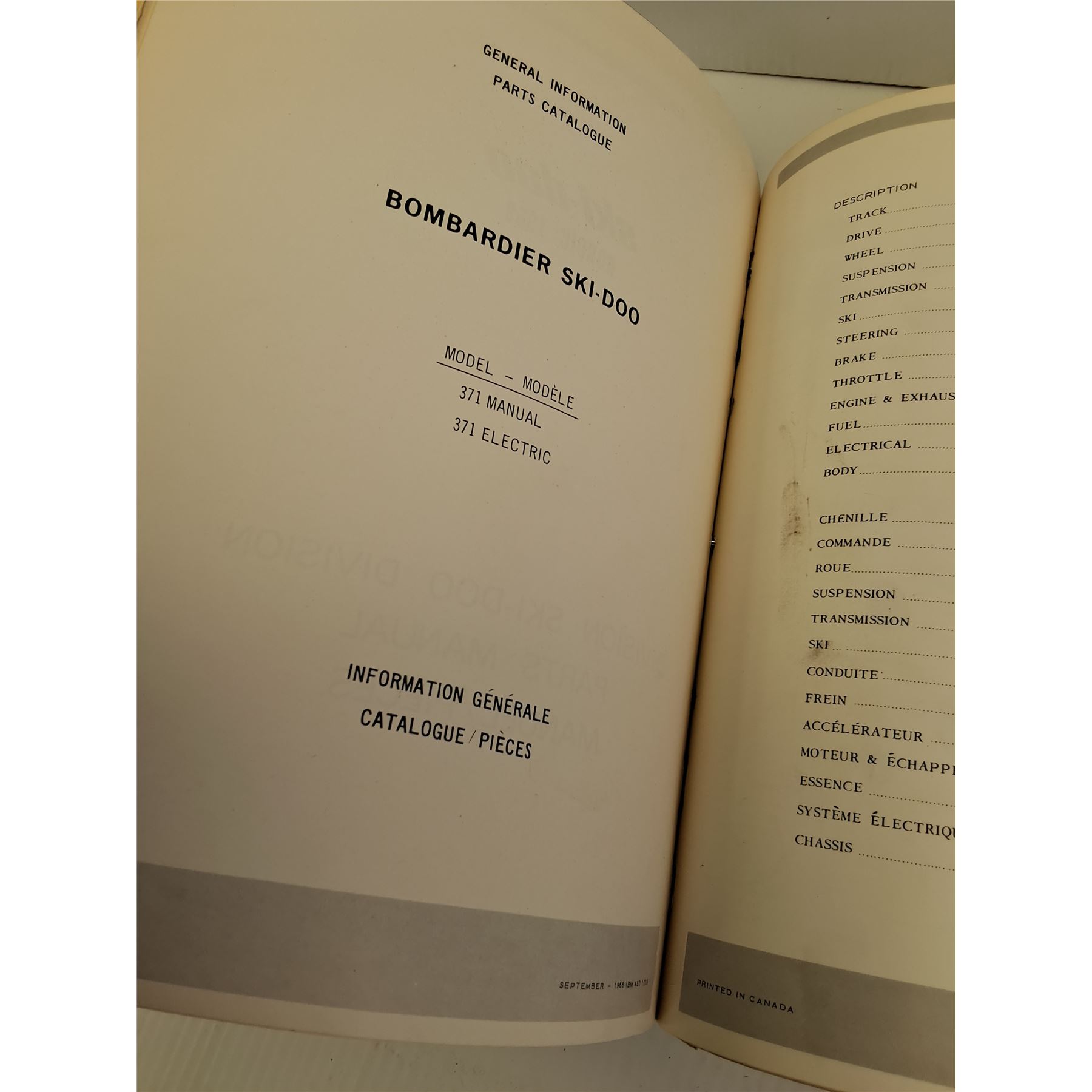 Ski-Doo Bombardier Parts Catalog Manual - 1960-69 Edition