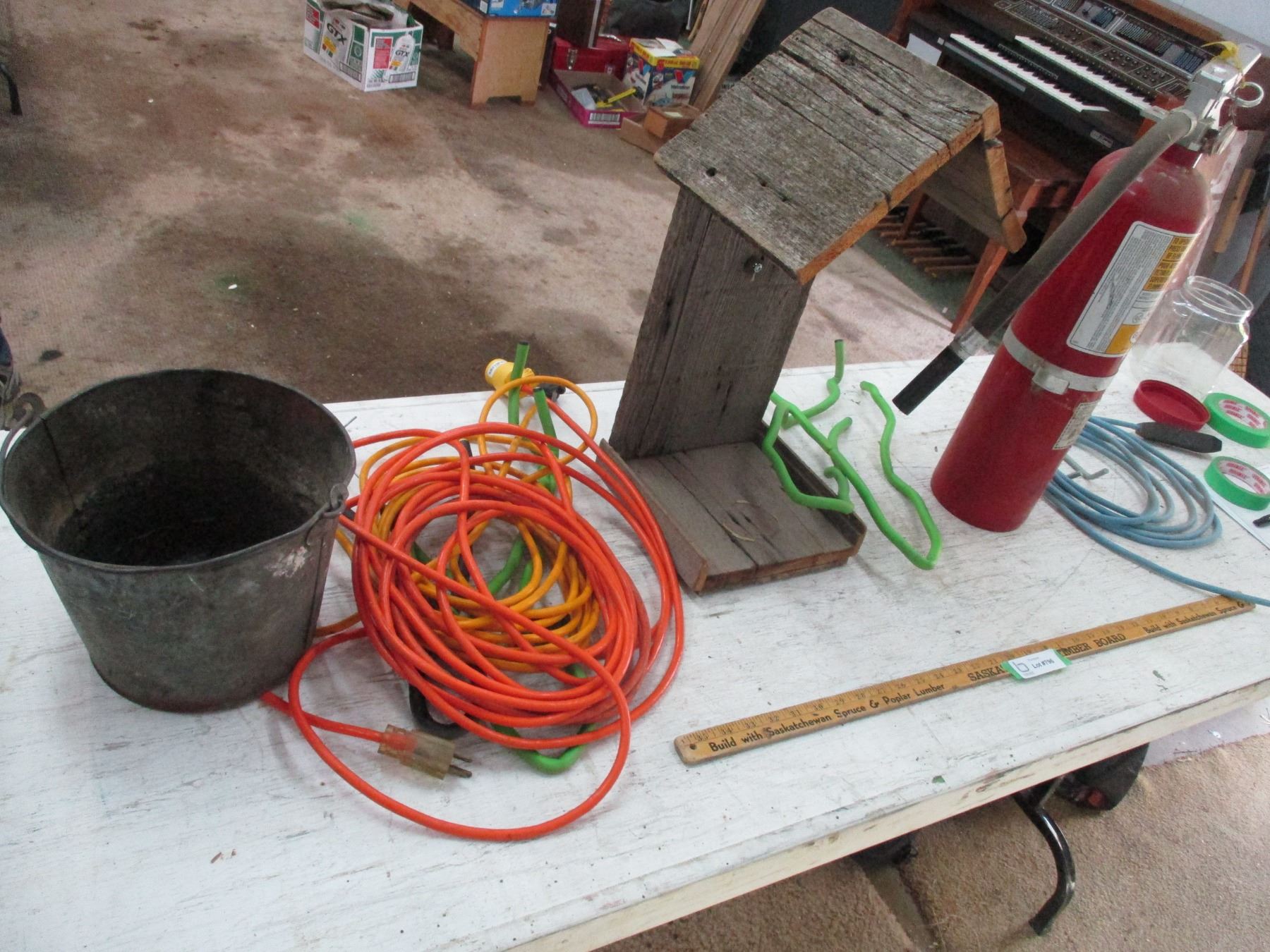 Small Galvanized Pail, Extension Cords, Fire Extinguisher, Misc.