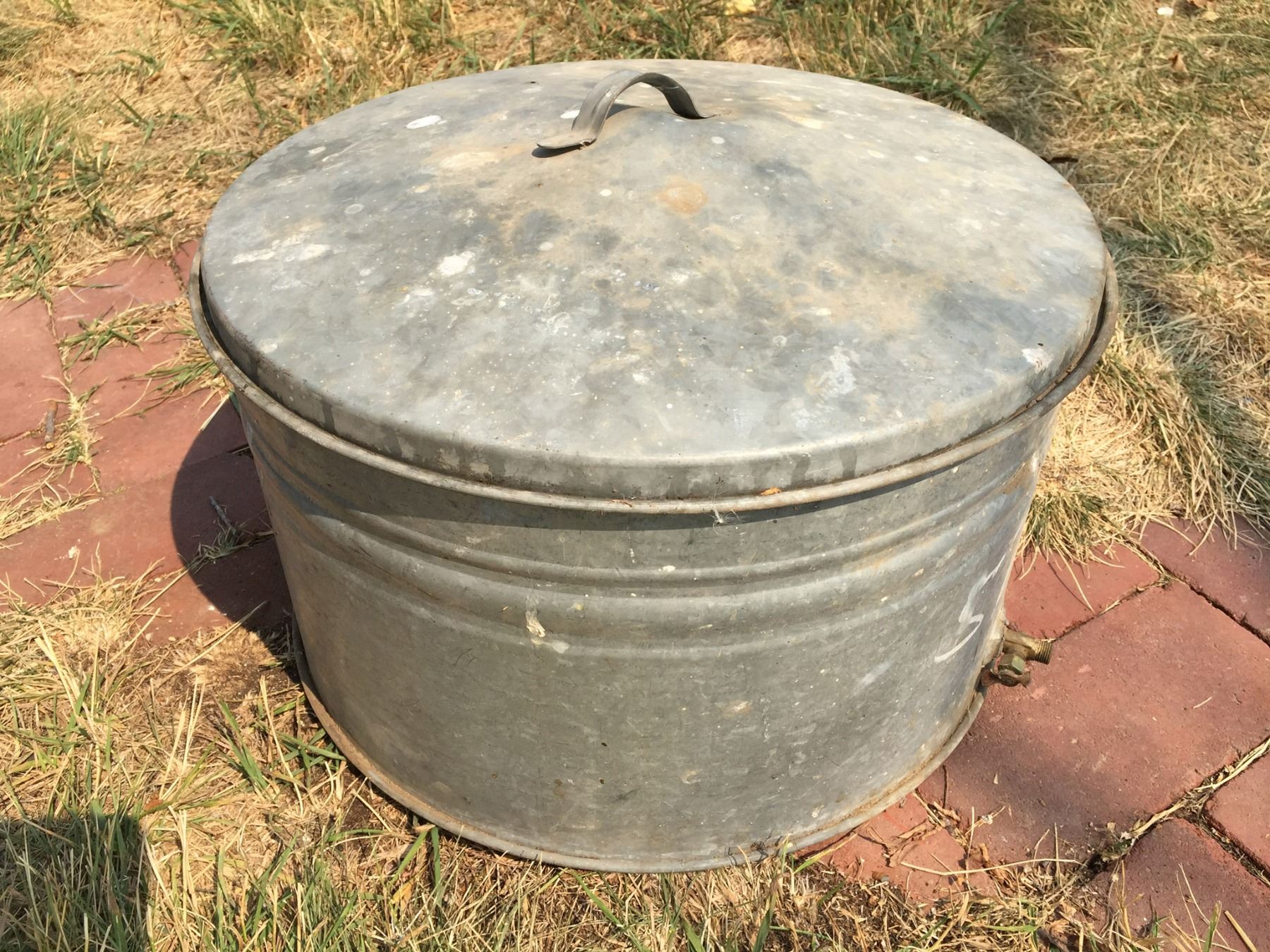 Small Galvanized Tub with Strainer, Valve & Lid (15 1/2" x 9")