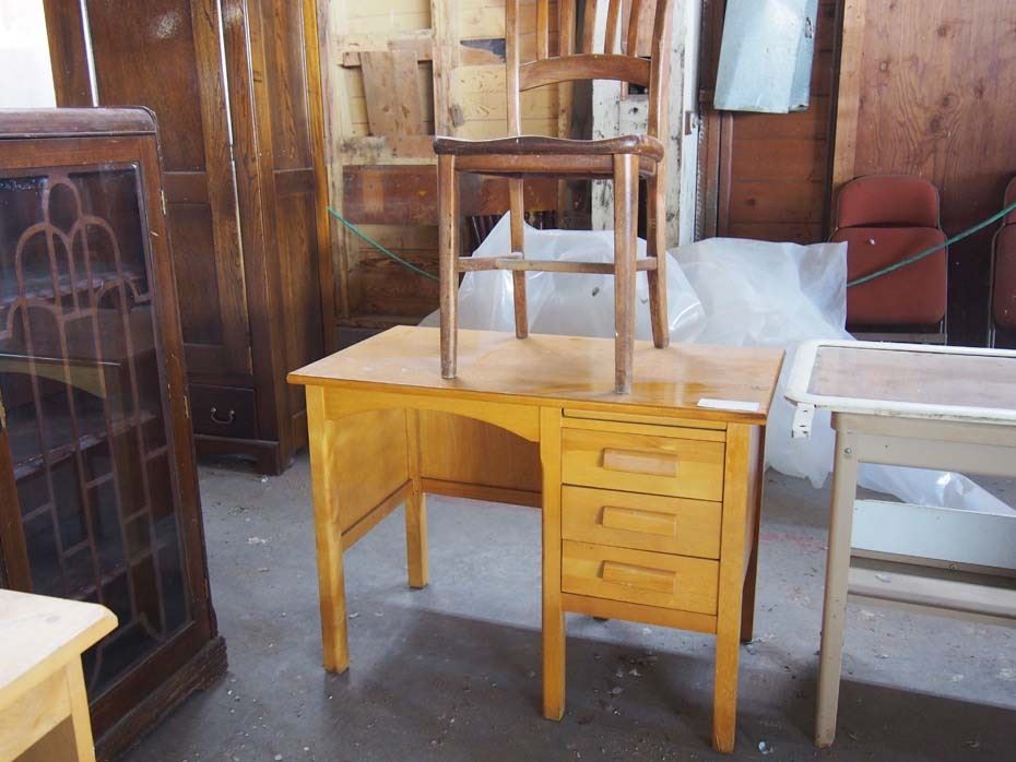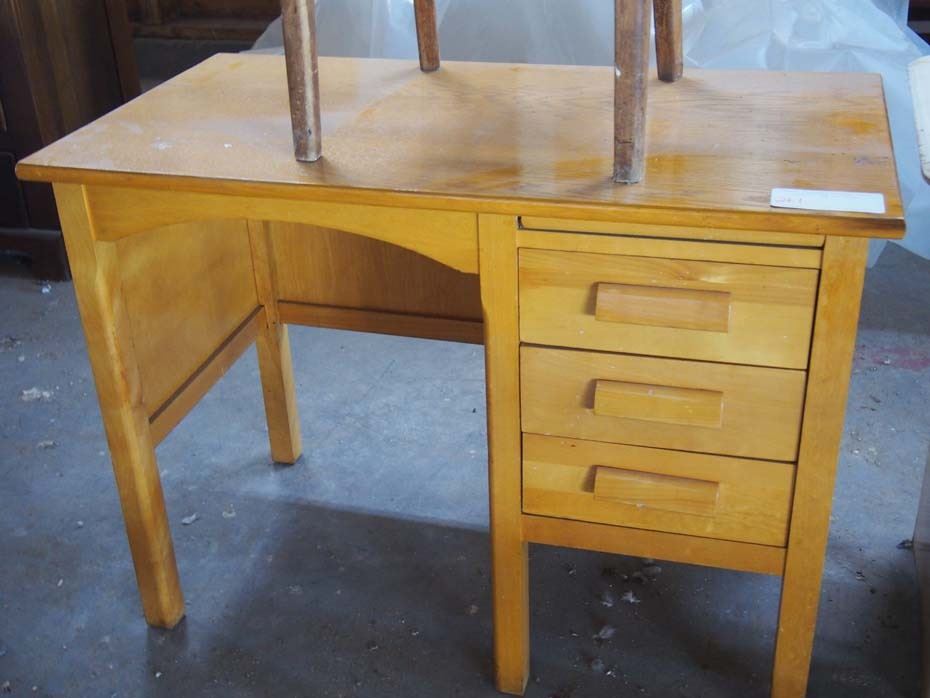 Small Oak 3 Drawer Desk & Oak Office Chair