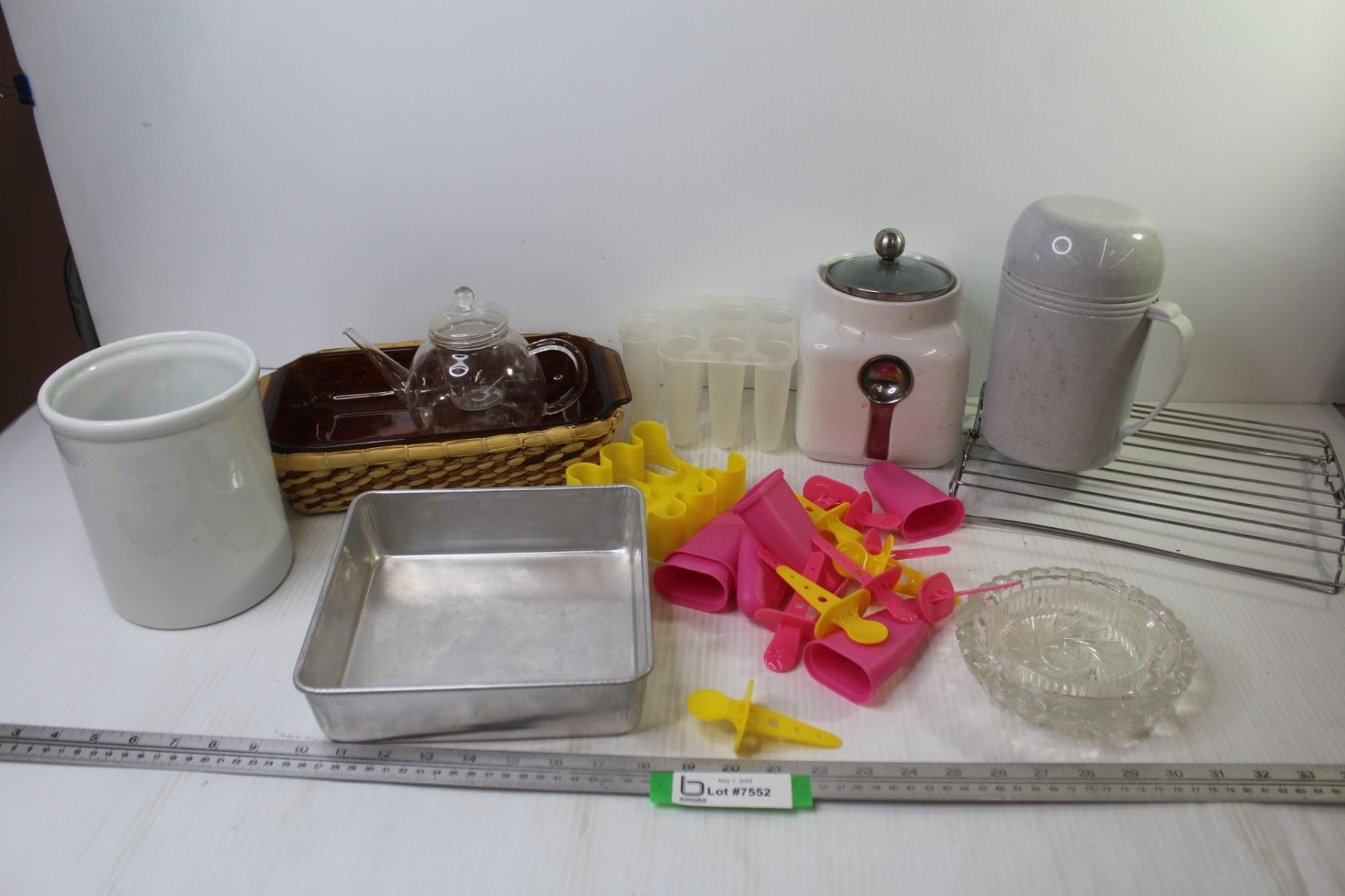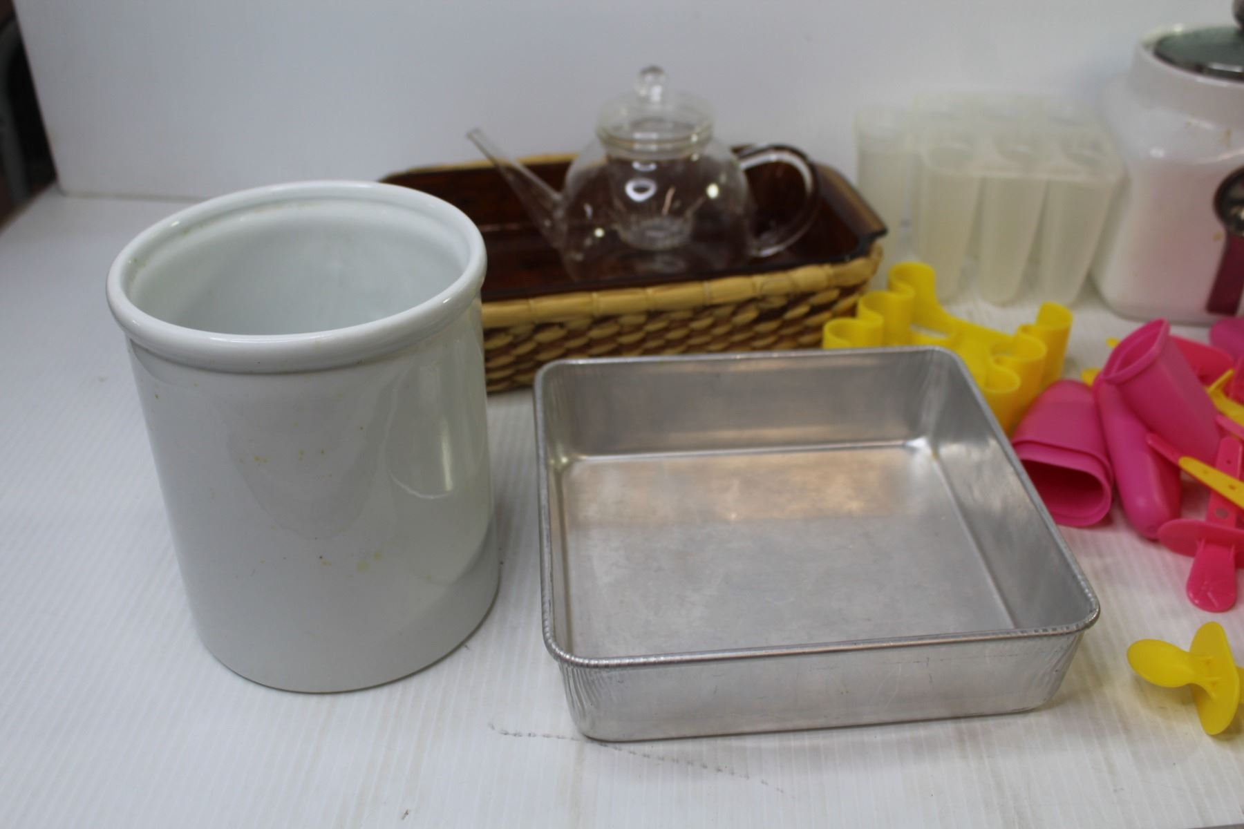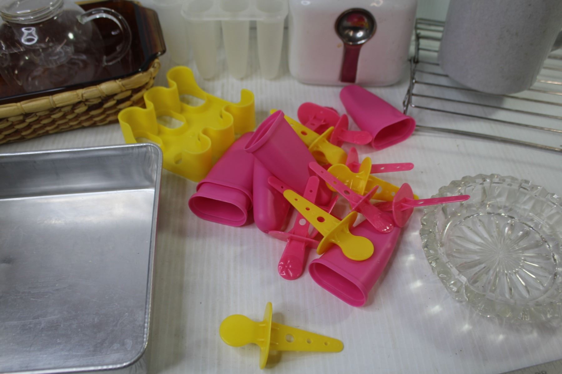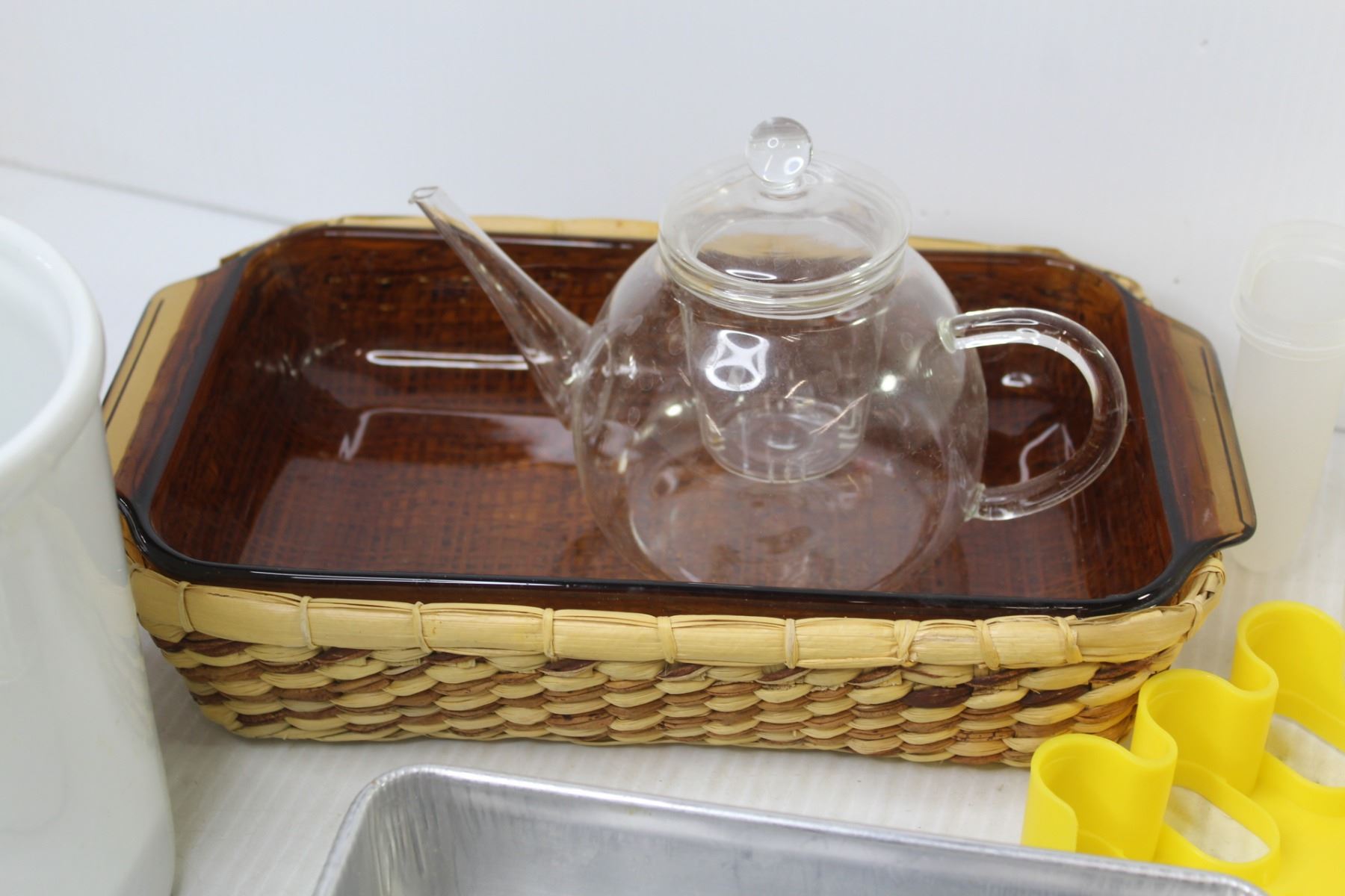 Smokey Glass Fire King Casserole Dish w/Basket - Popsicle Trays - Glass Ash Trays - Kitchen Cannister