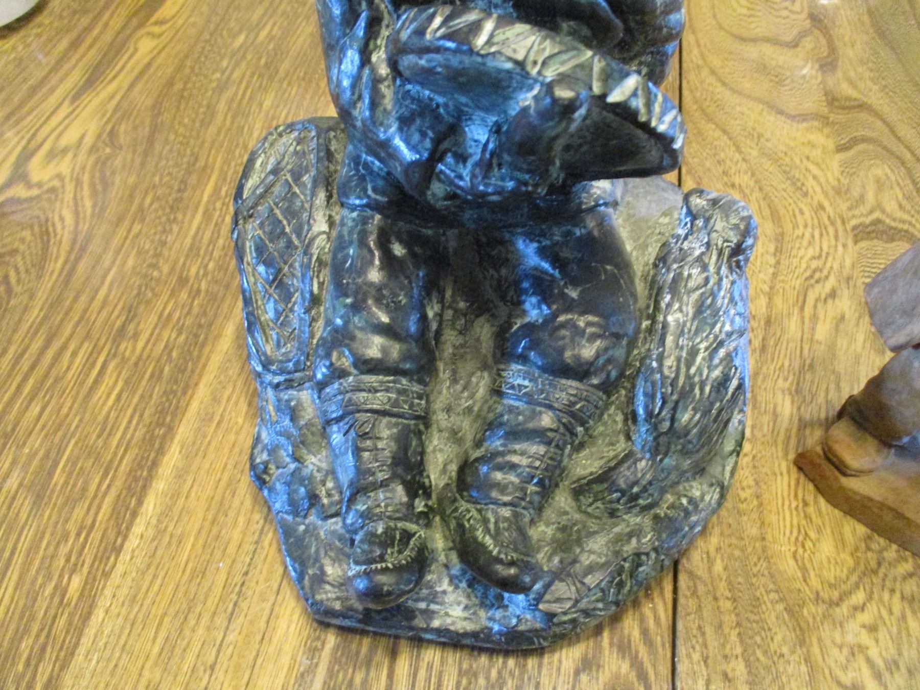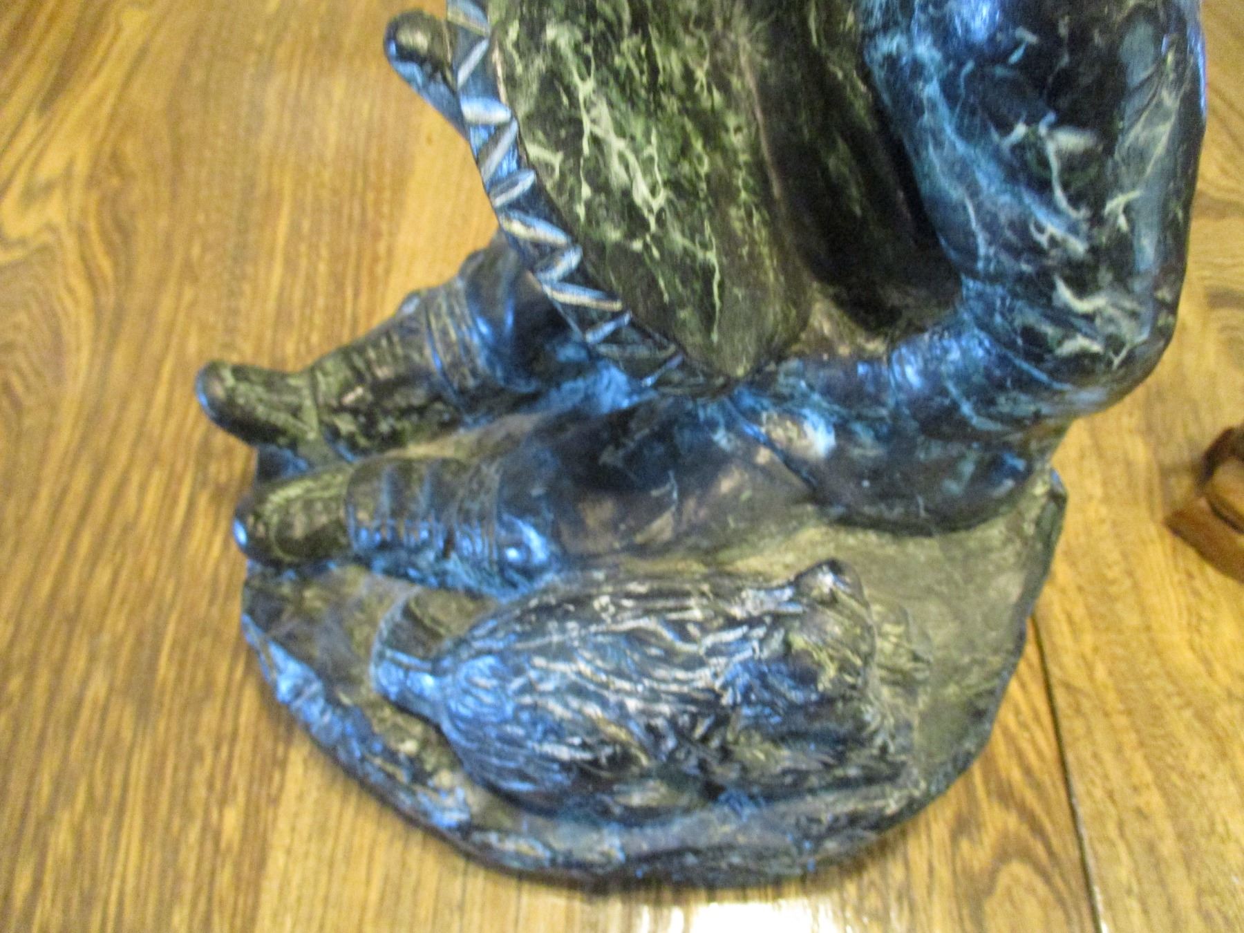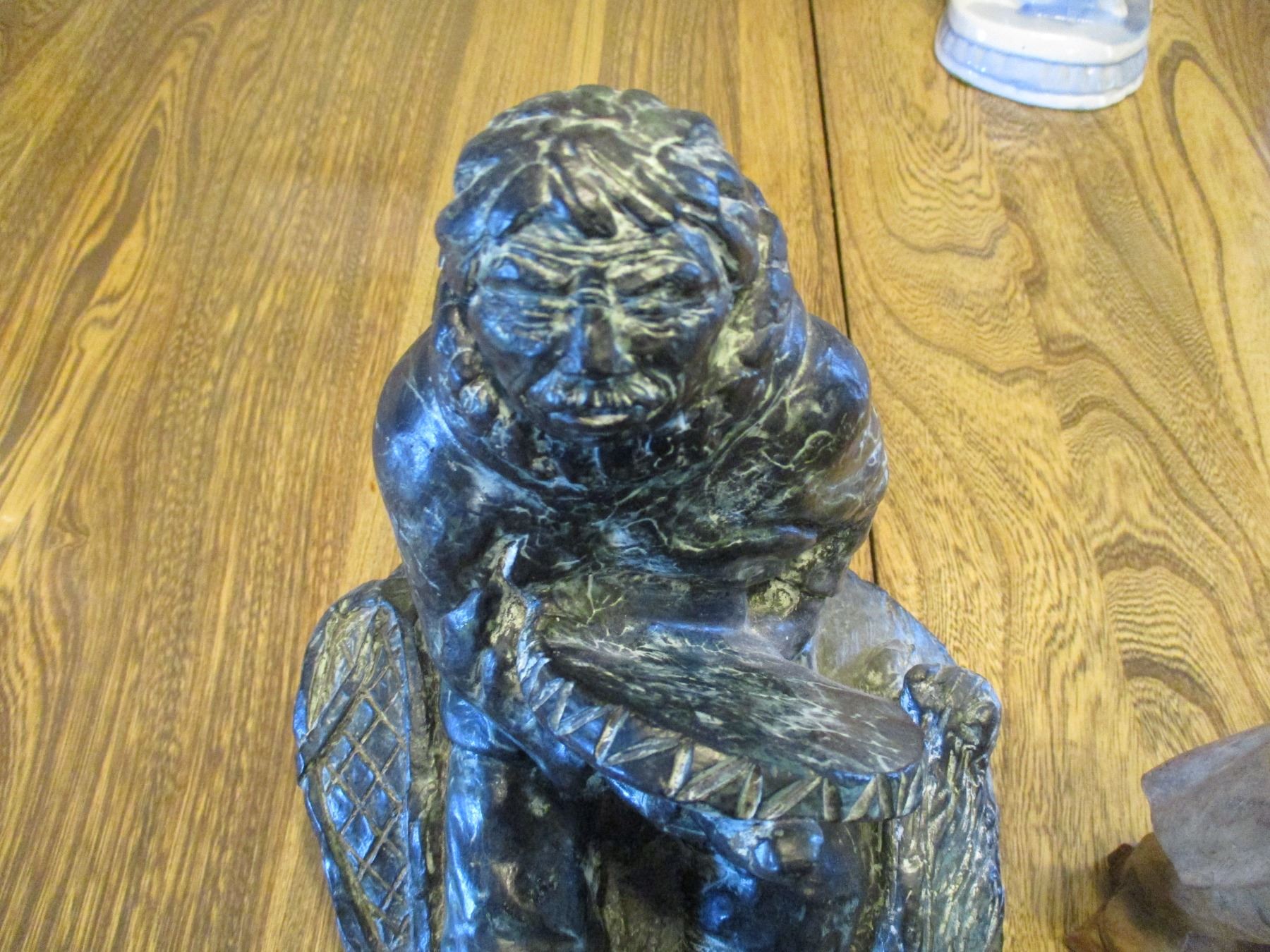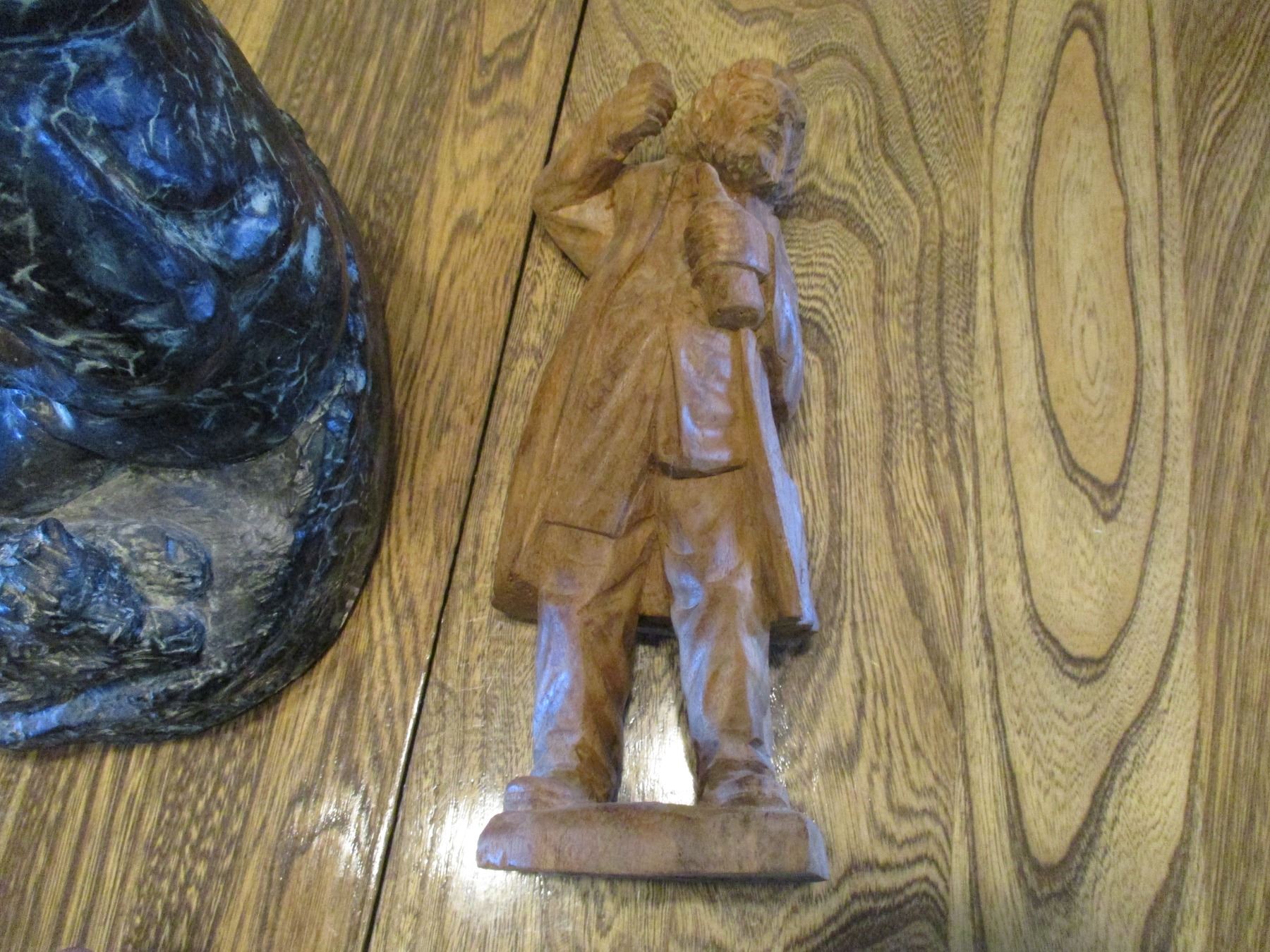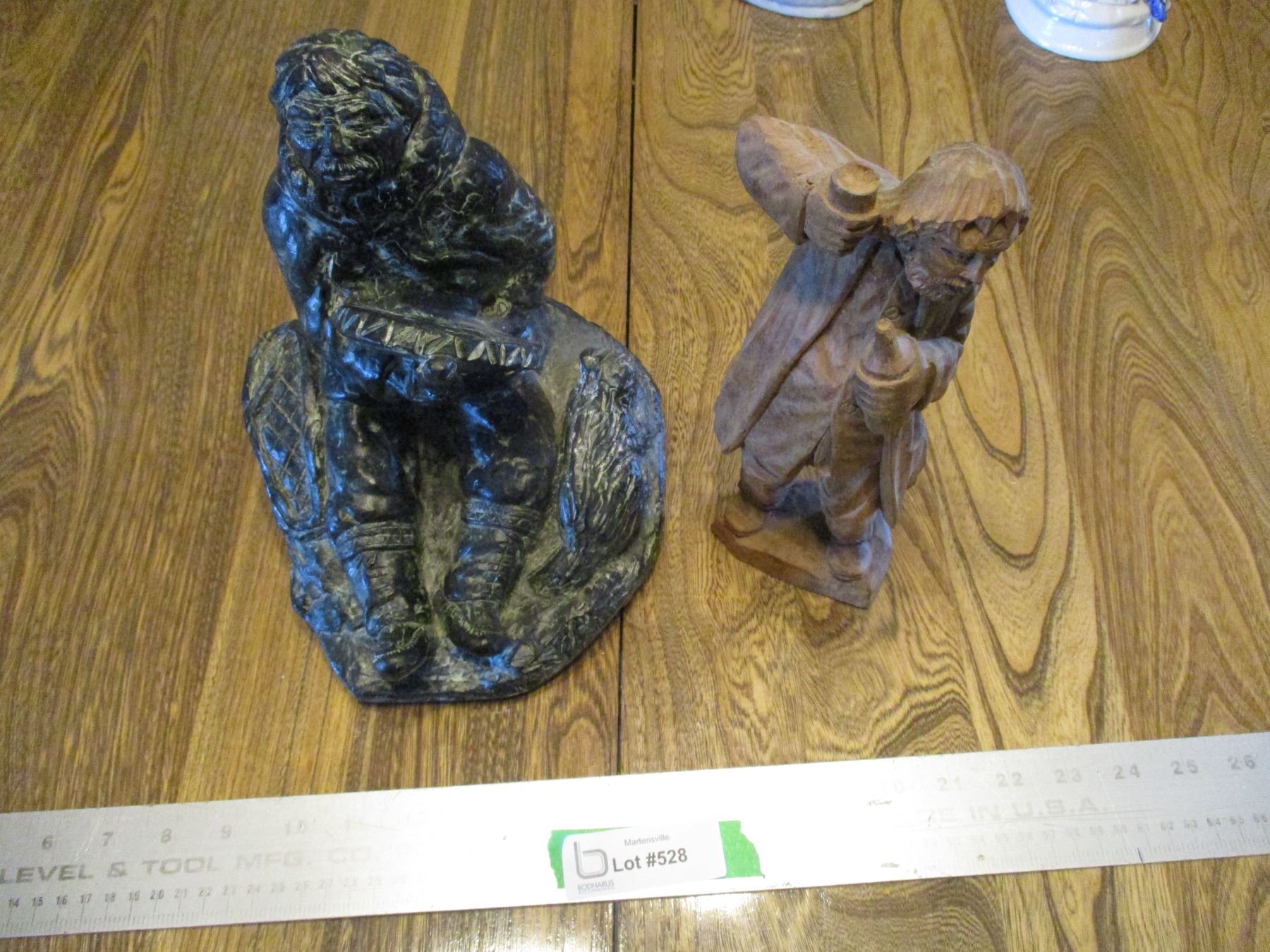 Soap Stone Looking Carving (No Markings) & Wooden Man Carving - Both 10" Tall