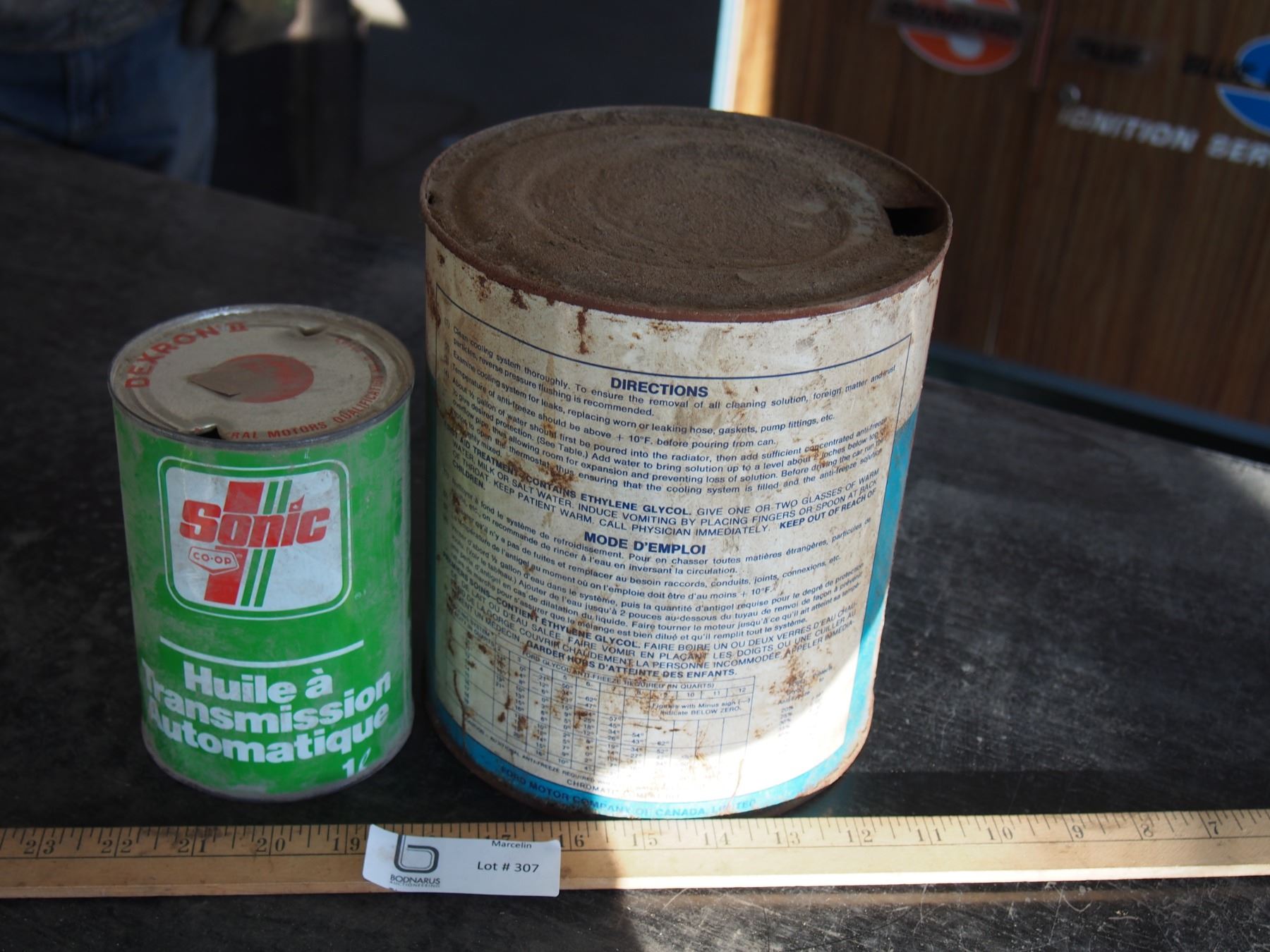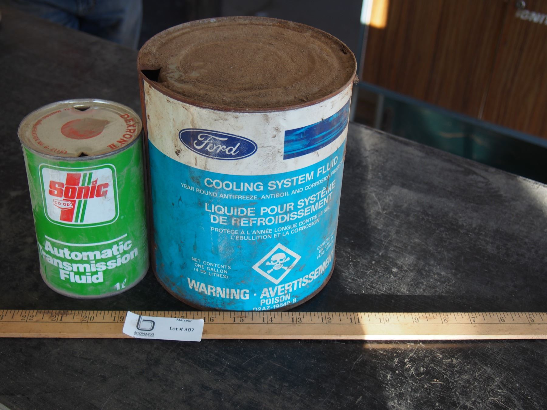 Sonic Auto Trans Fluid 1 Quart Can, Ford Antifreeze Tin