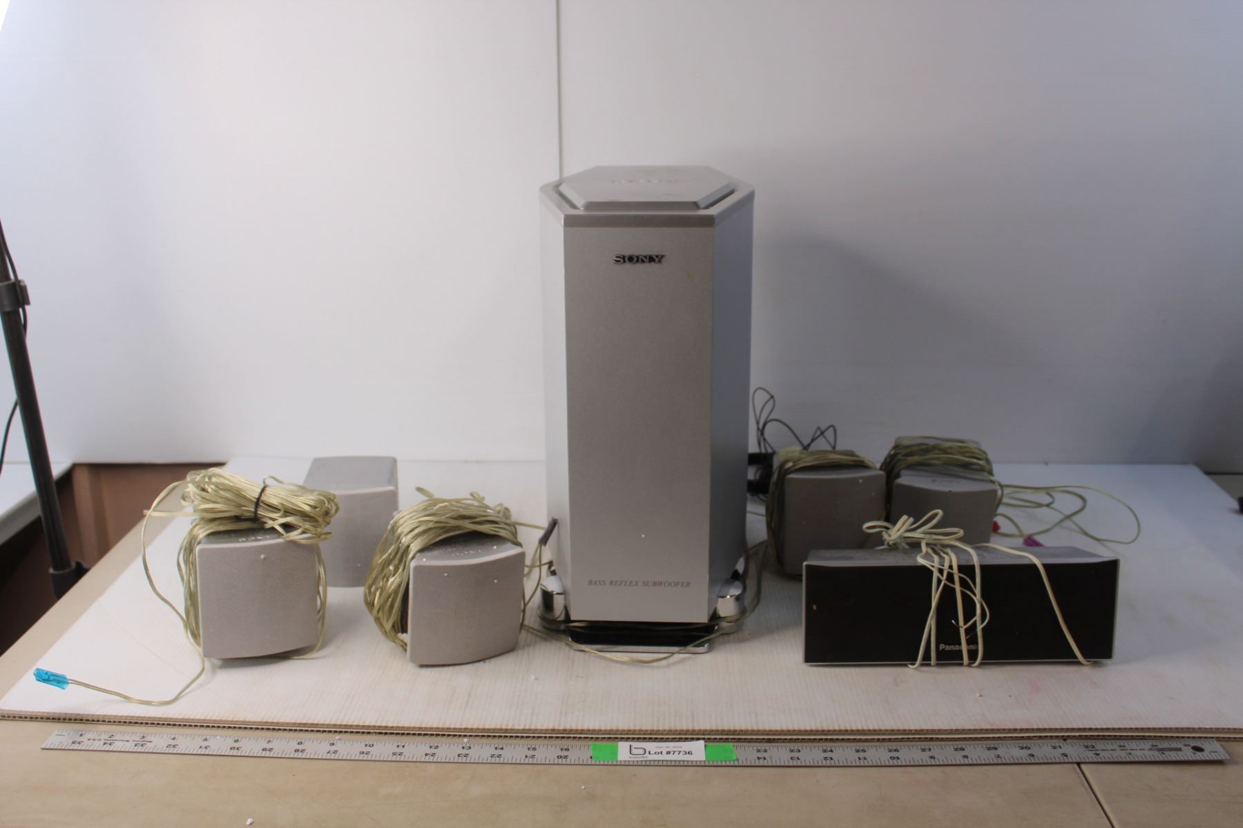 Sony Bass Reflex Subwoofer, (5) Sony Speakers, Panasonic Speaker- As Is