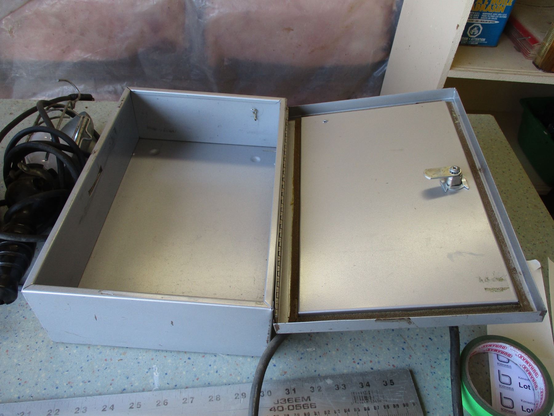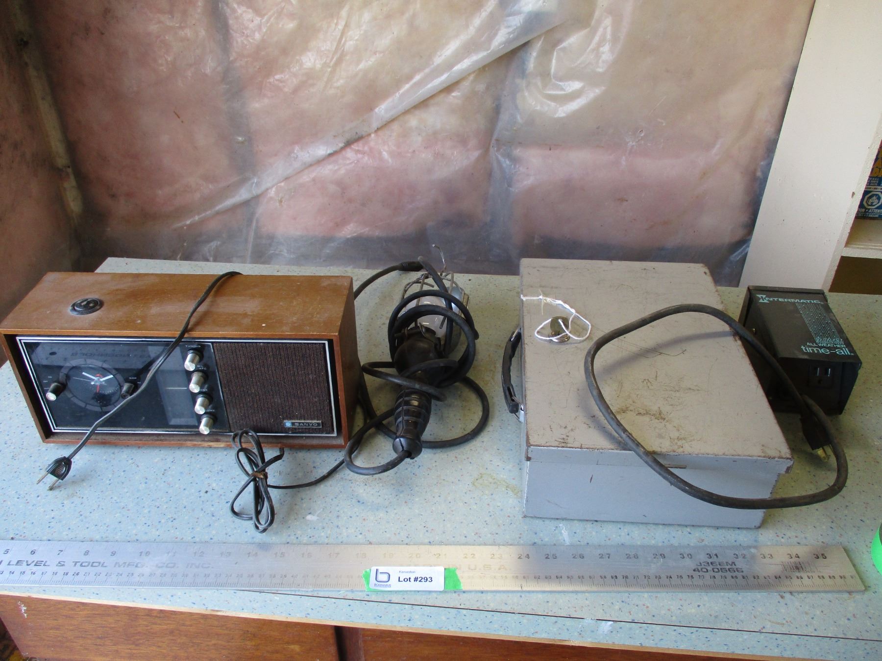 Sony Timer, Sony Radio, Trouble Light, Metal Storage Container with Key