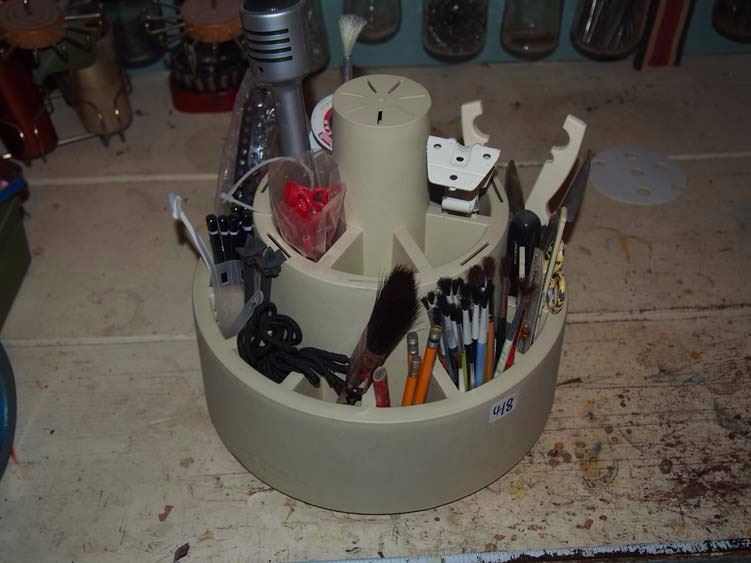 Sorter Full Of Crafting Supplies, Pencils, Paintbrushes Etc.